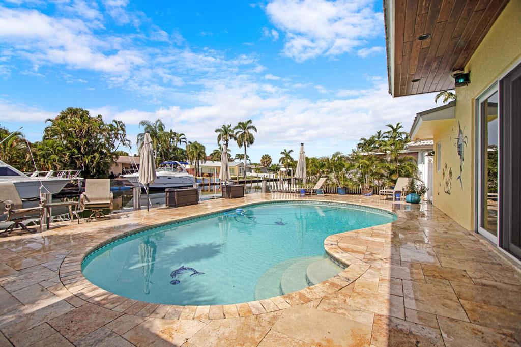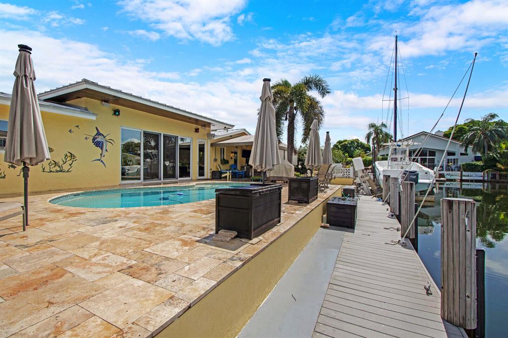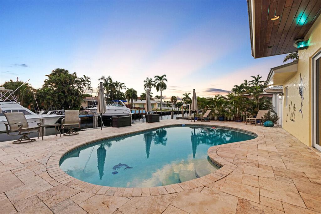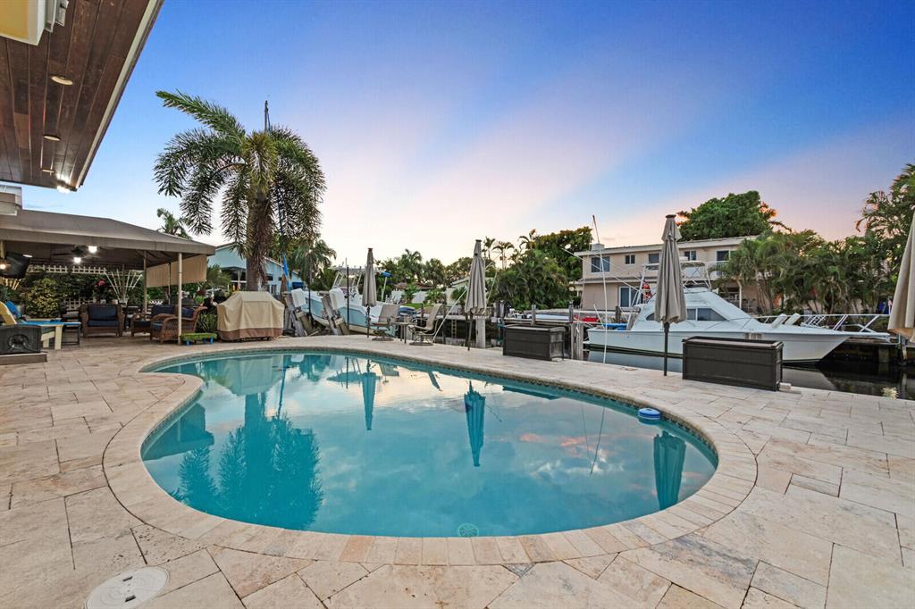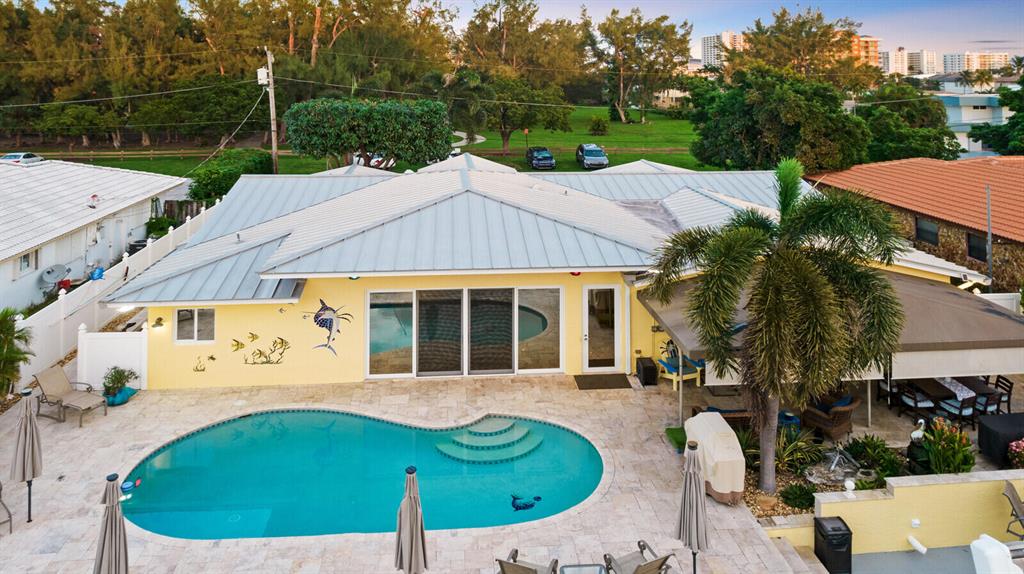DON'T WAIT to see this beautiful WATERFRONT home in COUNTRY CLUB ISLES. In 2012, this home was REBUILT FROM THE STUDS including NEW ROOF: Galva-alum METAL ROOF .....The entry sets the stage with designer Mahogany double-doors. The foyer showcases the 12' volume ceilings as you enter the FORMAL DINING ROOM that will easily seat 14 and is open on both sides to expand the table when more friends and family arrive. Notice the OPEN FLOORPLAN and see all the way through the 8' sliders in the GREAT ROOM to the pool. Marble floors throughout are enhanced by tall wood trim, crown molding and baseboards. The EXTRA-LARGE KITCHEN is truly the center and open on 3 sides to living areas. The custom honed-leather texture granite countertops will catch your eye enhanced by the CHERRY WOOD CABINETS and