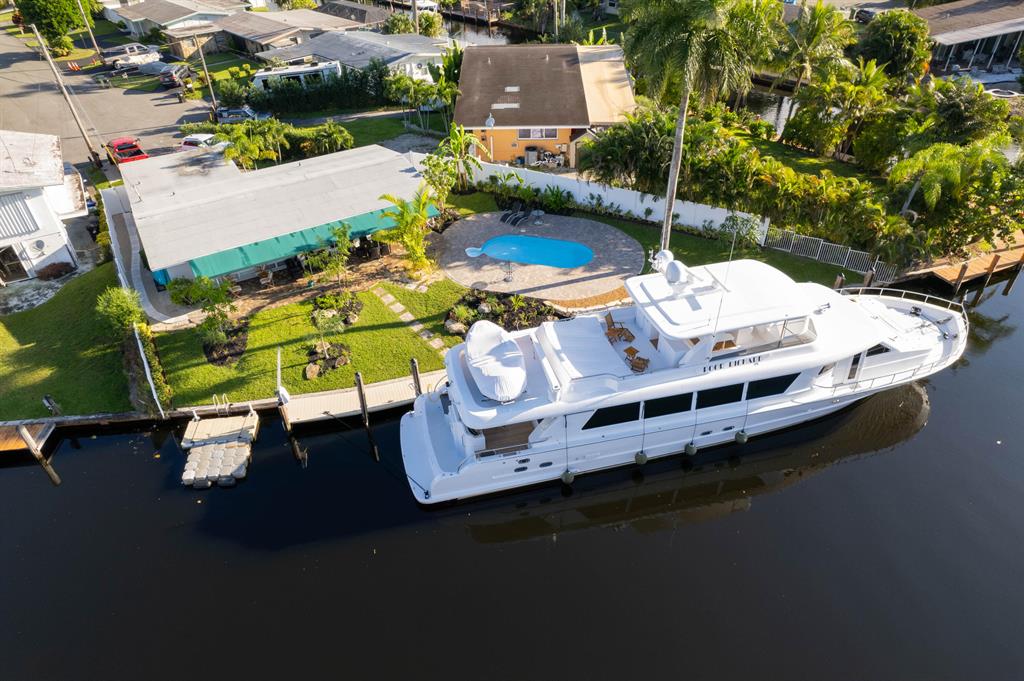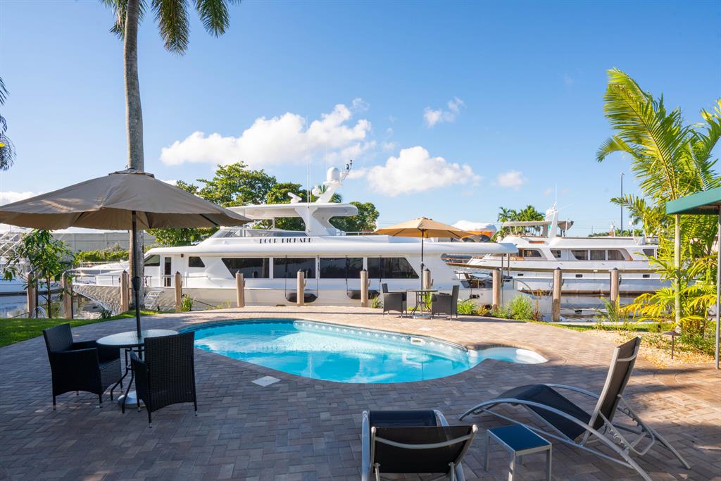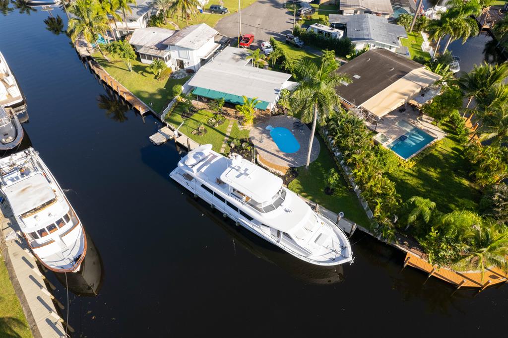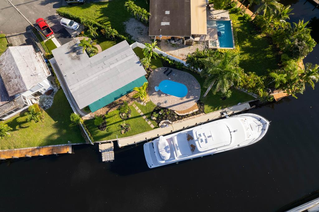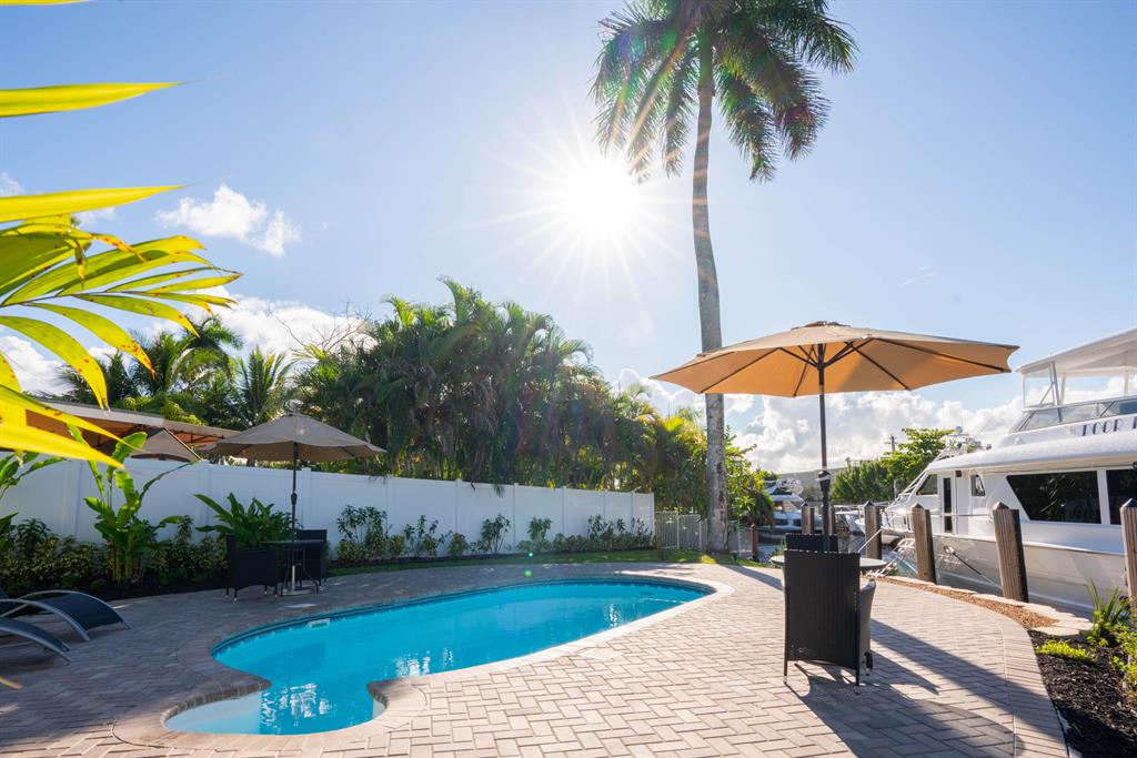 Rarely available point lot with wide water views of the new river. This amazing home has a new 100 foot dock and over 132 foot of non fixed bridge waterfront, perfect for up to 120 foot yacht. The dock has 150 amp electrical service and water. This waterfront dream is fully remodeled with high-end finishes and upgrades including a new roof, new HVAC, remodeled kitchen with stainless steel appliances. Both bathrooms are also fully remodeled. On the exterior new landscaping in the front and rear, white vinyl privacy fence, new extended paver patio around the pool and steps down to the dock. This is the only waterfront lot in the area for sale near this price point with over 100 foot of dock space for a mega yacht. Yacht owners dream, stop renting dock space and buy this house.