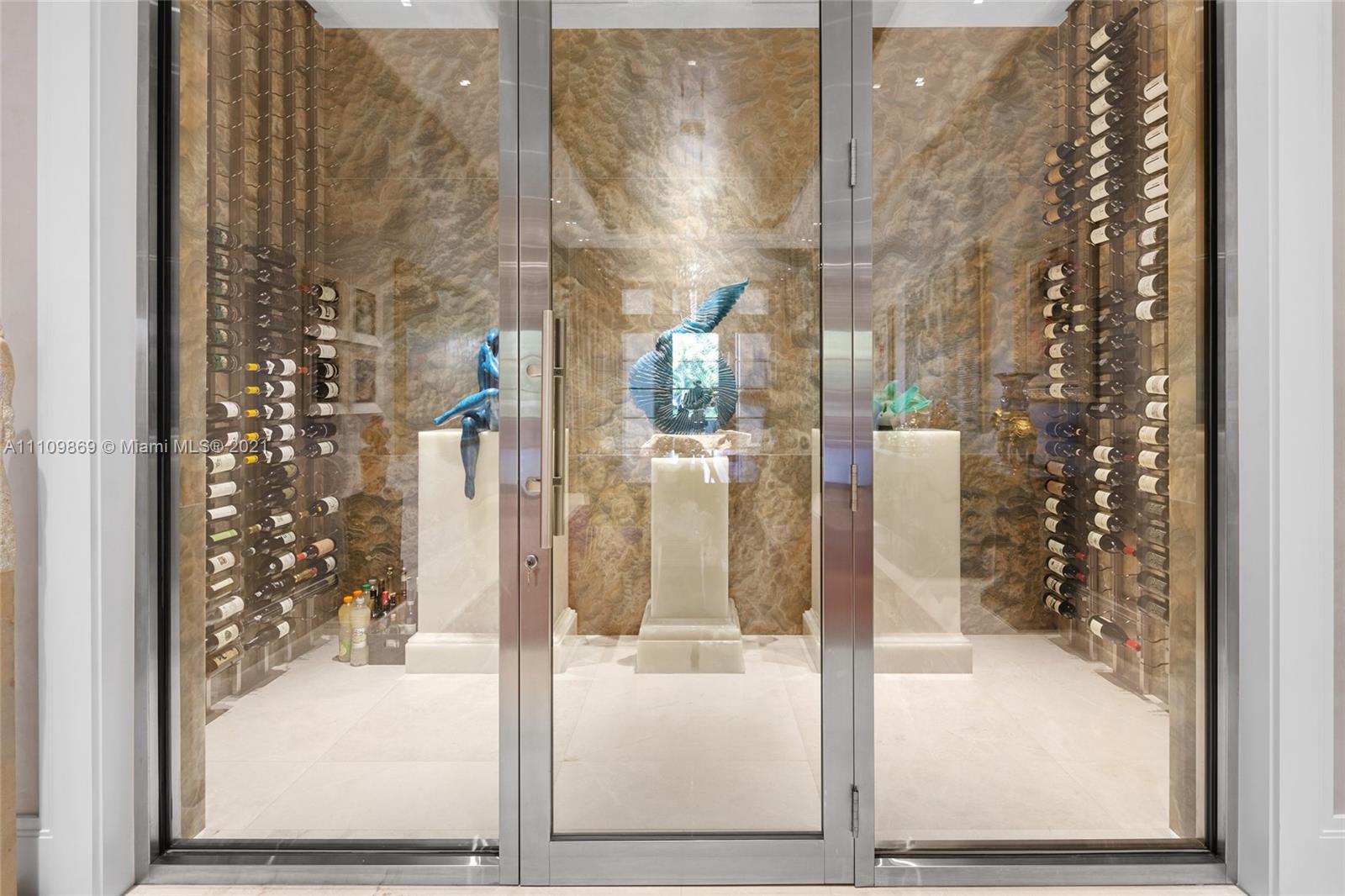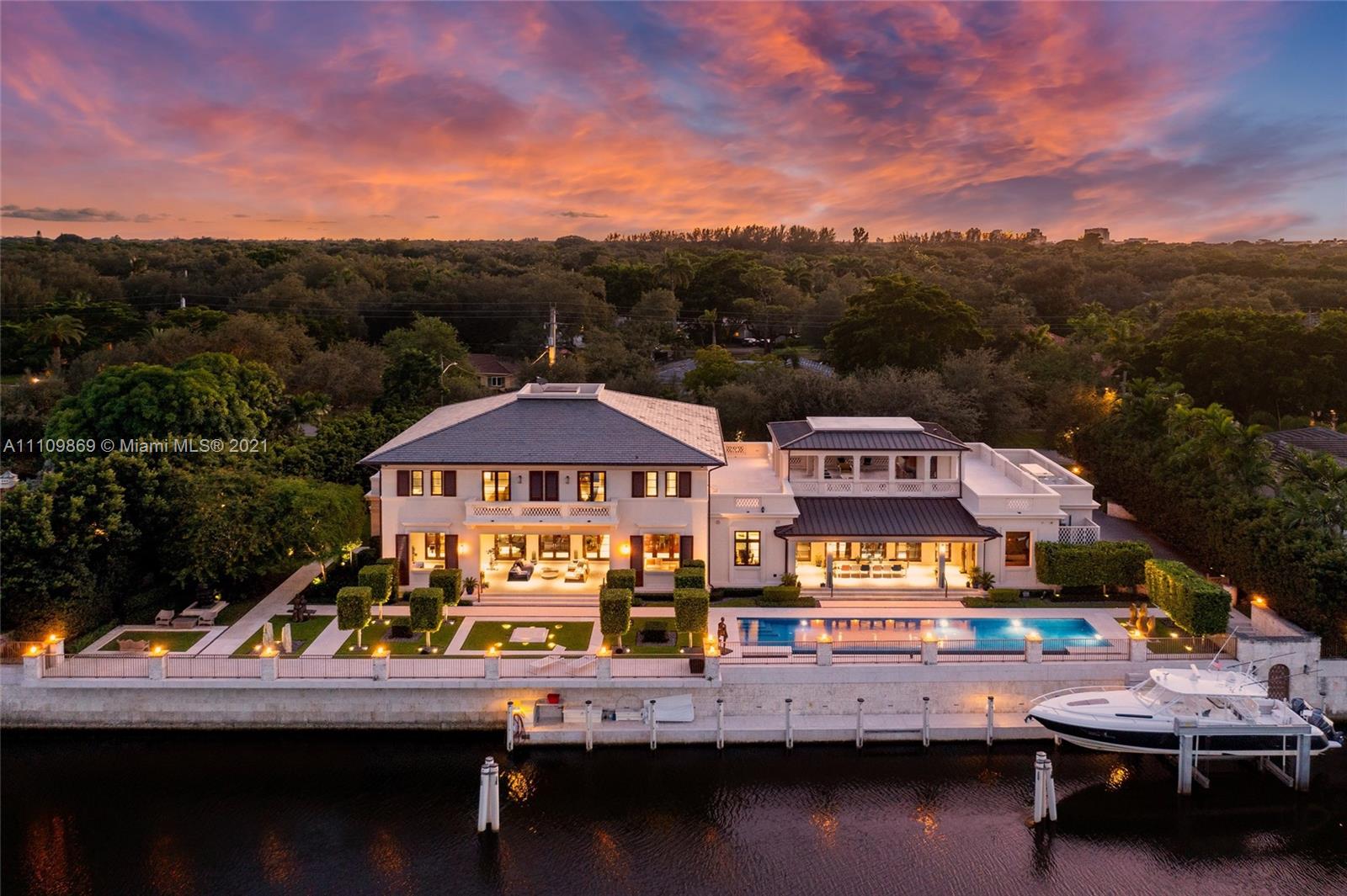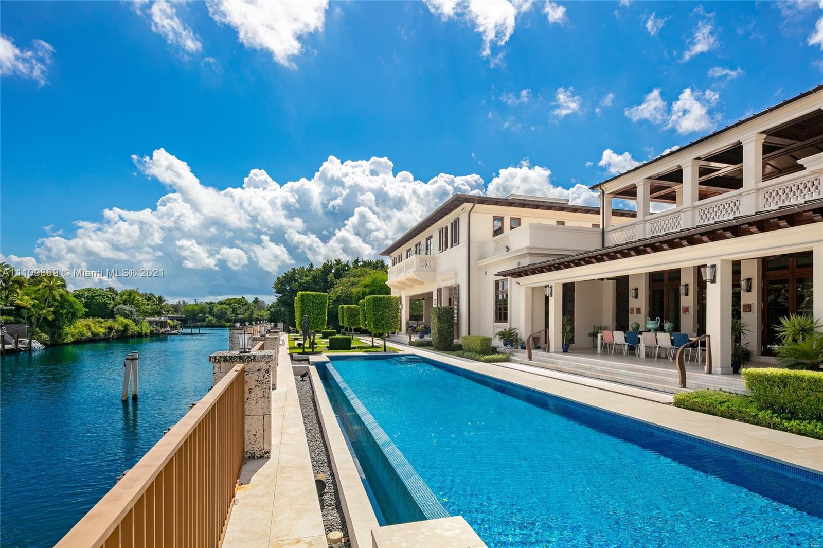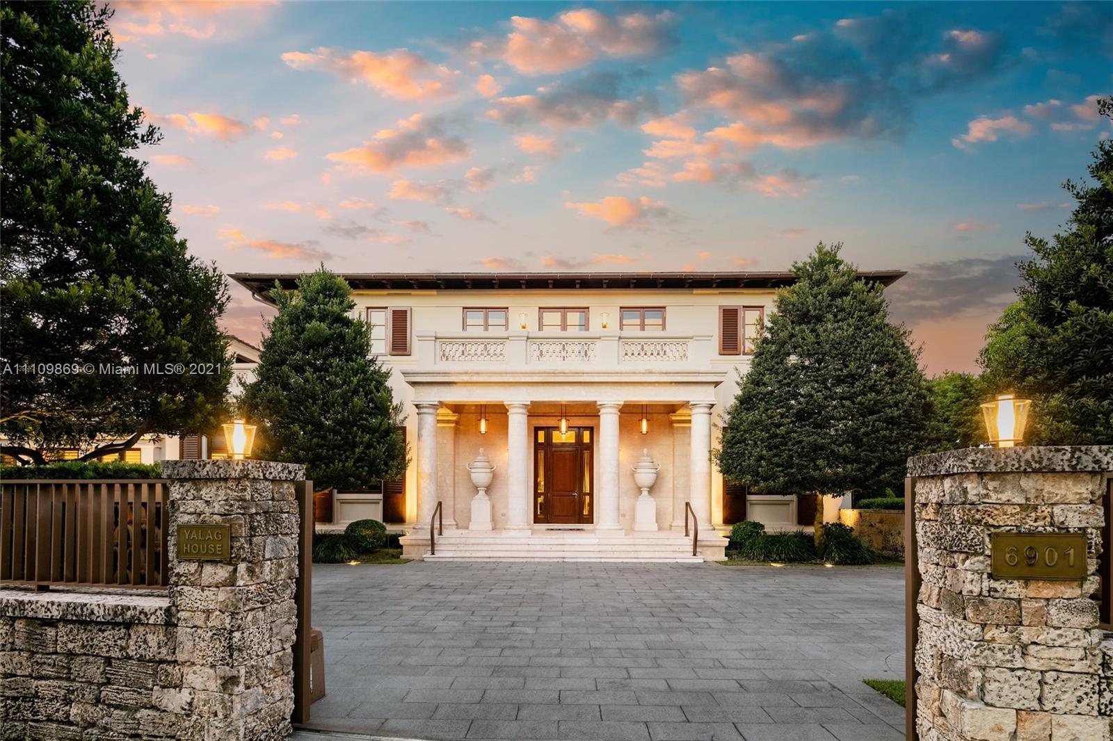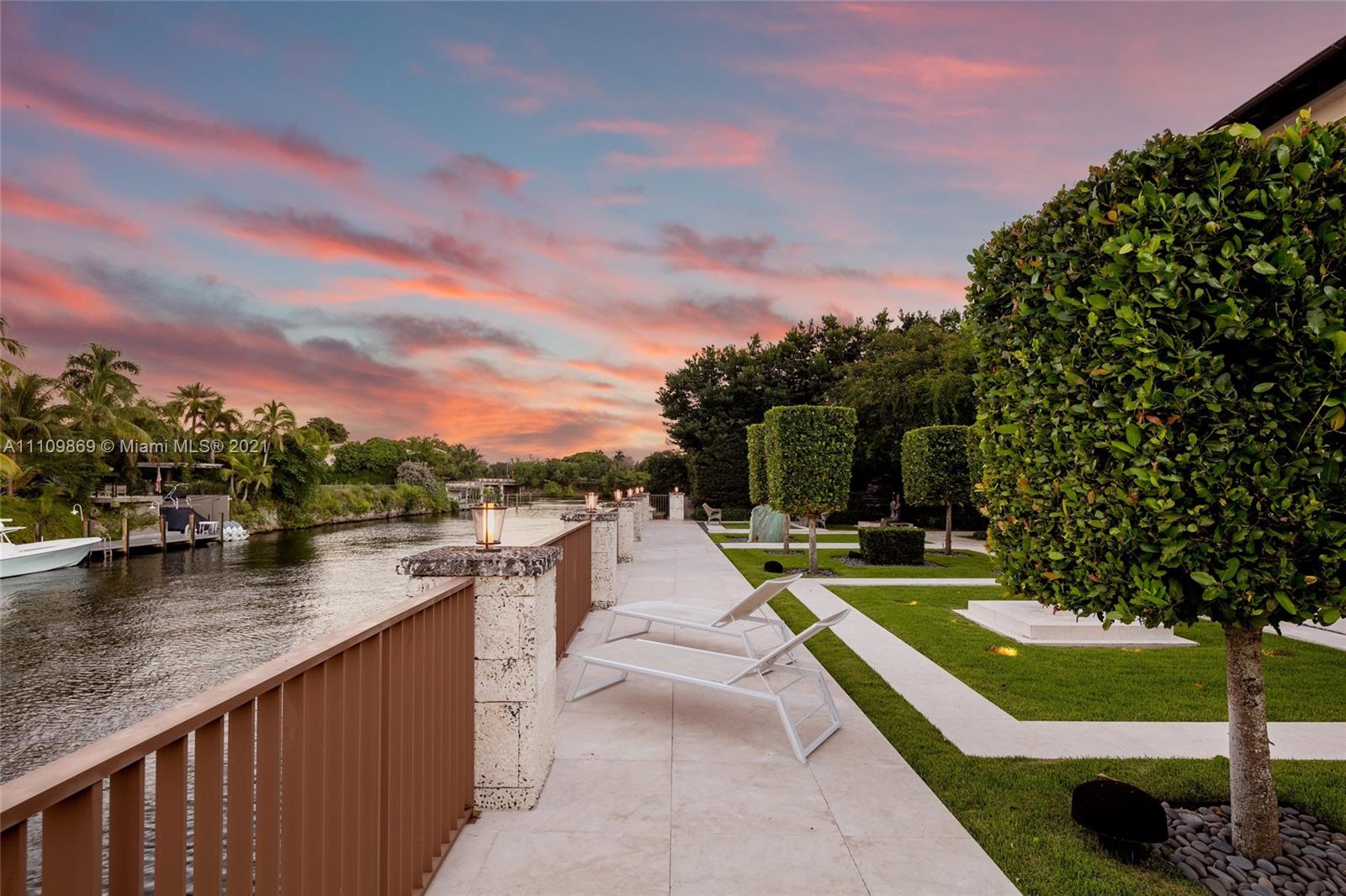 Sophistication is the key definition of this 6 bedroom, 11 bathroom custom built Coral Gables home. No detail left behind between pristine finishes and unmatched materials which shape this inspiring property. Step inside and become drawn towards grand Barovier & Toso Murano Glass and Crystal chandelier and immaculate marble pillars. Dine guests in grand dining room and chefs kitchen with waterfall island featuring emerald quarts countertop. Take in crisp bay breeze every morning on oversized terrace overlooking beautifully gated dock. Royal aesthetics organically follow to the outdoor grounds which include gold and silver brushed metallic plaster walls and marble floors. Beautiful infinity pool that tastefully coincides with 200' of waterfront. Truly one that does not fail to inspire.