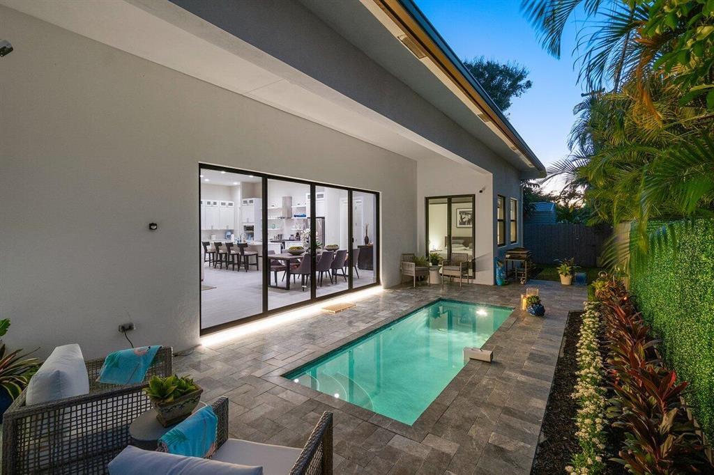 Stunning 4 Bedroom, 3 bathroom home. With 10'-15' ceilings and open living floor plan. Master Bedroom over looks pool with generous master bath and huge walk-in his/ her closets. Very large 2 car garage with high ceilings. Gated yard with pool.Ready for immediate occupancy