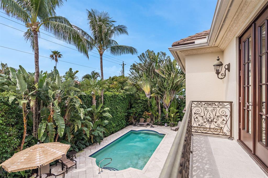 Gorgeous Palm Beach Country Club golf course view from this modern-day Mediterranean. Full impact glass, Chef's Kitchen, Den/Office/Library, Formal Dining Room, Family Room and Living Room with gas fireplaces, two car air-conditioned garage. Large Master Suite willimpress, with two baths and two walk-in closets. Original plans called for four bedrooms. Two Guest Suites with ensuite baths. High ceilings on both firstand second floors. Pool and entertainment area are hedged for complete privacy. Close to Ocean, Lake Trail, PB Country Club and The Beach Club.