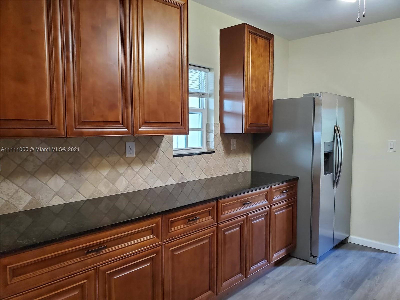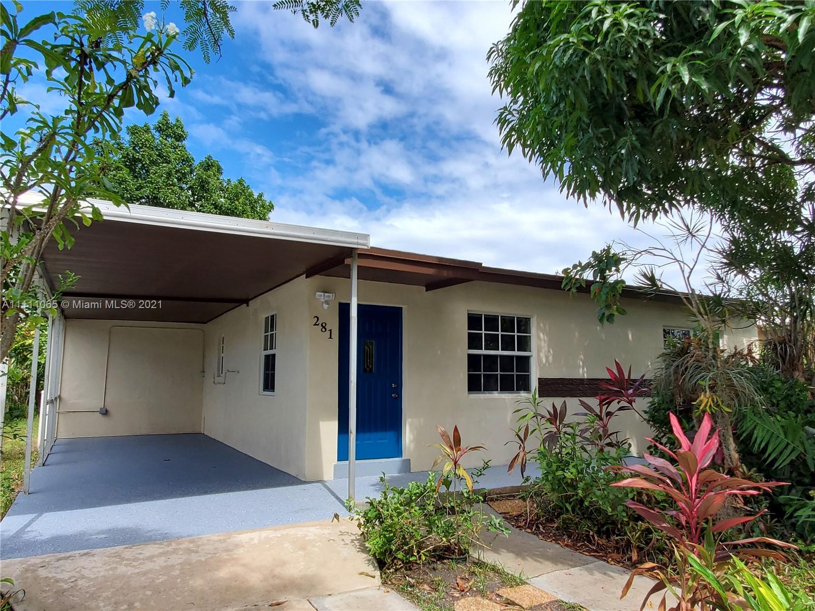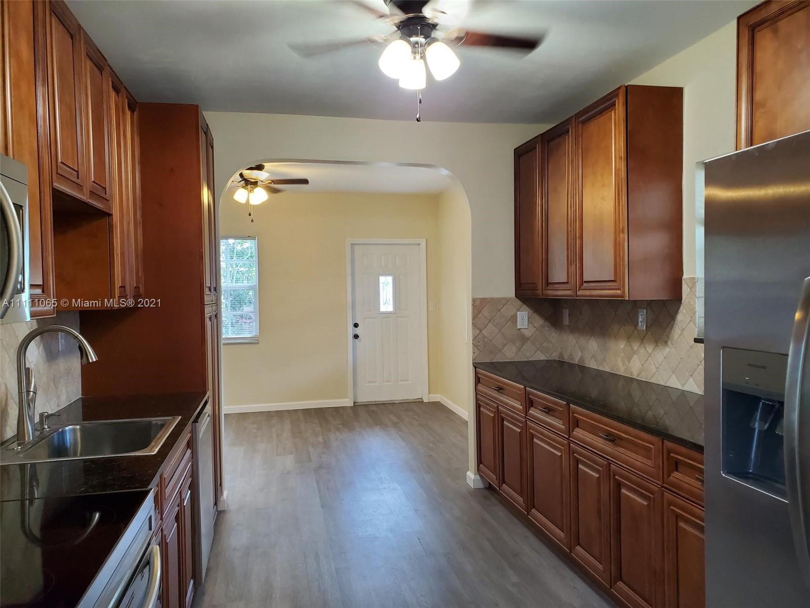 A special opportunity awaits you to be the lucky owner of a fully remodeled home. New flooring, cabinetry, SS appliances, fittings & fixtures, int./ext. lighting & doors, ceiling fans, window blinds, electric smoke/fire alarms, and electrical & plumbing throughout the home. Freshly painted inside & out. Convenient in-house laundry & utility room, too! Roof 3 yrs. new. Impact windows, sprinkler system, and freshly coated epoxy seal on carport & porch/patio surfaces. Spacious & peaceful backyard ideal for outdoor entertaining & large enough to add a pool! Fencing lines the entire perimeter of property. Fruit trees of mango, avocado, & banana dot the landscape. Make this move-in ready family house Your Home.