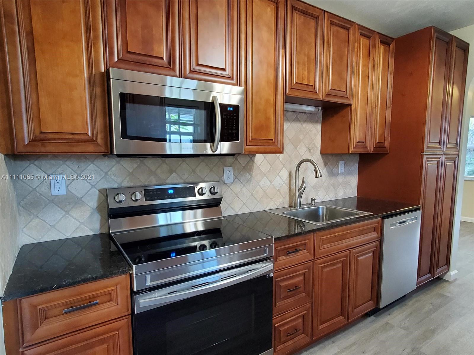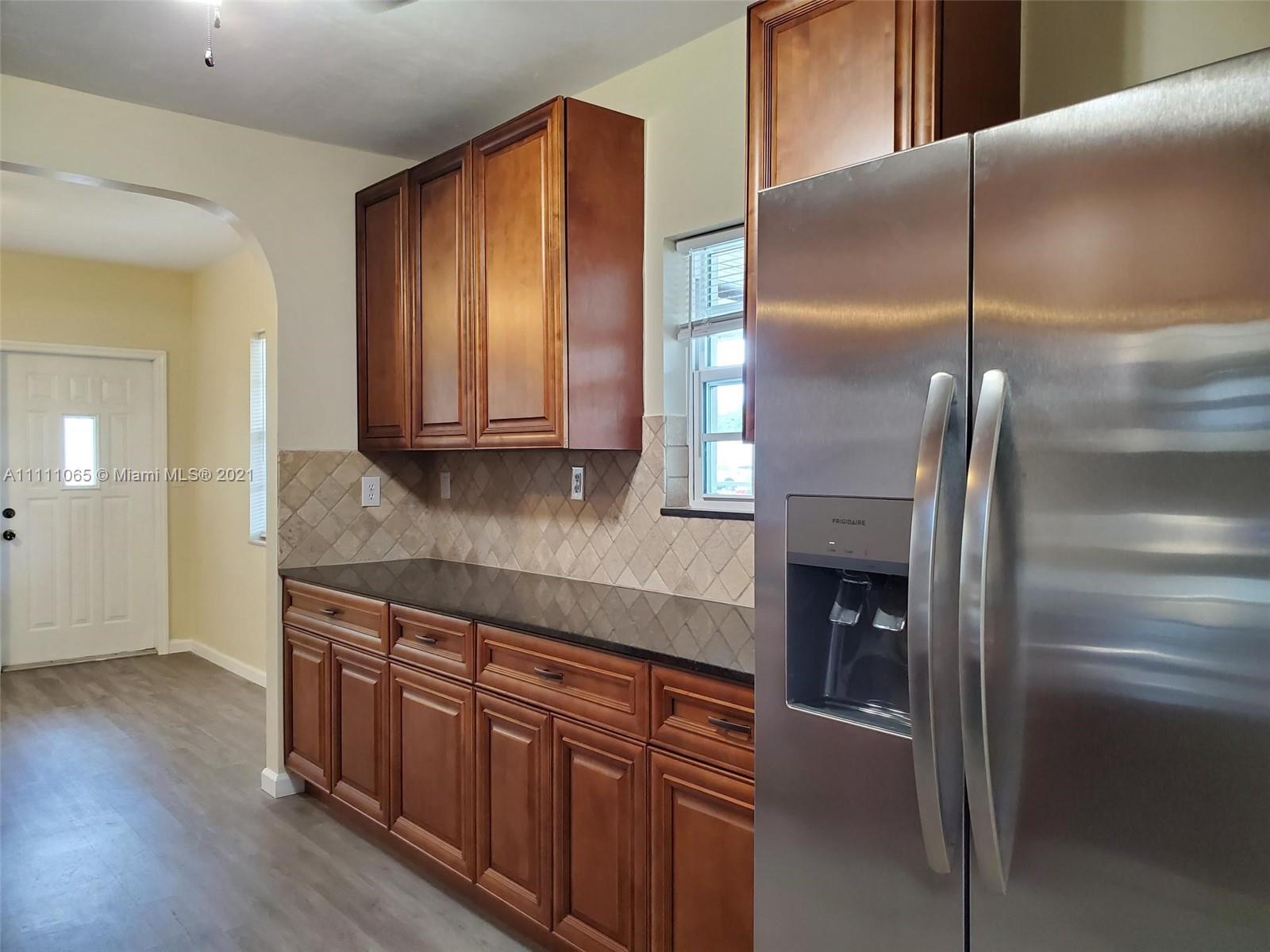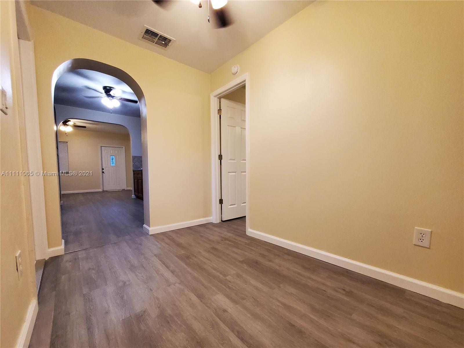 A special opportunity awaits you to be the lucky owner of a fully remodeled home. New flooring, cabinetry, SS appliances, fittings & fixtures, int./ext. lighting & doors, ceiling fans, window blinds, electric smoke/fire alarms, and electrical & plumbing throughout the home. Freshly painted inside & out. Convenient in-house laundry & utility room, too! Roof 3 yrs. new. Impact windows, sprinkler system, and freshly coated epoxy seal on carport & porch/patio surfaces. Spacious & peaceful backyard ideal for outdoor entertaining & large enough to add a pool! Fencing lines the entire perimeter of property. Fruit trees of mango, avocado, & banana dot the landscape. Make this move-in ready family house Your Home.