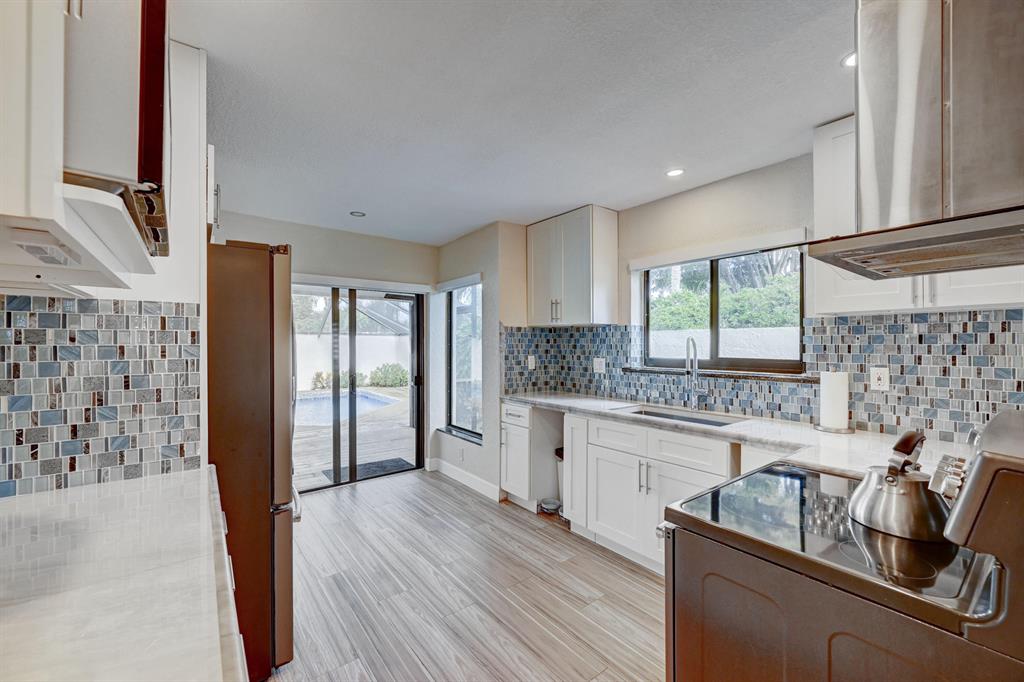 Rare find 2/Bedroom, 2/Bathroom renovated pool home in Central Boca. Within walking distance are religious worship, an ''A'' rated Elementary School (Via Verde K-8), and shopping. The home is equipped with a newer roof (2018), newer a/c and water heater (2020), newer washer and dryer; Impact Glass and tile flooring throughout; custom kitchen and bathrooms, 2 car garage, custom built wooded deck with decorative lights built-in, which surrounds a recently resurfaced salt water pool. There is a backyard entertainment area, equipped with 55'' tv w/sound bar, which can be seen and heard while in the pool. Home can be sold fully furnished. Should buyer use preferred lender buyer is to receive credit of up to $4000 (special conditions apply). Owner/agent.No HOA approval required.