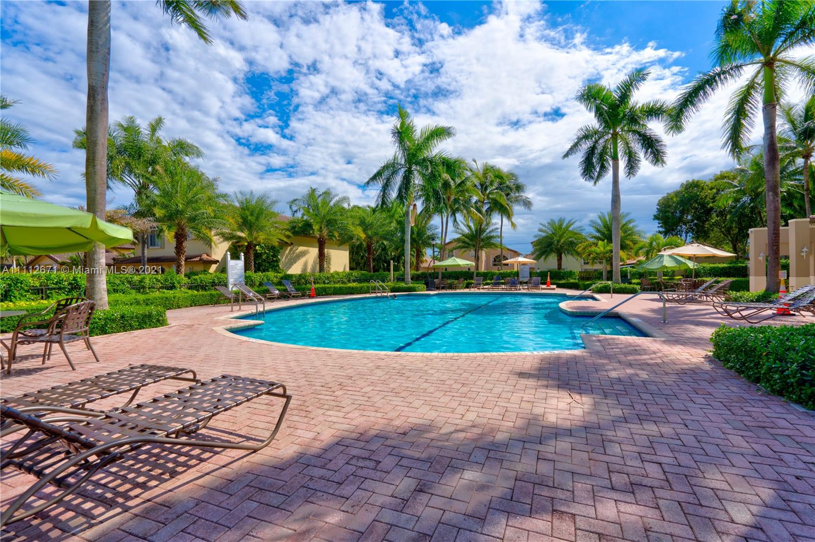 Located the Prestigious gated community of Doral Landings West famous for being a family oriented neighborhood with security guard 24/7. One block from the beautiful park “ Trails and Tails Park’’. Near A+ Schools! Less than a mile from Excellent Schools - 4 min Eugenia B. Driving To K-8 Center. This is a rare kind of home, hard to find ! Only a few in the Doral Area. 2bed/2bath spectacular PREMIUM CORNER Unit with a PERFECT - UNIQUE LAYOUT, beautiful ceiling's design, paved cute patio, accordion shutters and garage, perfect for any Buyer. Enjoy a cup of coffee or a Tea appreciating the beauty of the green! Moving Ready! Fridge and modern stainless steel appliances less than a year old. Inside 6 months A/C unit , new-modern washer and dryer ! Well-Maintained Garden! Low HOA $262 monthly.
