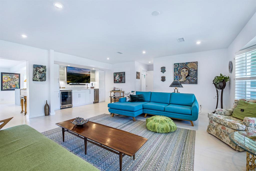 This Stunning ''no expense spared'' Remodeled ranch has it all. Features include a new metal roof, impact glass through out, large white porcelain tile floors, Gorgeous kitchen with quartz island and stainless appliances, and even the cast iron pipes and plumbing were replaced with PVC all the way out to the main city hook ups. The large dining room is adjacent to the kitchen, living area and open to the back patio w/ 4 large French doors. The living area is huge and includes an entertaining area complete with a bar, fridge and icemaker. There are 4 bedrooms w/ one set up as a guest suite w/ a morning kitchen. The outdoor area features a deep salt water pool, a new 60 ft trex dock, new pilings and 30/ 50 amp power. A true Boater's Dream and all close to Restaurants, Shops and Beaches