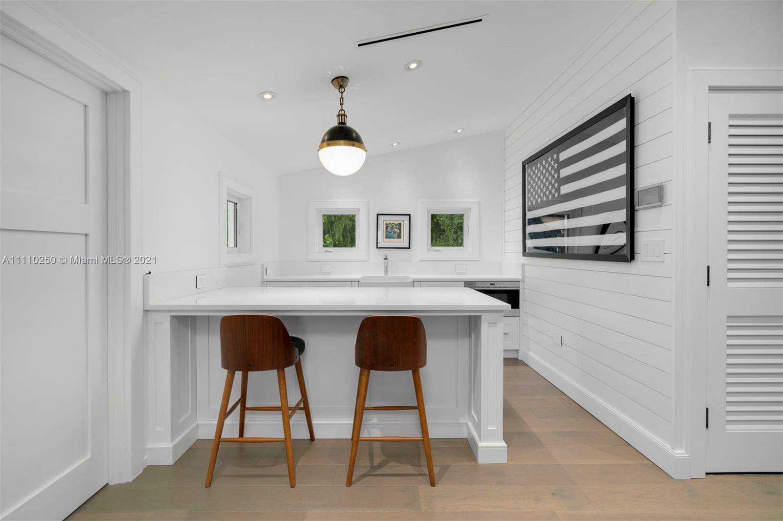 Exquisite Pinecrest estate w/sophisticated Hamptons flair is a designer's masterpiece. Like a page out of Architectural Digest, this 6 bedroom residence and carriage house are renovated to perfection. Highlights include custom millwork & cabinetry, wide-plank oak floors, vaulted open beamed ceilings, full house generator, 3 car garage & more. The elegant foyer entry reveals a graceful staircase, & the light filled living room & dining room are an entertainer's dream. The gourmet kitchen boasts custom cabinetry, 2 Sub-Zero refrigerators, Wolf range, & a large marble island. Serene and luxurious, the primary suite offers every modern comfort. Magnificent landscaping, wraparound veranda perfect for al fresco dining, & heated saltwater pool complete this extraordinary residence.
