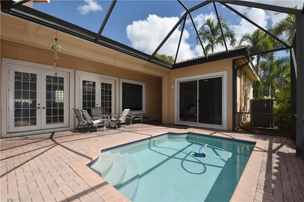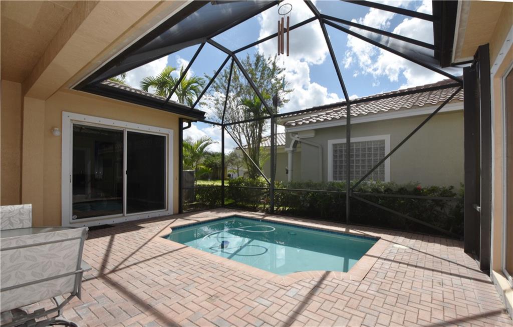 CHARMING COURTYARD HOME WITH POOL, 3 BEDROOM 2 FULL BATHROOM IN MAIN HOME/1 BEDROOM 1 FULL BATHROOM IN GUEST HOUSE, TWO SETS OF FRENCH DOORS LEADING TO COURTYARD/POOL AREA, HIGH END MARBLE FLOORING THROUGHOUT, PRESTIGIOUS ENTRANCE WITH DOMED CEILING AND MARBLE INLAY. KITCHEN BOASTS A BEAUTIFUL QUARTZ COUNTERTOP ISLAND AND BLACK GRANITE BACK COUNTERTOP WITH STAINLESS STEEL APPLIANCES, GREAT LAYOUT FOR ENDLESS ENTERTAINMENT POSSIBILITIES, GUEST HOUSE HAS PRIVATE ENTRANCE AND WOULD MAKE FOR A GREAT HOME OFFICE. HOA INCLUDES LAWN, ALARM, BASIC CABLE. GUARD GATED COMMUNITY WITH 2 CLUBHOUSES, RESORT STYLE POOLS, KIDS SPLASH AREA, TENNIS, 2 GYMS, BIKE/WALKING TRAILS, CLASSES, EVENTS AND MUCH MORE. THIS ONE IS A GEM!