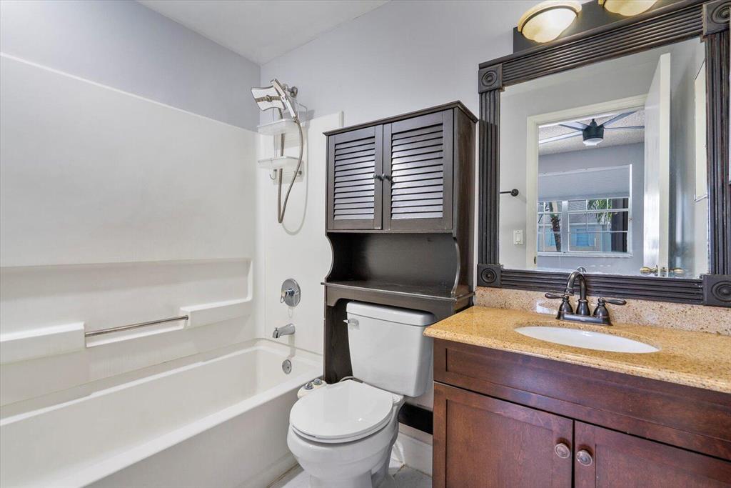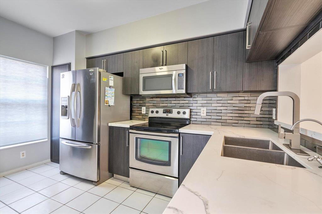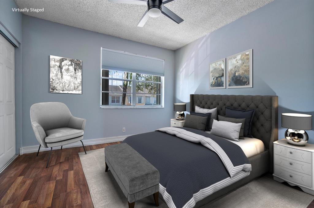 Amazing corner unit townhouse boasts two bedrooms, two full bathrooms and one half bath. This home features an updated kitchen with quartz countertops, stainless steel appliances and a stylish backsplash. There is a spacious living area with sliders leading to the screened-in patio which has an extra storage area. Upstairs are two spacious en-suite bedrooms. Home is move-in ready with low HOA fees and zoned for A-rated schools. All Buyers must purchase once yearly 285.00 To the Town of Bonaventure which offers a large pool, gym, tennis, bowling and other activities.