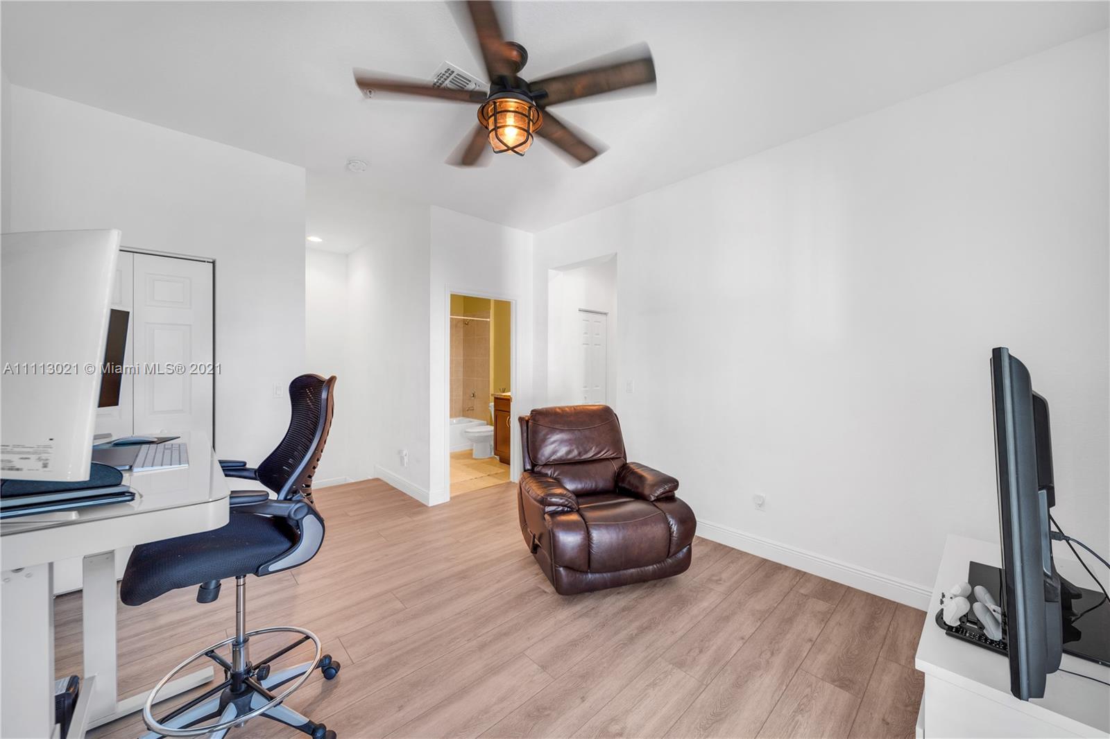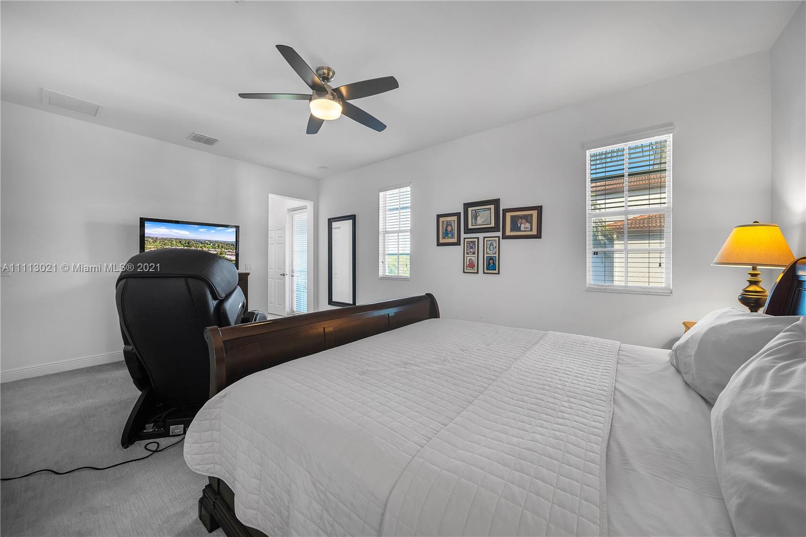 Rare Find Model Unit, the only one of its kind on the market! Beautiful 3 bed / 2.5 bath furnished corner two-story townhome. Featuring oversized master bedroom, renovated kitchen, tile floors with carpeted master bedroom. Rest of second floor and stairs are wood floors. Large walk-in closets, private den, extra balcony feature from master bedroom with view to open preserve, small paved patio, large two-car garage with driveway premium allowing room for two extra cars. All windows are impact resistance with plantation shutter blinds. Your perfect home awaits. Amazing family-friendly lakefront community features pool, gym, clubhouse, kids playground, walking trail Low HOA fee includes basic cable & internet Home is sold fully-furnished and ready to move in