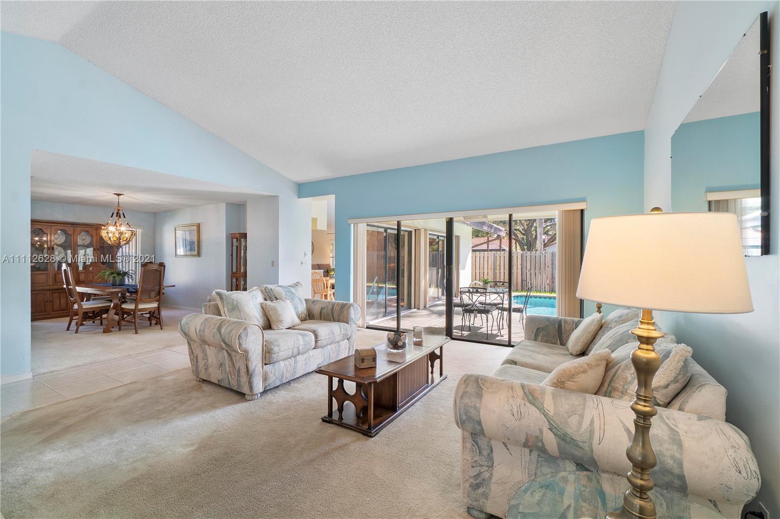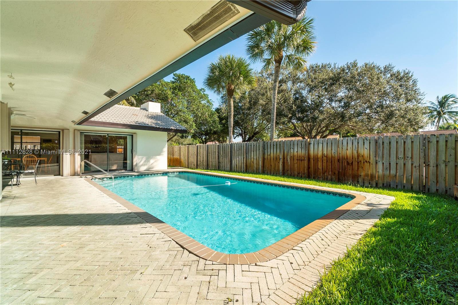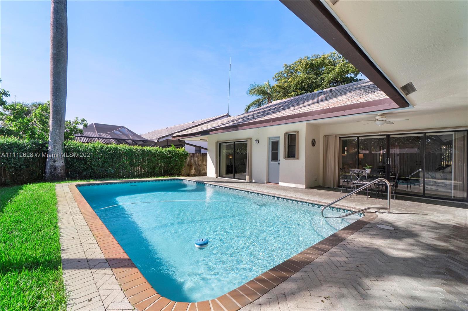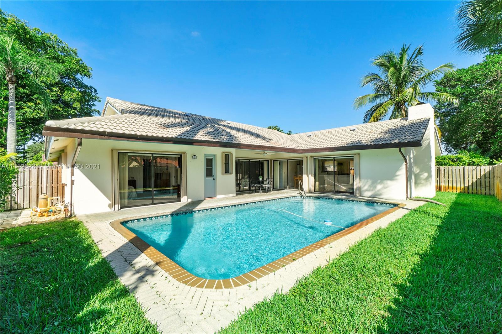 Come and see this light and bright, immaculate 4 Bedroom 2.5 Bath pool home with open floor plan and soaring ceilings for contemporary Florida living! You will love looking outside from your triple sliding glass doors to the serene and peaceful pool views from throughout your home. Enjoy the paver deck and crystal pool every day! Located in desirable Coral Springs with easy access to parks, schools, restaurants and highways! Features include: A/C 2018, impact garage door 2021, roof 2003, complete hurricane accordion shutters, fenced yard, laminate wood floors in 3 bedrooms, master bathroom has double sinks and shower, concrete driveway, double door entry, inside laundry room with extra cabinets, pantry in kitchen, fireplace with coral wall in family room, alarm and so much more!