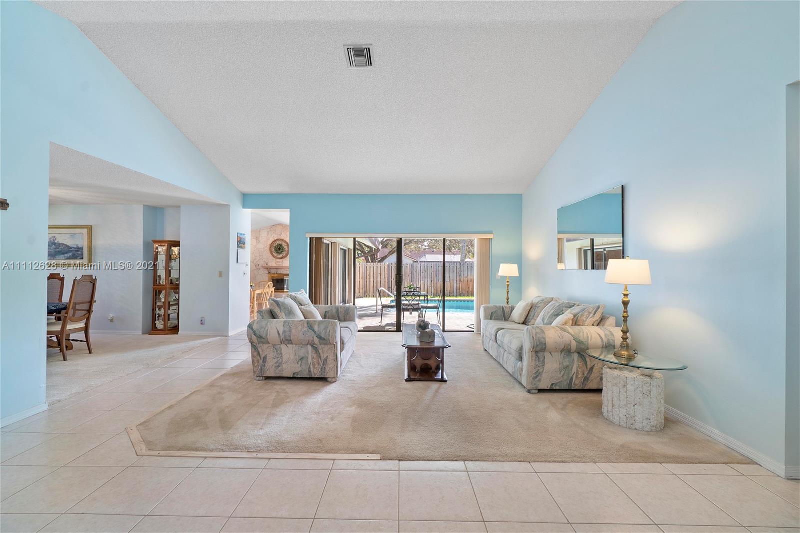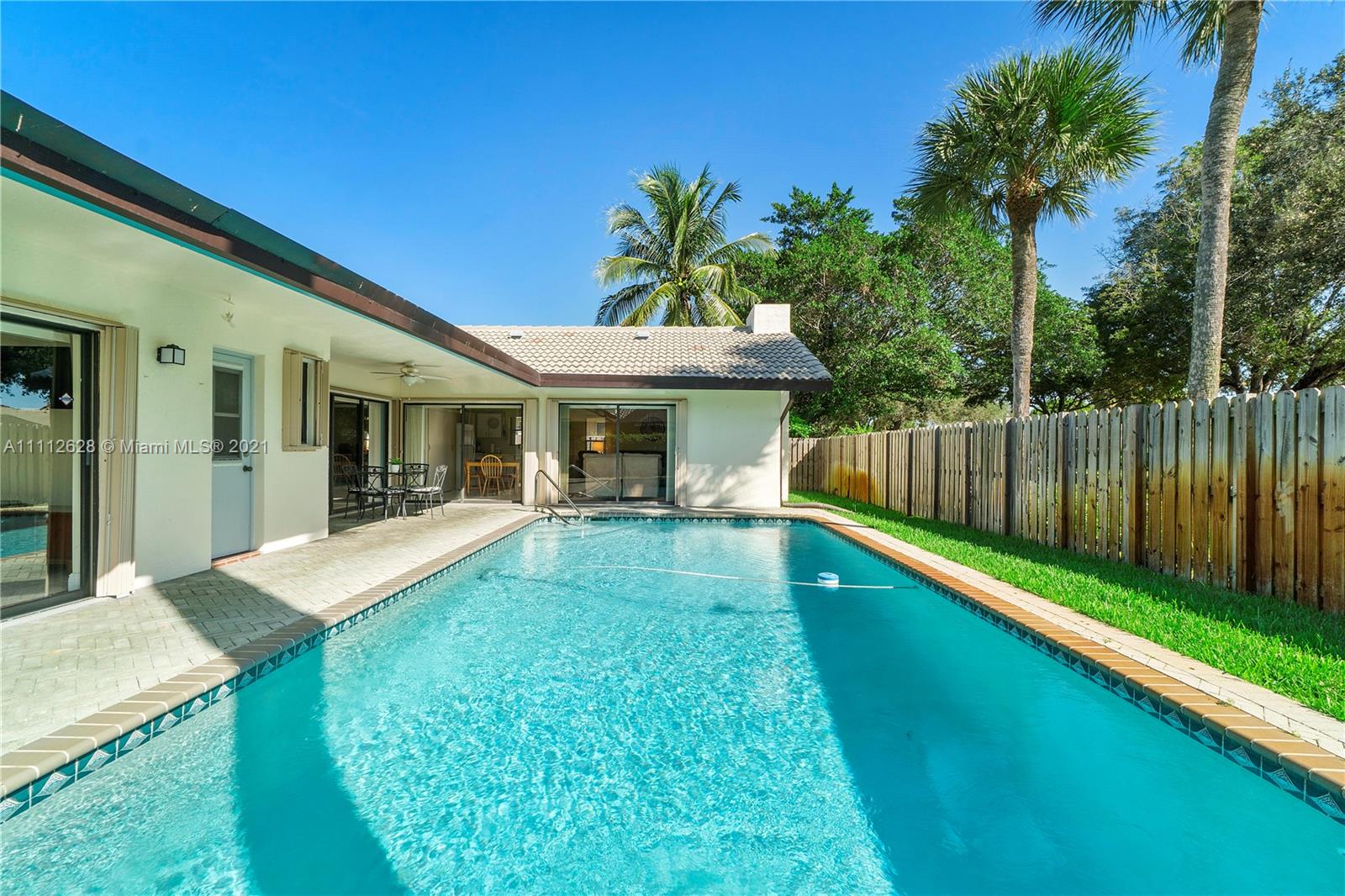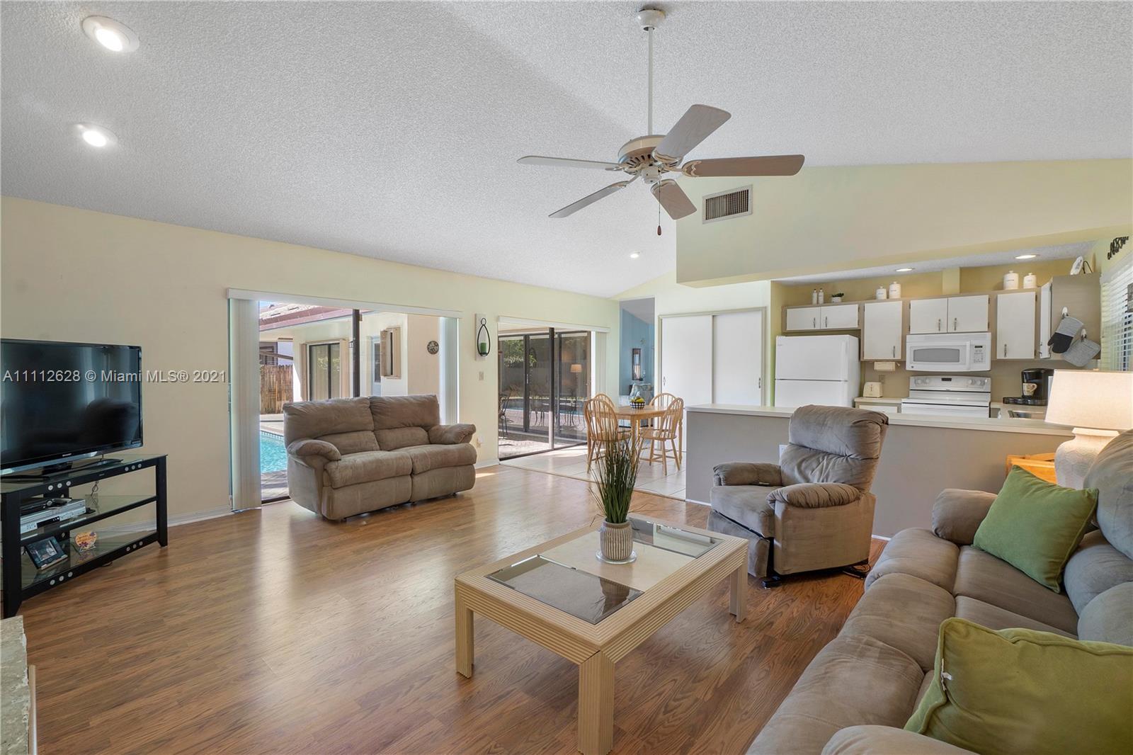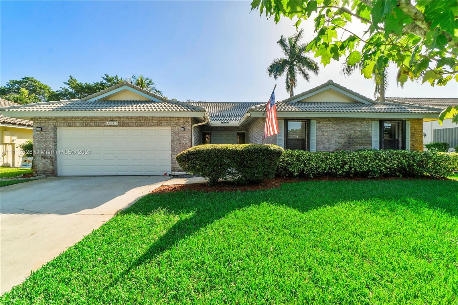 Come and see this light and bright, immaculate 4 Bedroom 2.5 Bath pool home with open floor plan and soaring ceilings for contemporary Florida living! You will love looking outside from your triple sliding glass doors to the serene and peaceful pool views from throughout your home. Enjoy the paver deck and crystal pool every day! Located in desirable Coral Springs with easy access to parks, schools, restaurants and highways! Features include: A/C 2018, impact garage door 2021, roof 2003, complete hurricane accordion shutters, fenced yard, laminate wood floors in 3 bedrooms, master bathroom has double sinks and shower, concrete driveway, double door entry, inside laundry room with extra cabinets, pantry in kitchen, fireplace with coral wall in family room, alarm and so much more!