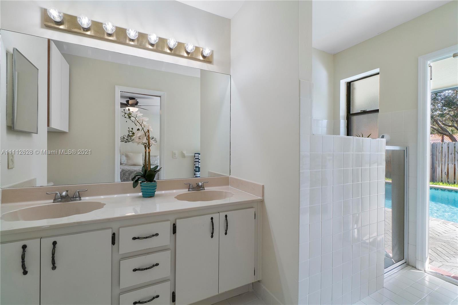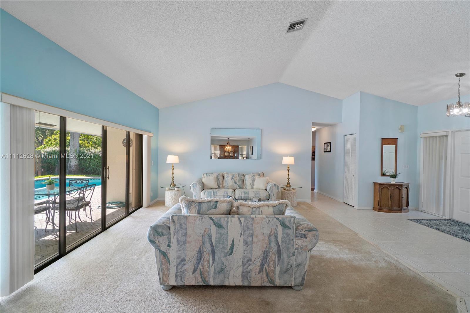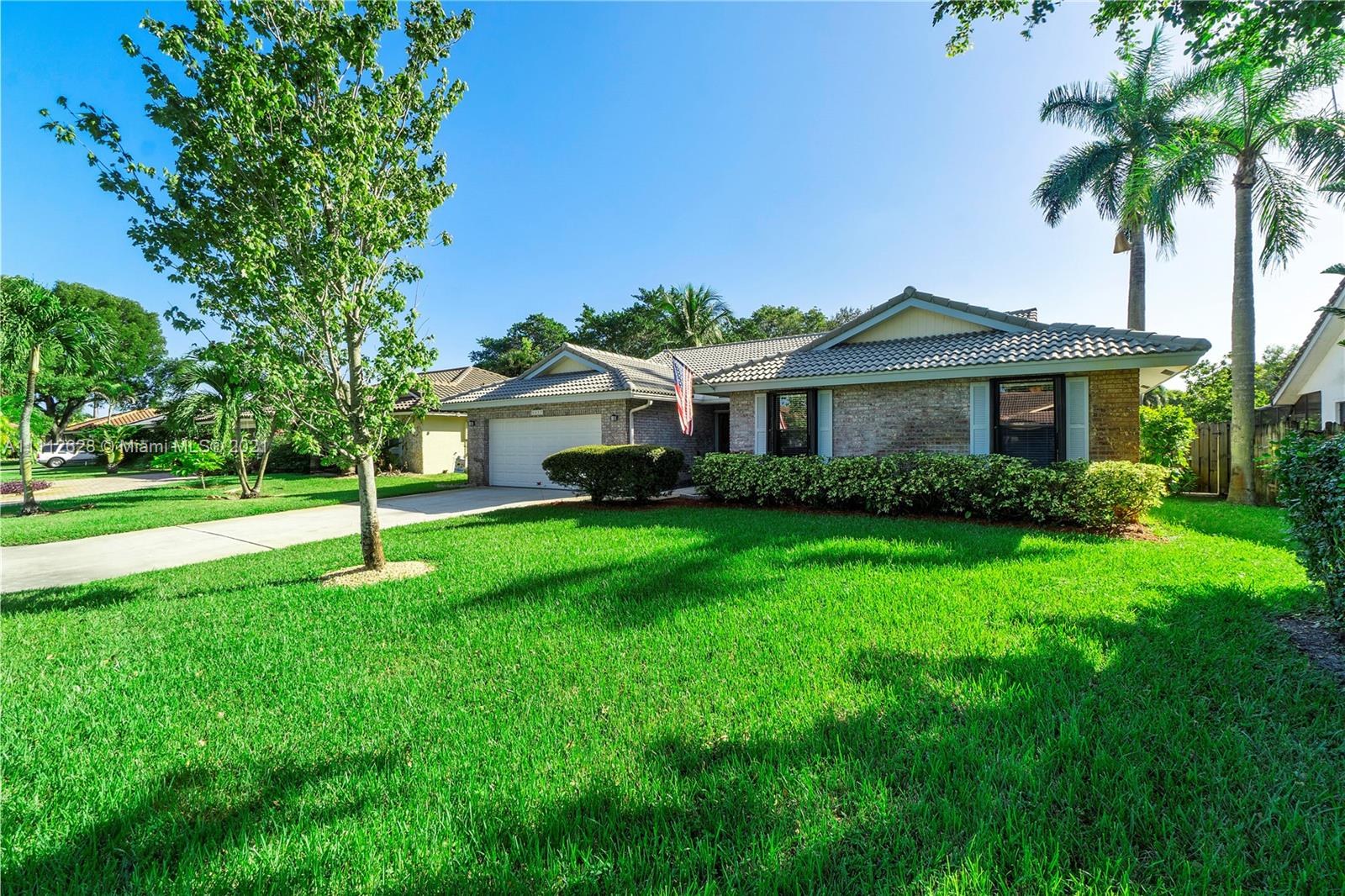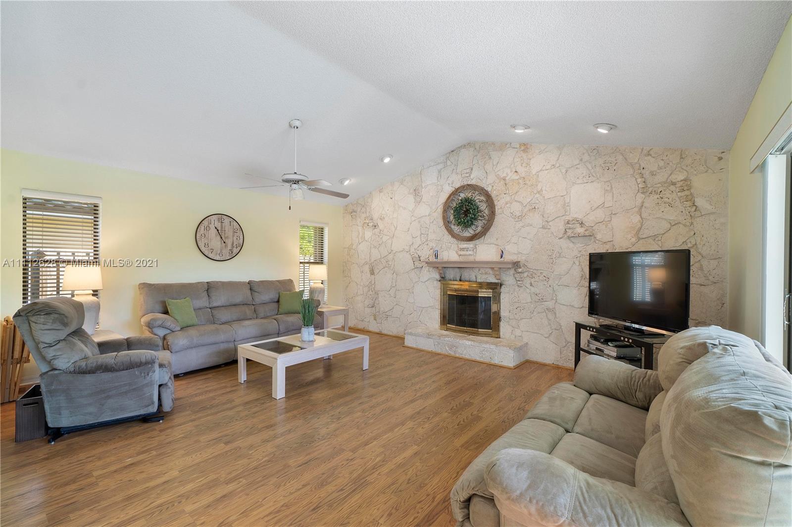 Come and see this light and bright, immaculate 4 Bedroom 2.5 Bath pool home with open floor plan and soaring ceilings for contemporary Florida living! You will love looking outside from your triple sliding glass doors to the serene and peaceful pool views from throughout your home. Enjoy the paver deck and crystal pool every day! Located in desirable Coral Springs with easy access to parks, schools, restaurants and highways! Features include: A/C 2018, impact garage door 2021, roof 2003, complete hurricane accordion shutters, fenced yard, laminate wood floors in 3 bedrooms, master bathroom has double sinks and shower, concrete driveway, double door entry, inside laundry room with extra cabinets, pantry in kitchen, fireplace with coral wall in family room, alarm and so much more!