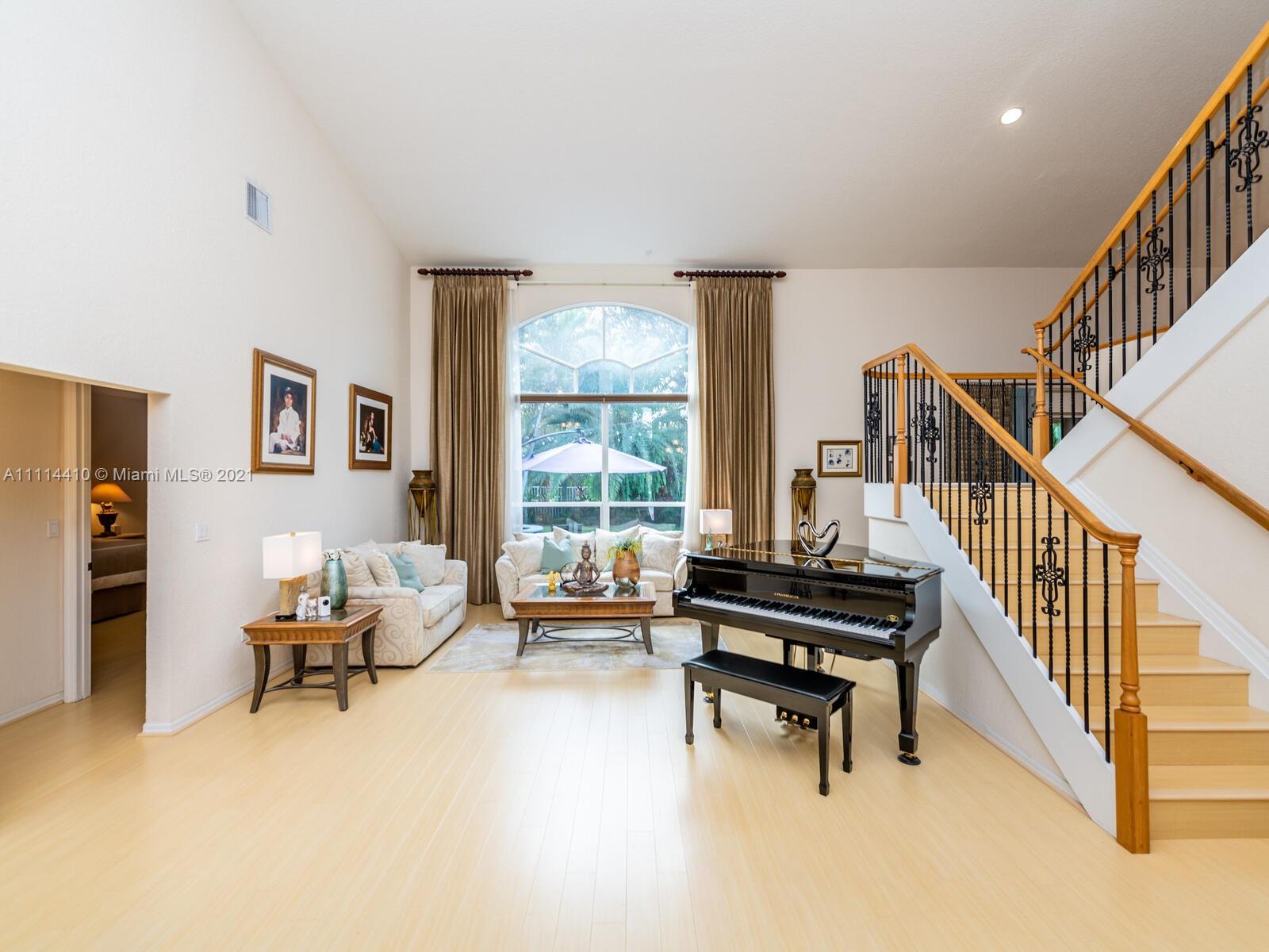 Executive pool home featuring 4 bedrooms + office, 3.5 baths, loft & 3 car garage. Open floor plan, soaring ceilings and thoughtful architectural details. The kitchen boasts a natural gas stove, opens up to the family room which overlooks a professionally landscaped yard, pool and entertainment area. First floor primary suite is generously proportioned with double closets a large bathroom with shower and jacuzzi tub. Also on the first floor is a beautiful office with tons of natural light from windows facing the garden. Upstairs are 3 additional bedrooms and a loft area. This home is located in Pembroke Falls a resort styled community offering clubhouse, pool, gym, yoga, tennis & basketball courts, bike and jogging trails, playgrounds, manned guard gate. HOA includes cable/internet.