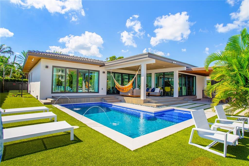 Move into this stunning contemporary boaters dream residence on a rare cul-de-sac lot with spectacular sunrise views from Biscayne Bay & vast intercoastal views throughout home. This 3 bedroom 3.5 bathroom masterpiece was designed to perfection by a renown architect & brilliant outdoor spaces by Luxapatio. No detail was missed with generous entertaining spaces both indoor and out.Lounge pool has 9 jets & smart aqualink system. Custom built dock has 75 Ft of water frontage equipped to dock a 50 Ft yacht. Astonishing Imported front door, 24X48 Italian porcelain floors throughout,Spaniard kitchen cabinets & huge porcelain Island, Viking appliances, Lynx outdoor kitchen, Custom aluminum Pergola, Indoor & outdoor LED lighting. Make this resort style dream home yours today. Sunset views included