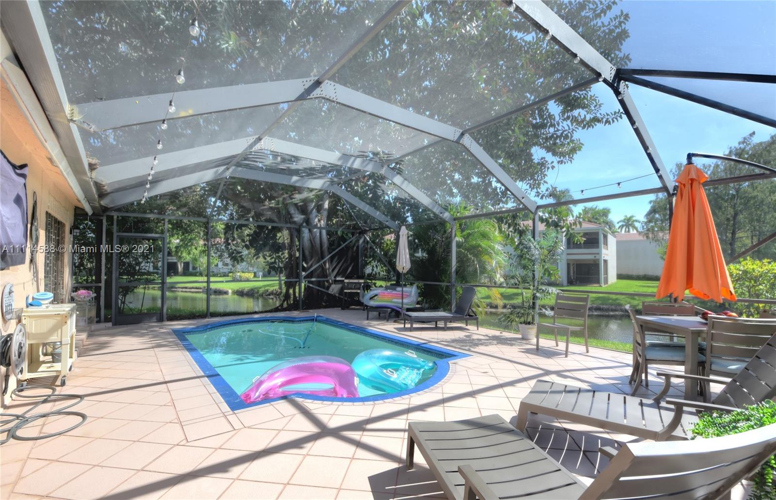 IMMACULATE LAKE VIEWS from This PERFECTLY-MAINTAINED 2/2 Pool Home in the Heart of Plantation. LARGEST CARPORT IN THE NEIGHBORHOOD leads up to a Garage. Beautiful Screen-In Pool area is Private and has SWEEPING lake views at The Same Time. TWO WALK-IN CLOSETS, Skylights, Updates throughout the home. Spacious Bonus Room can be Used for Dining, Office, Playroom. Open Living Area with Vaulted Ceilings, Recessed Lighting, Spacious Kitchen. New Paint Inside and Out! Updated Master Bath with Dual Sinks. Carport can Accommodate 4+ Cars! PERFECT Pool for Relaxing With The Benefits of Being MINUTES AWAY from Shopping, Restaurants, Highways! TONS of GREEN SPACE in the yard, Beautiful Trees for Shade and Relaxation. MUST-SEE TROPICAL POOL HOME!!