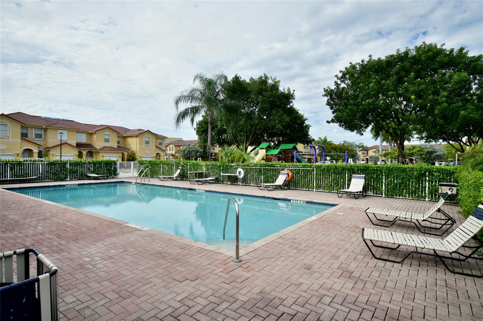 Marvelous CORNER townhouse at "SANTORINI "in ISLAND AT DORAL ,it has HIGH IMPACT WINDOWS and GLASS DOOR, 3 Beds 2.5 baths, kitchen with granite counter top with new stainless steel appliances and new washer and dryer. Tile floor through first floor and laminated on second floor. Wonderful fenced patio. Extra space storage under stairs. 1 garage +3 additional parking space and guest parking nearby. Laundry room at second floor. Beautiful garden at the entrance . Walking distance from school, pool and park. Few minutes away from shopping center, markets ,restaurants and highways. FULL amenities club house, tennis court, gym, swimming pool. TAKE A VIRTUAL TOURS AND WALK INSIDE