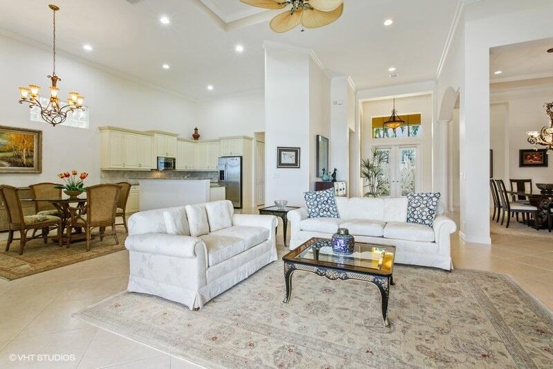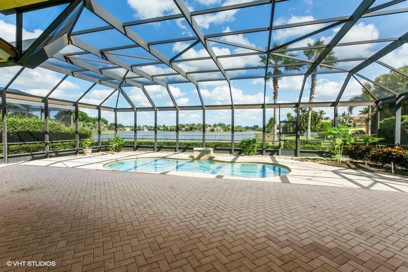 WOW WATER VIEW! SPECTACULAR PRIVATE WATER AND GOLF VIEWS AND SUNRISES MAKES THIS HOME A RARE FIND! THREE BEDROOMS PLUS DEN/OFFICE AND 3.1 BATHS, 2.1 GARAGES, ALL ON ONE LEVEL, THIS HOME IS READY FOR A QUICK CLOSE! HUGE SCREENED-IN LANAI BRINGS THE OUTDOORS IN WITH IT'S STUNNING VIEWS! LARGE OPEN KITCHEN WITH TONS OF CABINETRY, GRANITE COUNTERS, DOUBLE OVENS, S/S APPLIANCES. LARGE MASTER BEDROOM WITH TWO WALK-IN CLOSETS. EN SUITE HAS DUAL SINKS, SEPARATE STEP-IN SHOWER AND PRIVATE WATER CLOSET. ACCORDION SHUTTERS ON BACK AND SIDES, IMPACT GLASS ON FRONT. AC'S 2018 AND 2017, WATER HEATER 2017.