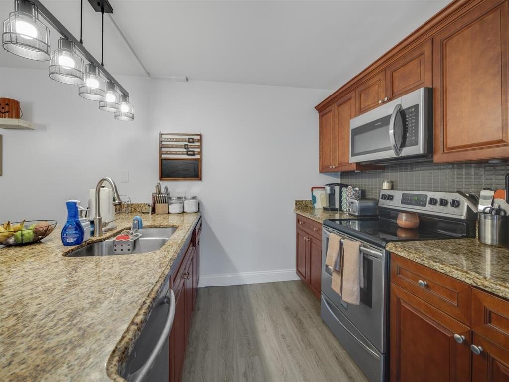 Modern Farmhouse at its finest! Cozy up to your decorative fireplace while relishing the beauty of your crisp white and wood staircase or your newly installed gray laminate flooring. For the first time ever doing laundry will be enjoyable in your sheik and modern guest bath/laundry room, and make sure not to overlook the granite counters and updated stainless appliances in the kitchen. This quad is the piece of the American Dream that you've been waiting for. With a downstairs fit for a magazine cover, upstairs featuring two perfectly laid-out master suites and a courtyard made for Florida living this townhome is not to be missed. Professional photos will be added soon.