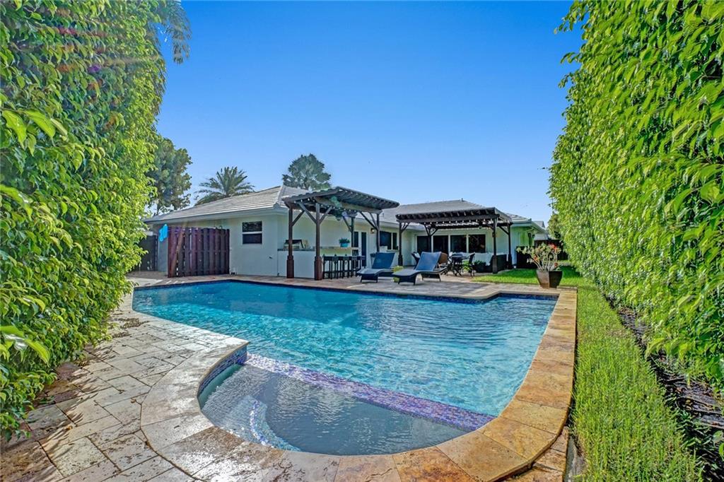 Spectacular 3 bedroom + den/office 2 bath home in Coral Ridge Country Club. Features includes impact windows and doors, spacious living areas, tile flooring throughout, office/den, gourmet kitchen with wood cabinetry and gas cooking, beautiful updated baths, interior laundry room, spacious 2 car garage and more. Fantastic backyard with saltwater pool, summer kitchen, pergola surrounded by lush landscaping for privacy. Quick walk to Bayview Park!