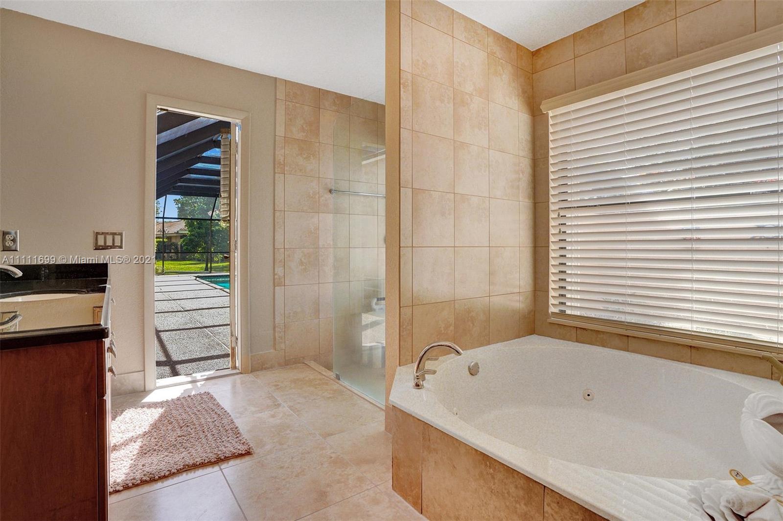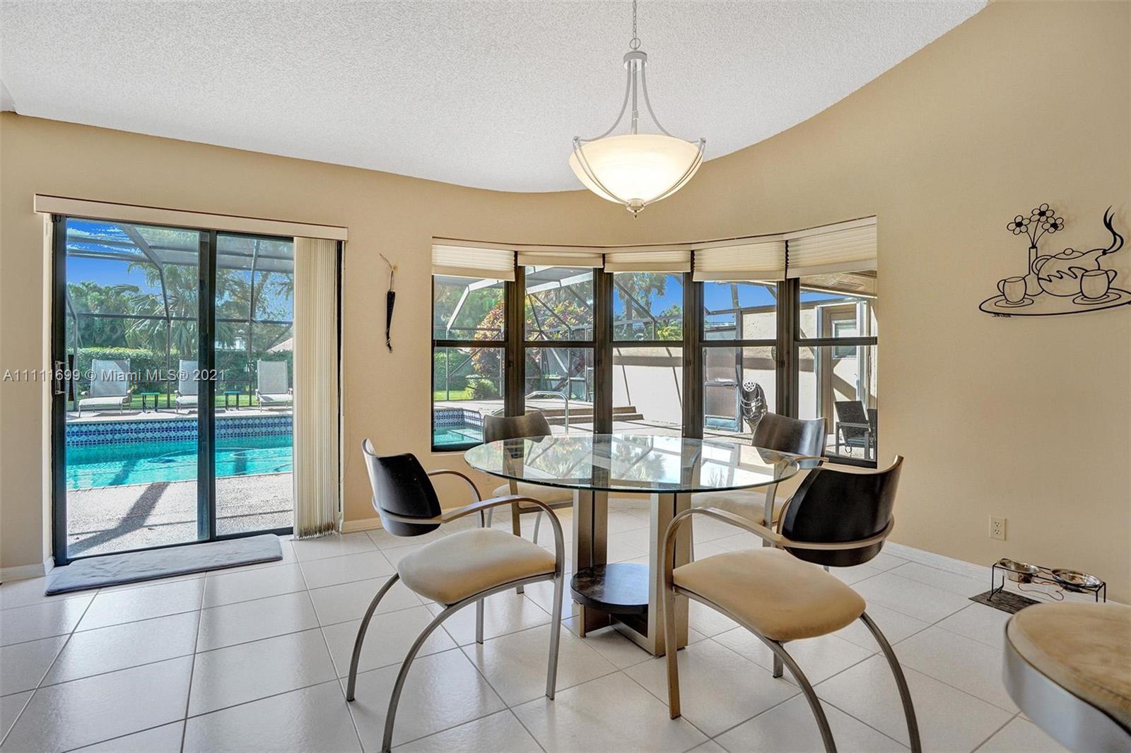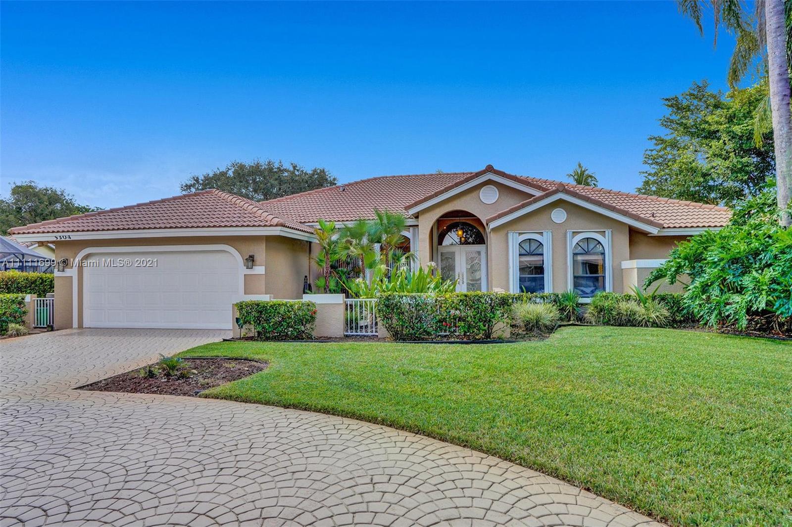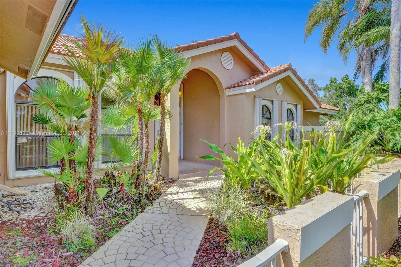 Welcome home to this gem situated on an oversized lot in the desirable Pine Ridge! Featuring an expansive circular stamped concrete driveway, lush yard & landscaping, modern updated kitchen, high-end $12k appliance package, eat-in kitchen & Bar height seating, updated master bath with frameless glass shower & private oasis patio off the shower, new laminate flooring, recessed lighting throughout, home water purification system, Jack & Jill bath, central vacuum & much more! Have peace of mind during hurricane season with full accordion shutters & the convenience of a shutter-enclosed patio for storage during a storm. Enjoy hosting poolside in your spacious backyard with a beautiful large swimming pool, screen enclosure, wet bar, elevated pool deck & brand new pool pump! Do not miss this!