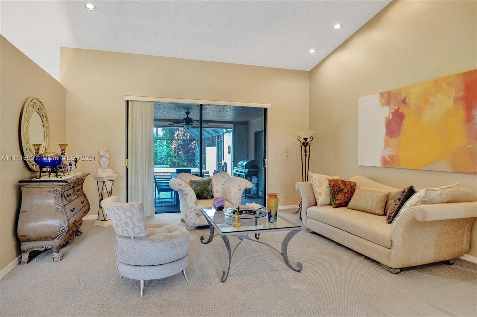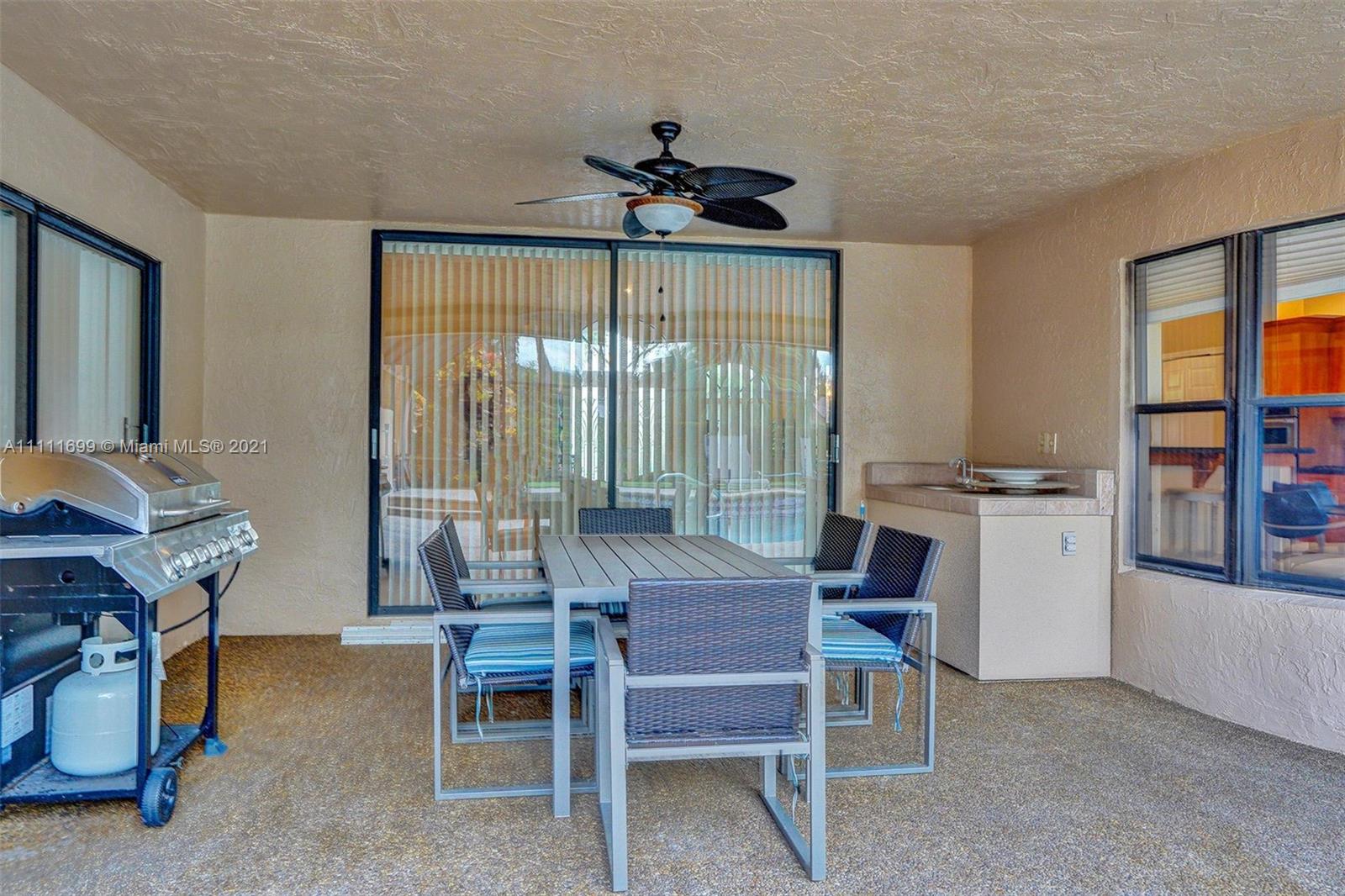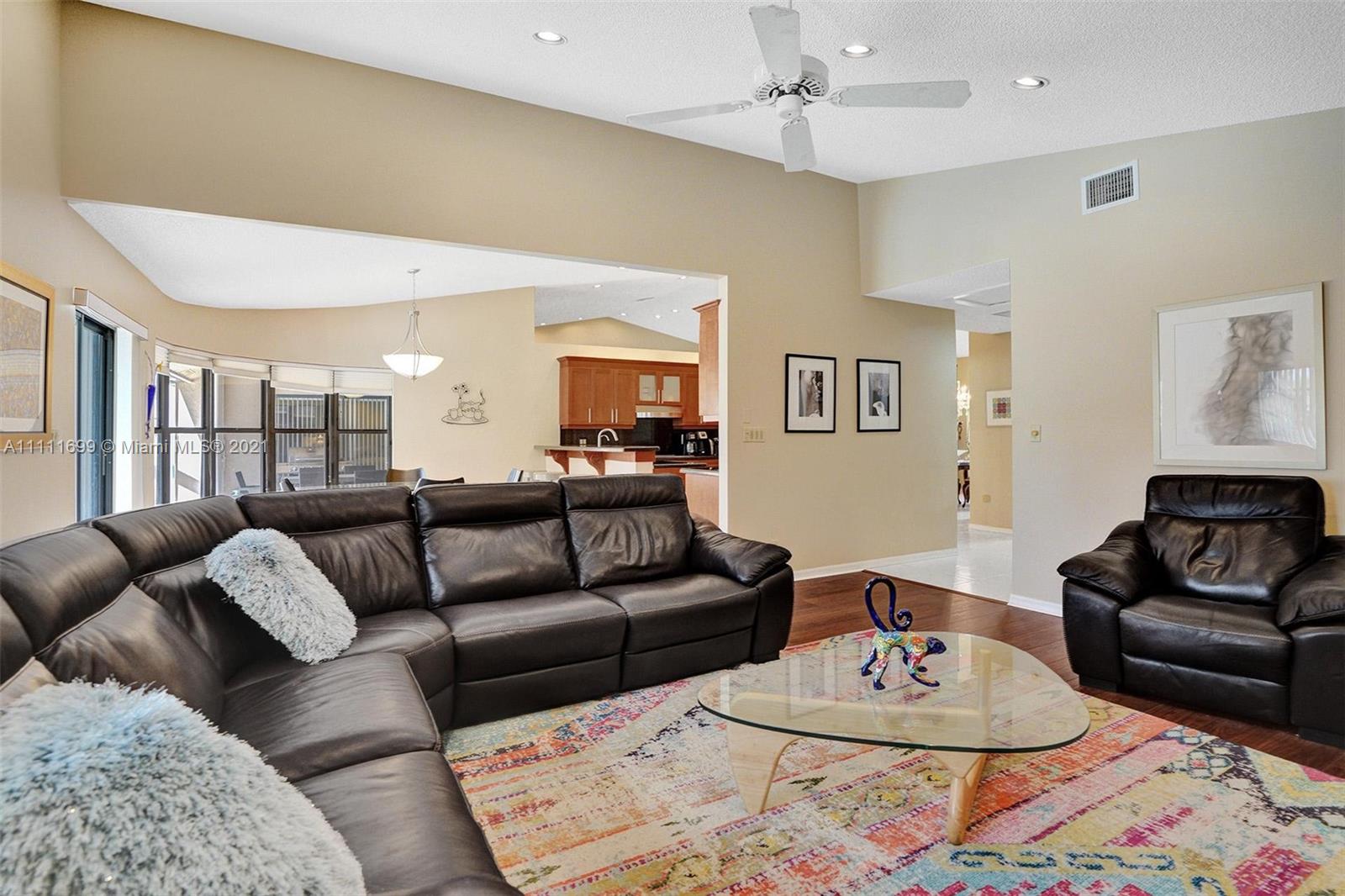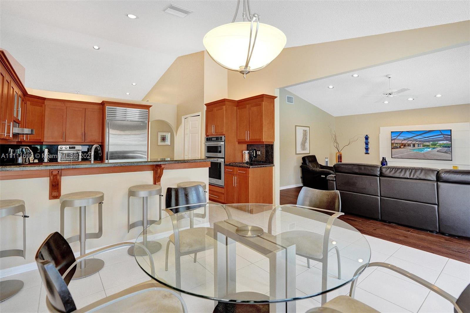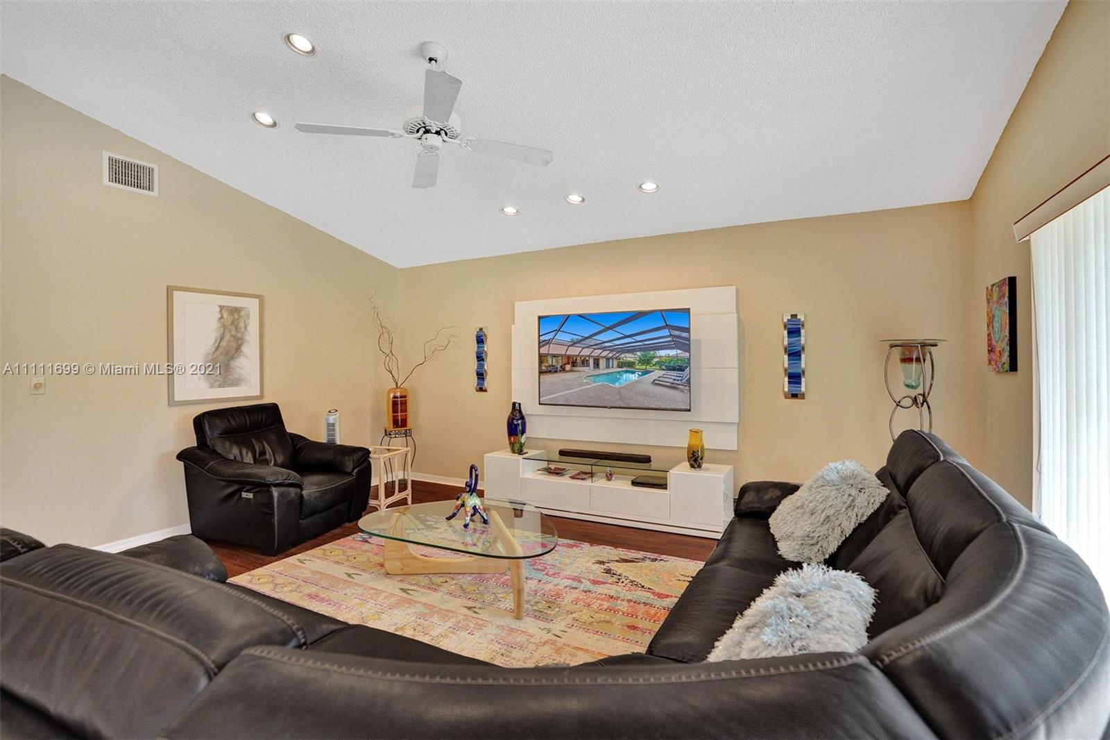 Welcome home to this gem situated on an oversized lot in the desirable Pine Ridge! Featuring an expansive circular stamped concrete driveway, lush yard & landscaping, modern updated kitchen, high-end $12k appliance package, eat-in kitchen & Bar height seating, updated master bath with frameless glass shower & private oasis patio off the shower, new laminate flooring, recessed lighting throughout, home water purification system, Jack & Jill bath, central vacuum & much more! Have peace of mind during hurricane season with full accordion shutters & the convenience of a shutter-enclosed patio for storage during a storm. Enjoy hosting poolside in your spacious backyard with a beautiful large swimming pool, screen enclosure, wet bar, elevated pool deck & brand new pool pump! Do not miss this!