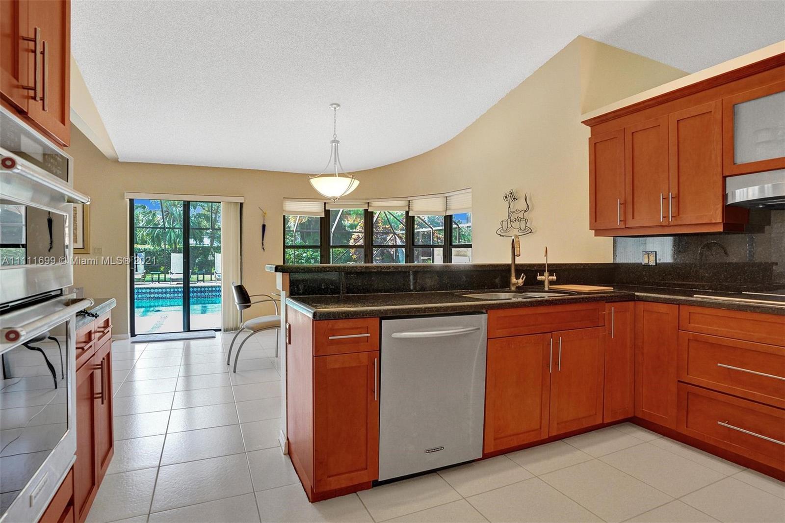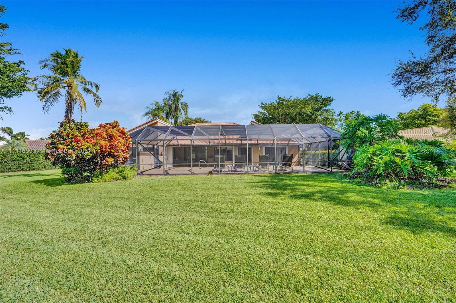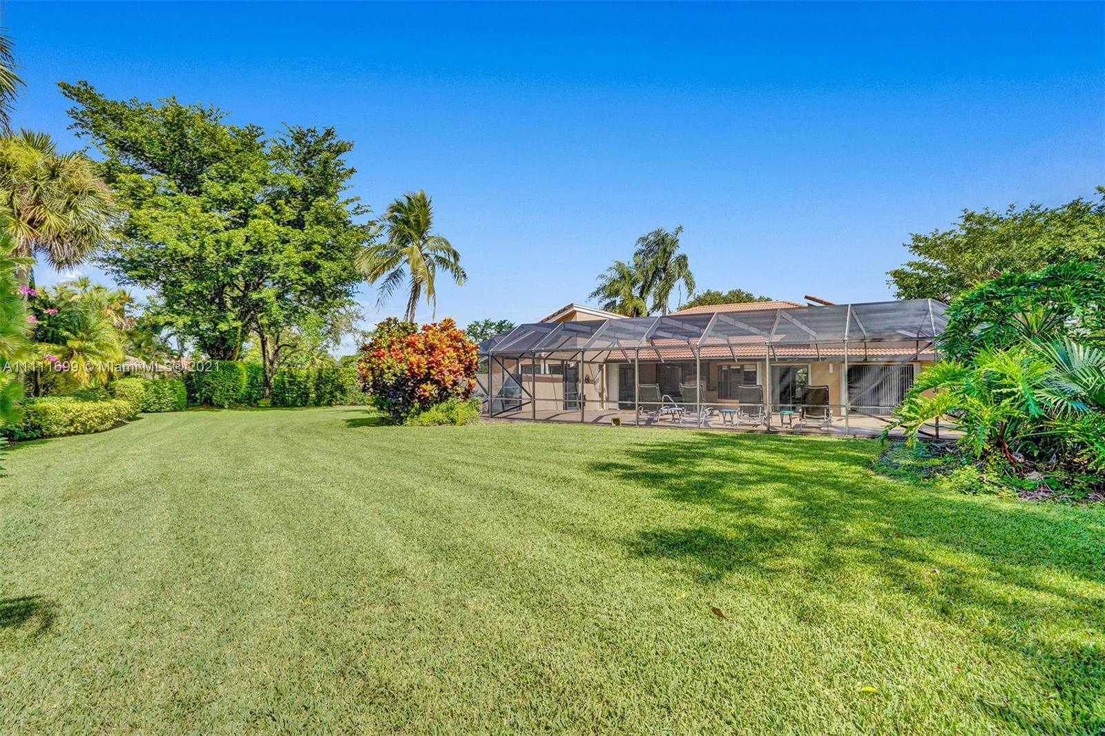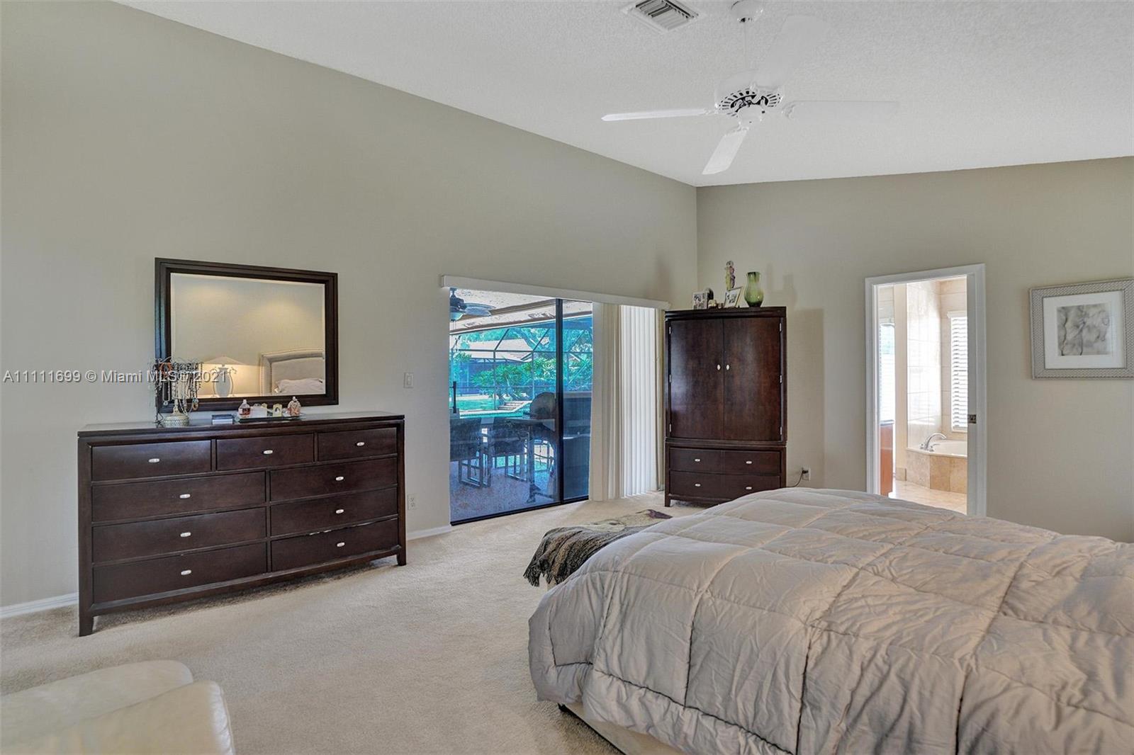 Welcome home to this gem situated on an oversized lot in the desirable Pine Ridge! Featuring an expansive circular stamped concrete driveway, lush yard & landscaping, modern updated kitchen, high-end $12k appliance package, eat-in kitchen & Bar height seating, updated master bath with frameless glass shower & private oasis patio off the shower, new laminate flooring, recessed lighting throughout, home water purification system, Jack & Jill bath, central vacuum & much more! Have peace of mind during hurricane season with full accordion shutters & the convenience of a shutter-enclosed patio for storage during a storm. Enjoy hosting poolside in your spacious backyard with a beautiful large swimming pool, screen enclosure, wet bar, elevated pool deck & brand new pool pump! Do not miss this!