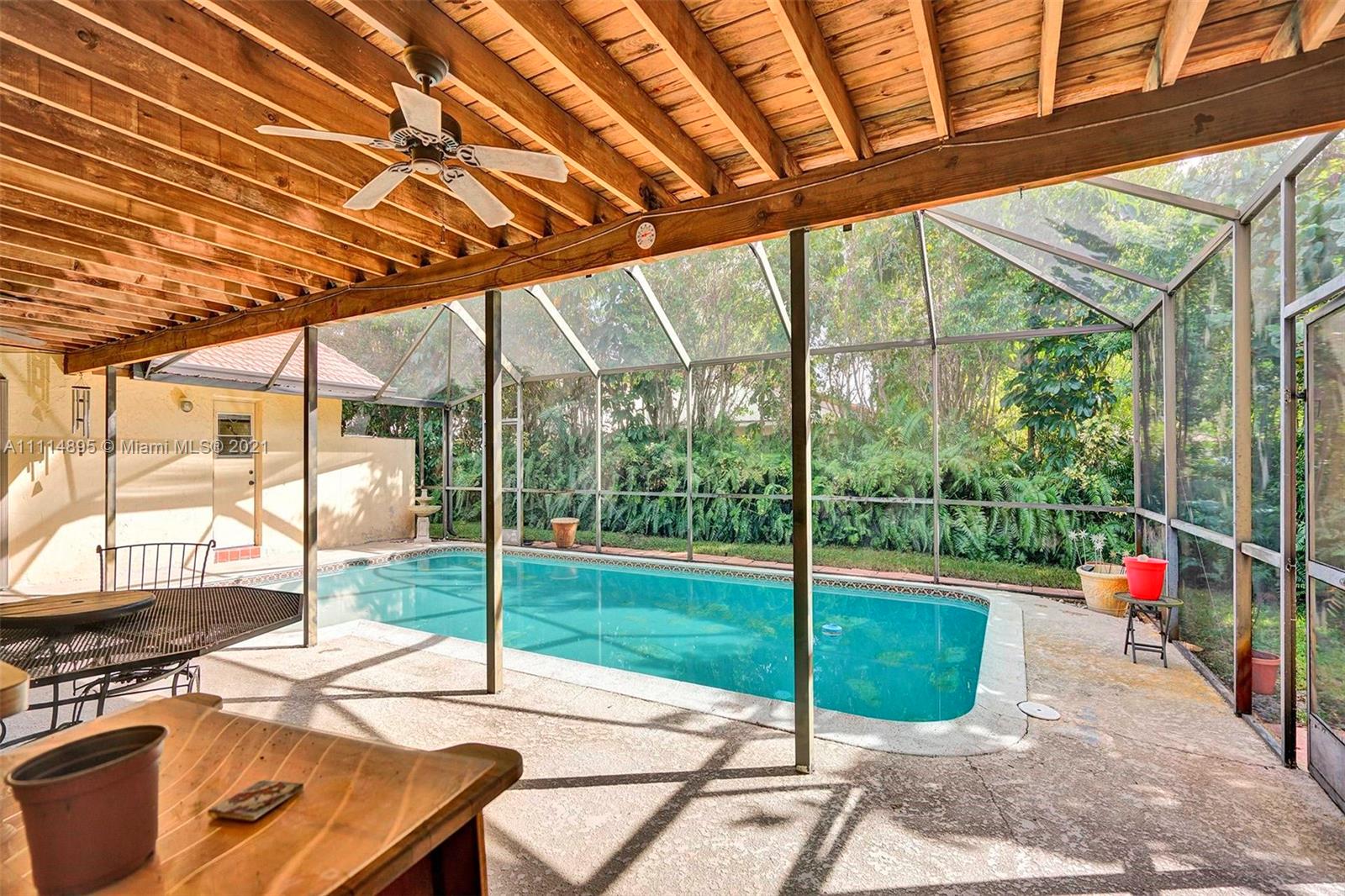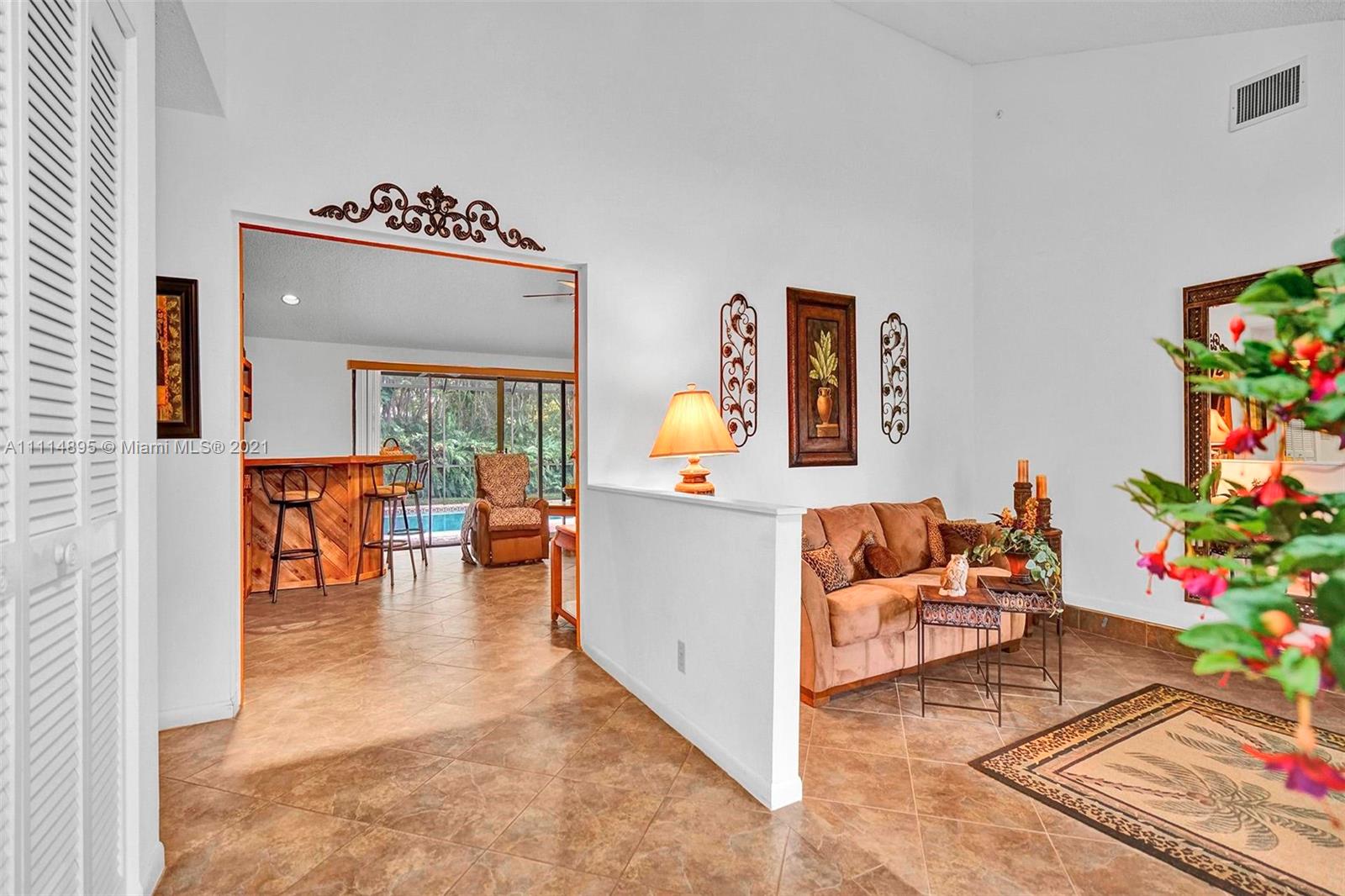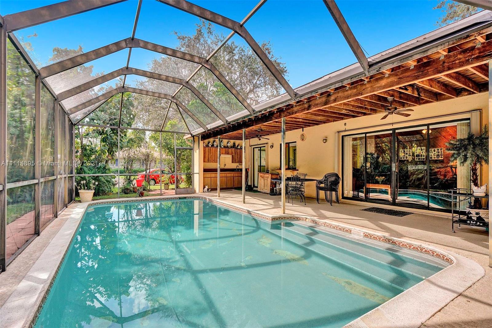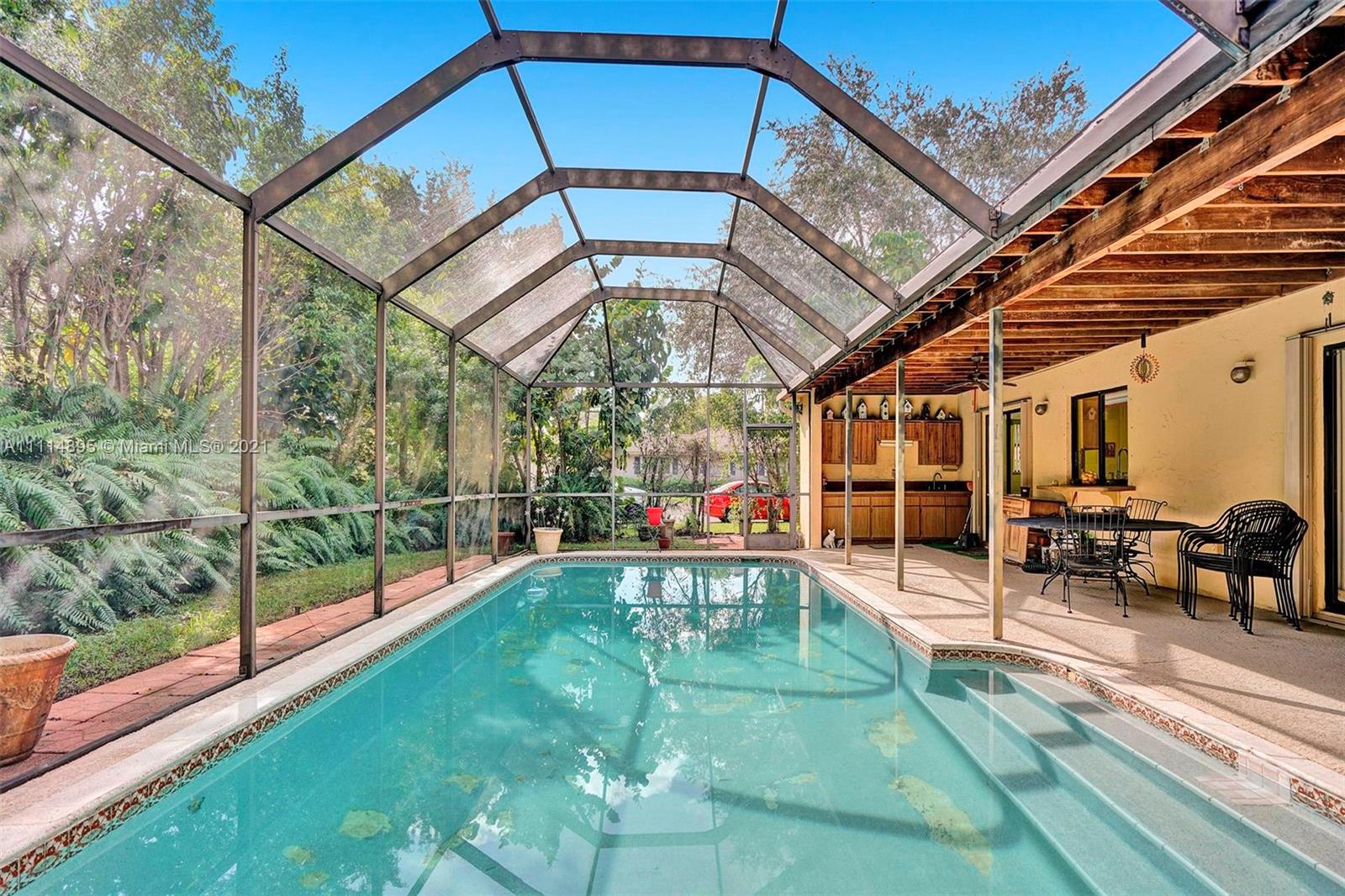 MUST SEE. Beautiful 4 Bedroom, 2 Bath Pool Home on a prime oversized corner lot in the sought-after Subdivision of Maplewood in Coral Springs with no HOA. This home is extremely light, bright, and airy and features volume ceilings, an eat-in kitchen with granite countertops, a sunken living room, a family room with bar and custom wood planking on the walls, a formal dining room or bonus room, making this home perfect for entertaining or family gatherings. The kitchen, family room, and Master bedroom all open via sliding glass doors to the large covered patio and screened-in pool area. Close to everything, including nightlife, restaurants, shopping, and walking distance to Dede Gilmore and Ralph Diaz Memorial Parks. Schedule your showing today before this home is gone!