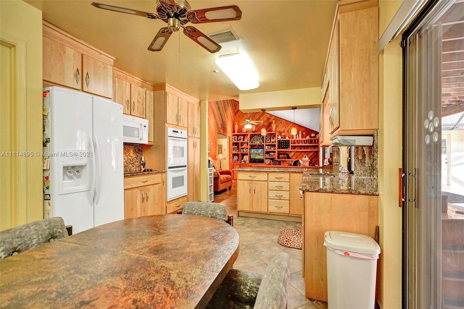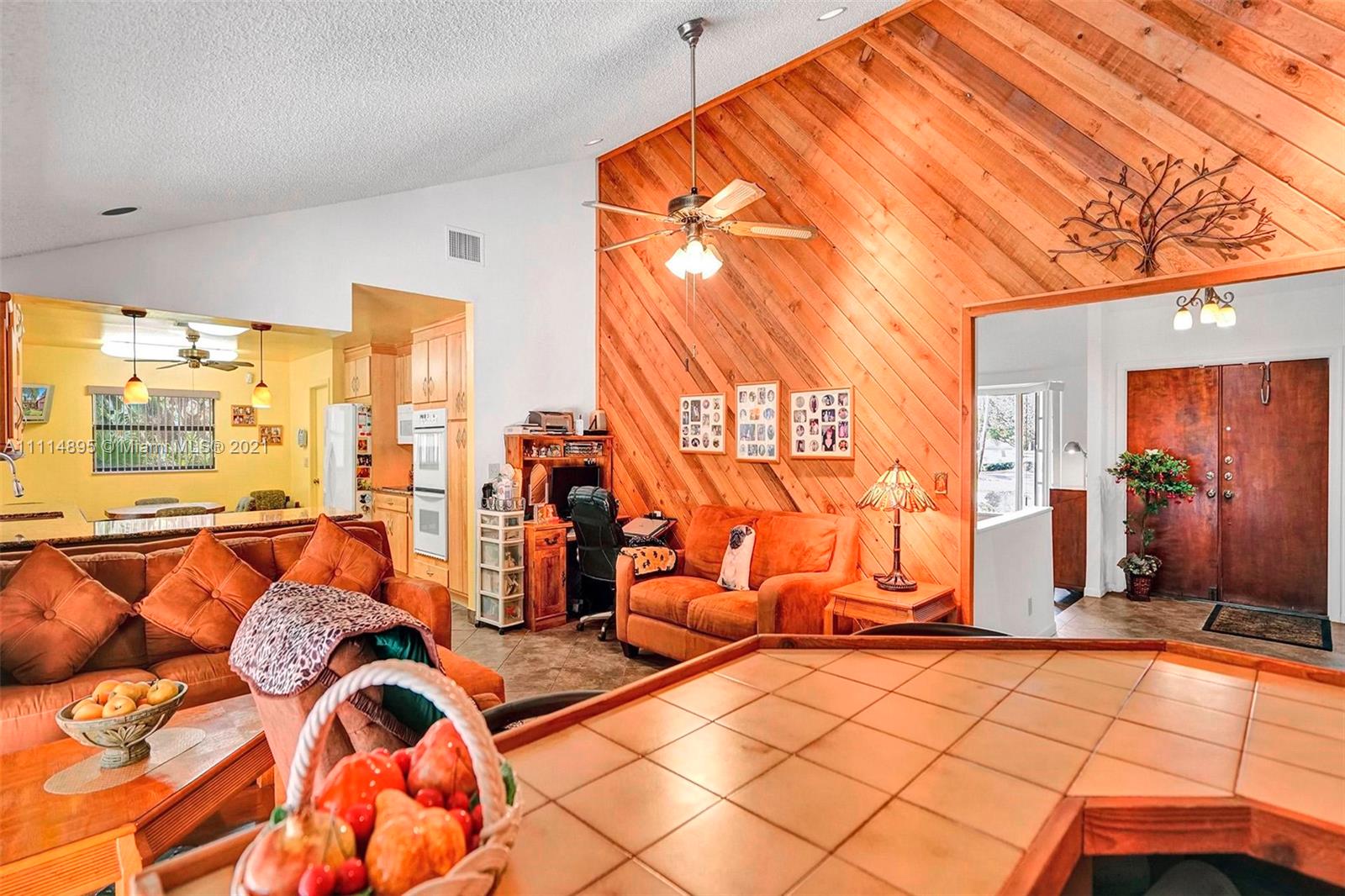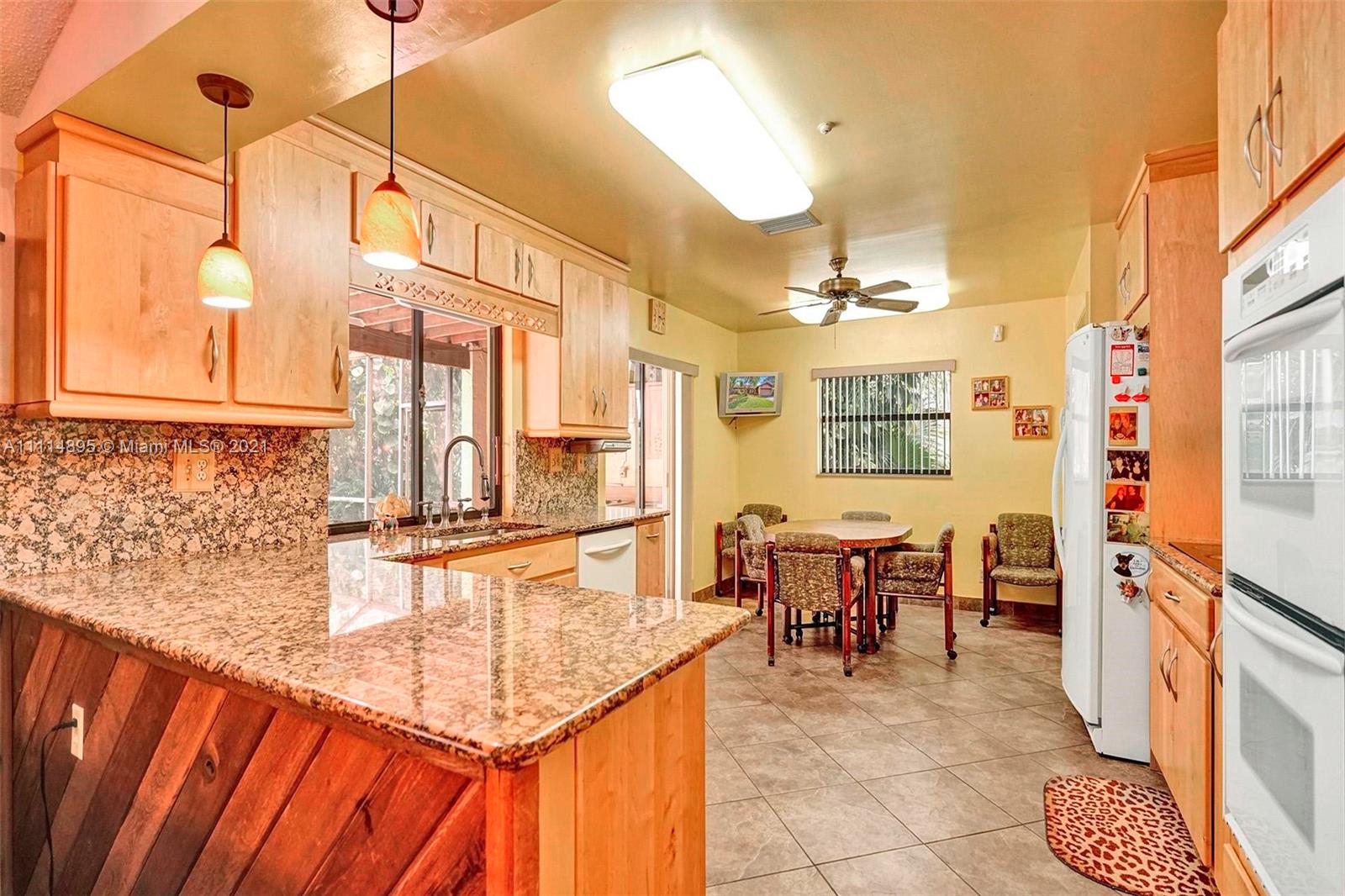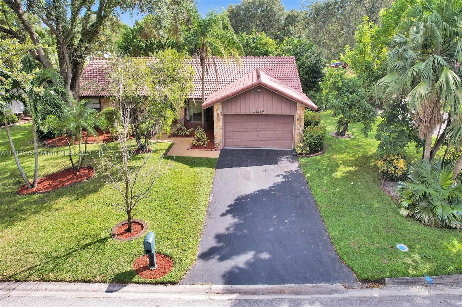MUST SEE. Beautiful 4 Bedroom, 2 Bath Pool Home on a prime oversized corner lot in the sought-after Subdivision of Maplewood in Coral Springs with no HOA. This home is extremely light, bright, and airy and features volume ceilings, an eat-in kitchen with granite countertops, a sunken living room, a family room with bar and custom wood planking on the walls, a formal dining room or bonus room, making this home perfect for entertaining or family gatherings. The kitchen, family room, and Master bedroom all open via sliding glass doors to the large covered patio and screened-in pool area. Close to everything, including nightlife, restaurants, shopping, and walking distance to Dede Gilmore and Ralph Diaz Memorial Parks. Schedule your showing today before this home is gone!
