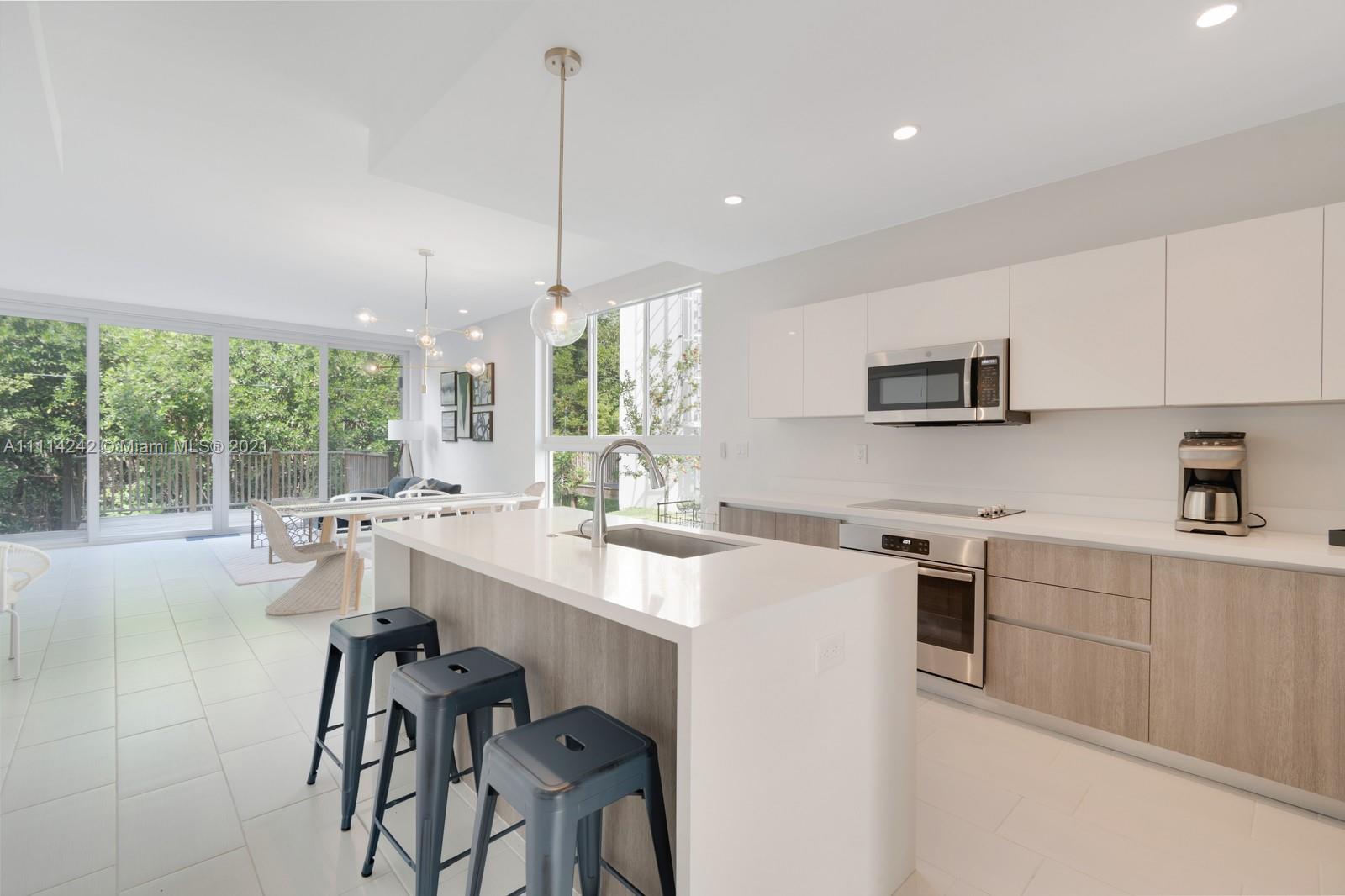 Rarely available corner 4BR/3BA townhome at Parcview Villas. Spacious open floorplan with floor to ceiling windows overlooking Oleta State Park. The ideal Chef’s kitchen with ample storage & cooking space, Custom Italian Cabinets, Upgraded GE SS Appliance pkg, oversized quartz island with seating. Separate dining & living space just off private deck. Two masters suites, one upstairs and one downstairs. The upstairs master complete with Juliet balcony & tranquil views of the preserve. Expansive private bath with dual vanities & shower for 2. Separate his & hers walk-in closets with laundry conveniently located off the hallway. Down the hall are 2 more bedrooms with lots of privacy. HOA includes insurance, water & trash. Driveway parking and guest parking.