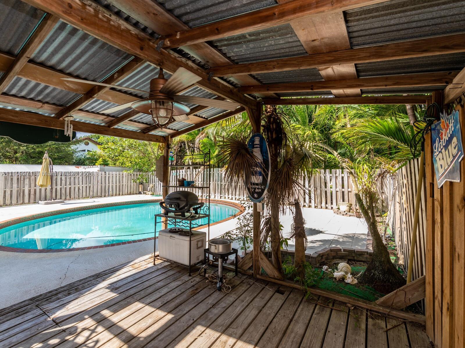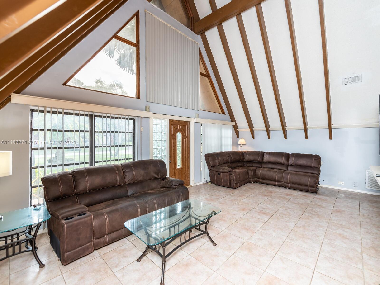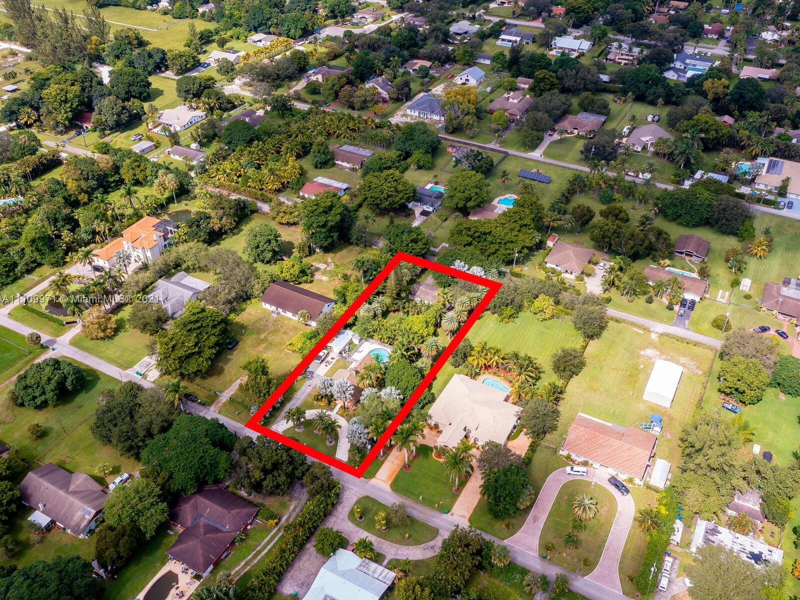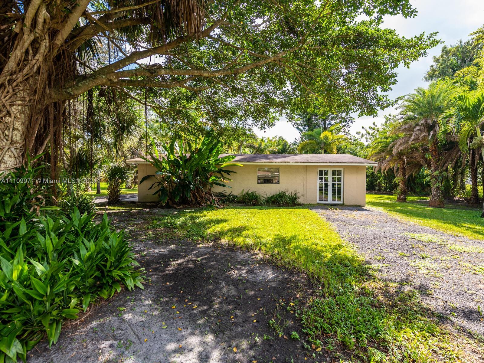 Unique A Frame 3 bedroom 2 bath pool home with guest house on just shy of an acre lot with front and rear access in a great Davie neighborhood. This home has loads of potential with great architectural angles, open kitchen, wood burning fireplace, two bedrooms downstairs that lead to the pool area, a spiral staircase to the master bedroom upstairs. Guest house in the rear of the property has a full kitchen, living space, bedroom / bath and office with private access from 23rd court. Property includes a shed with concrete floor. This property has many mature trees and plenty of room for ALL the toys!! (main house- roof 7-9 yrs., A/C 3 yrs., water heater 5 yrs. / Guest house- roof 15+ yrs., A/C 4-5 yrs., water heater 2yrs.)