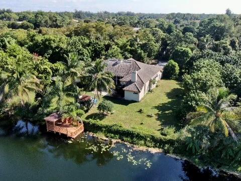 With 5 acres on the water, this huge, lush Private Estate (No HOA) is PRICED TO SELL!!! This ranch style, bright, open floor plan estate boasts high ceilings, CBS construction, magnificent water views, many fruit trees, private dock and more! Imagine waking up and sipping coffee while enjoying the water view from your patio or enjoying the evening sunset after a long day on your private dock overlooking the water. This Estate is nestled in a quiet neighborhood, near Okeeheelee Nature Center, Golf Courses, Turnpike, Shopping, Restaurants and more and features 4865 sq ft of finished area and 3640 sq ft under air- conditioning. With some TLC/renovations this Estate will be even more magnificent!!! Priced accordingly, this gem could be yours!! Don't wait!