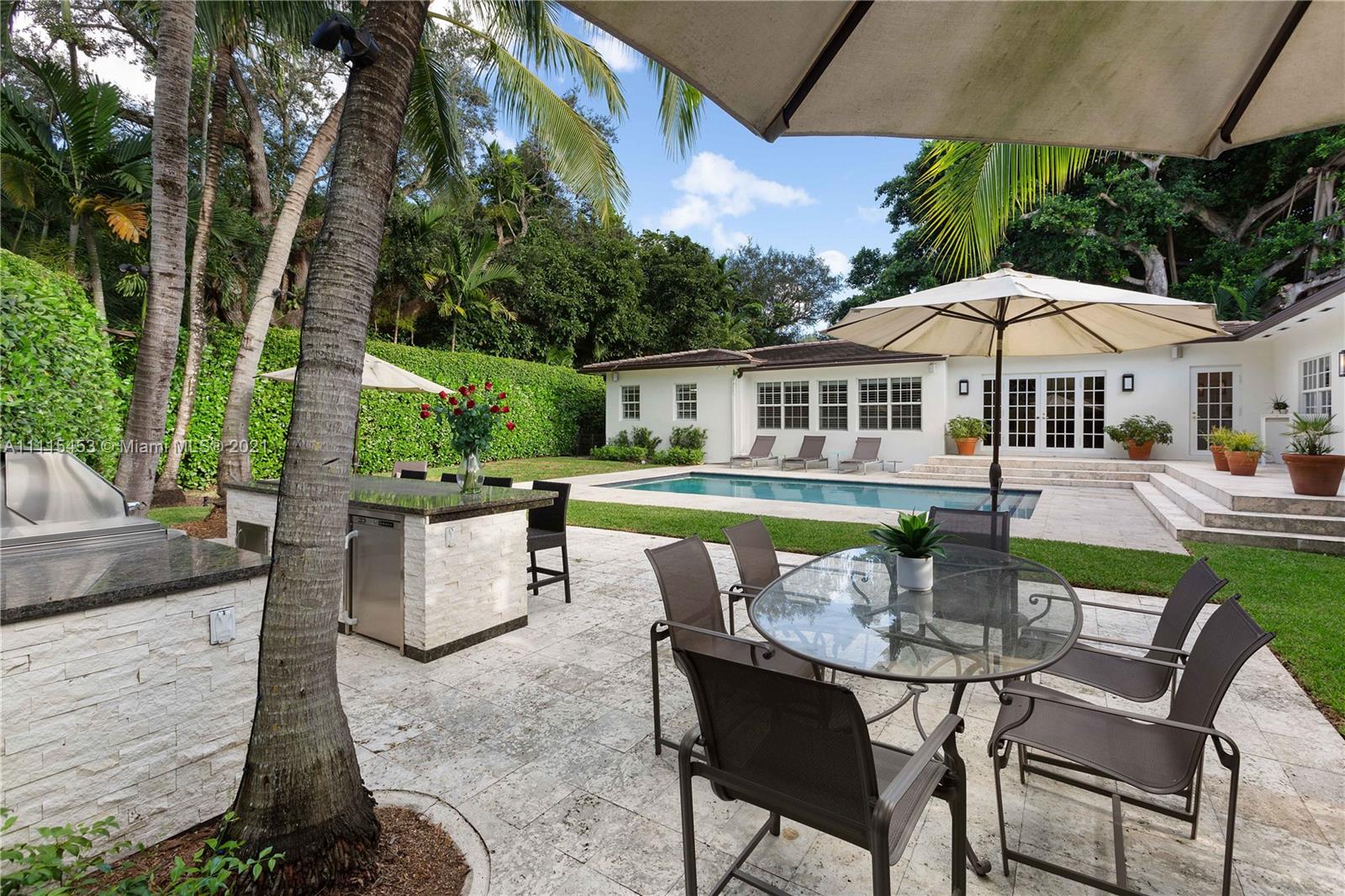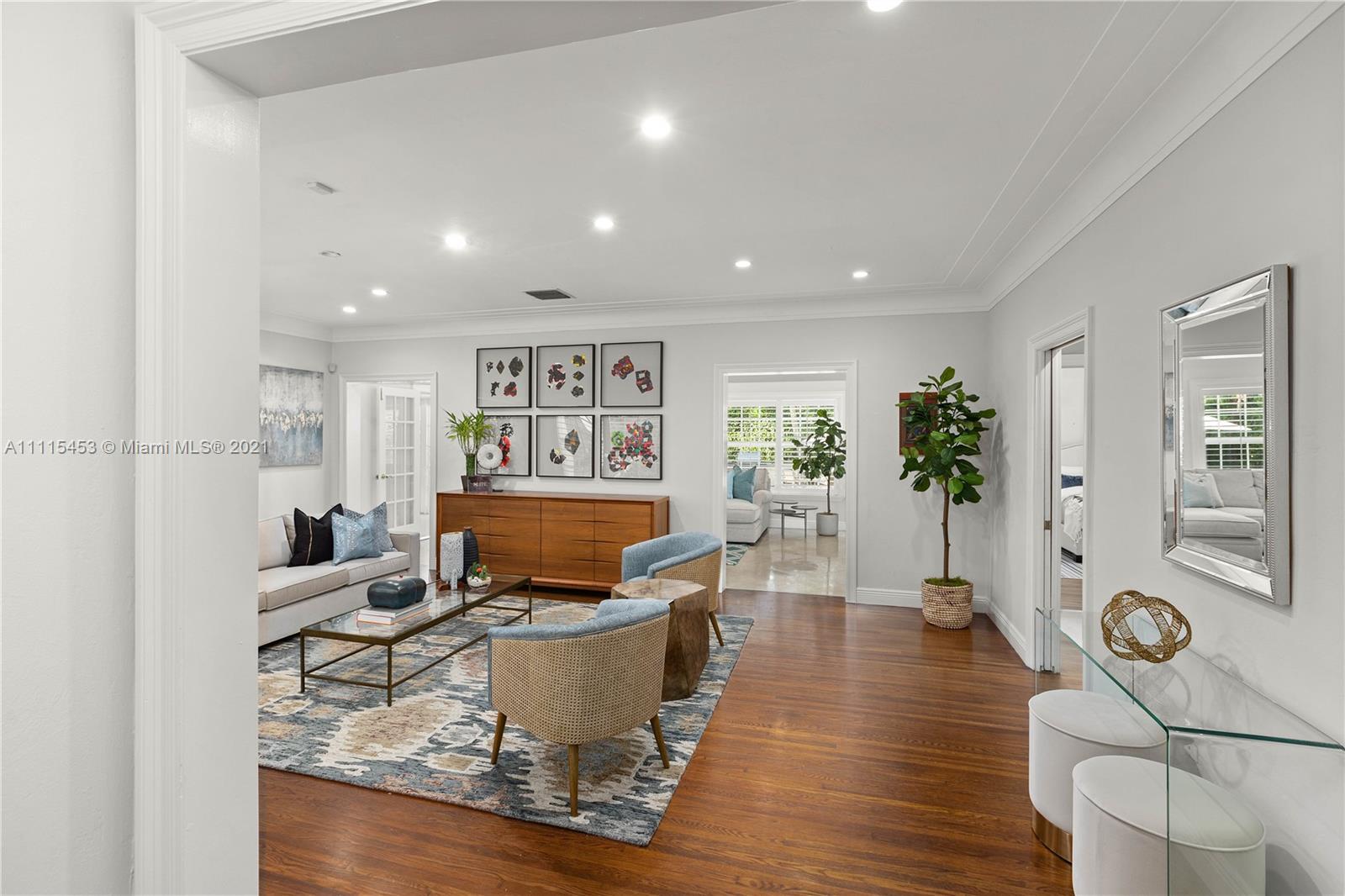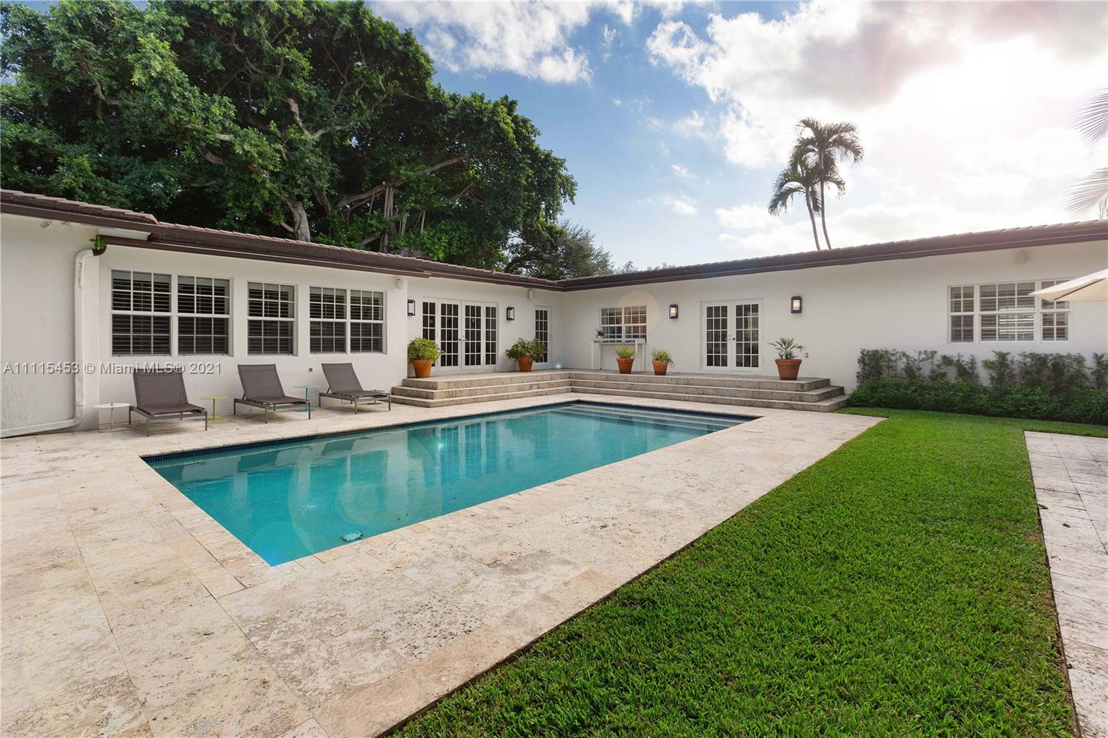 Spectacular Family home in Coral Gables Golden Triangle. Elegantly updated 4-bed 4-bath Split plan home with a large open kitchen w/french doors leading to ultra private large backyard, sprawling master suite with his and hers designer closets. Wood and marble floors, plantation shutters and impact windows and doors. Turn key with an amazing sparking pool w/grand patio area, complete with generous summer kitchen that’s perfect for entertaining. 12200 sqft lot, 2-car garage and Chicago brick circular driveway. This is the last home you’ll ever want or need!
