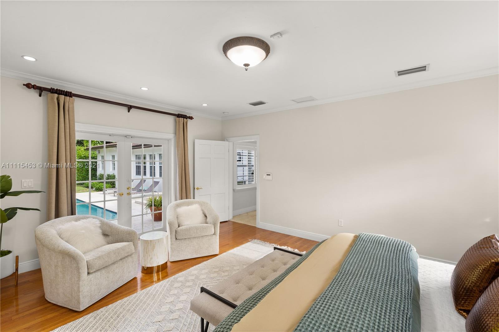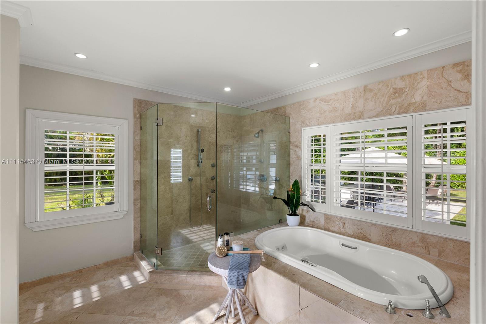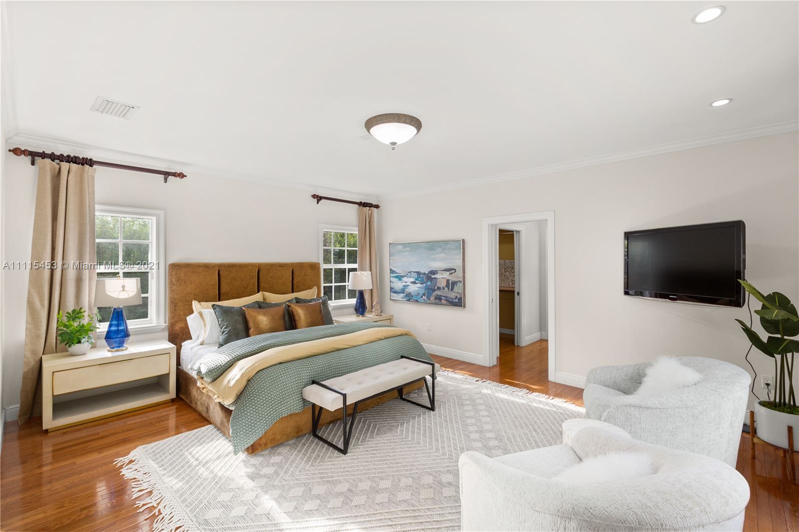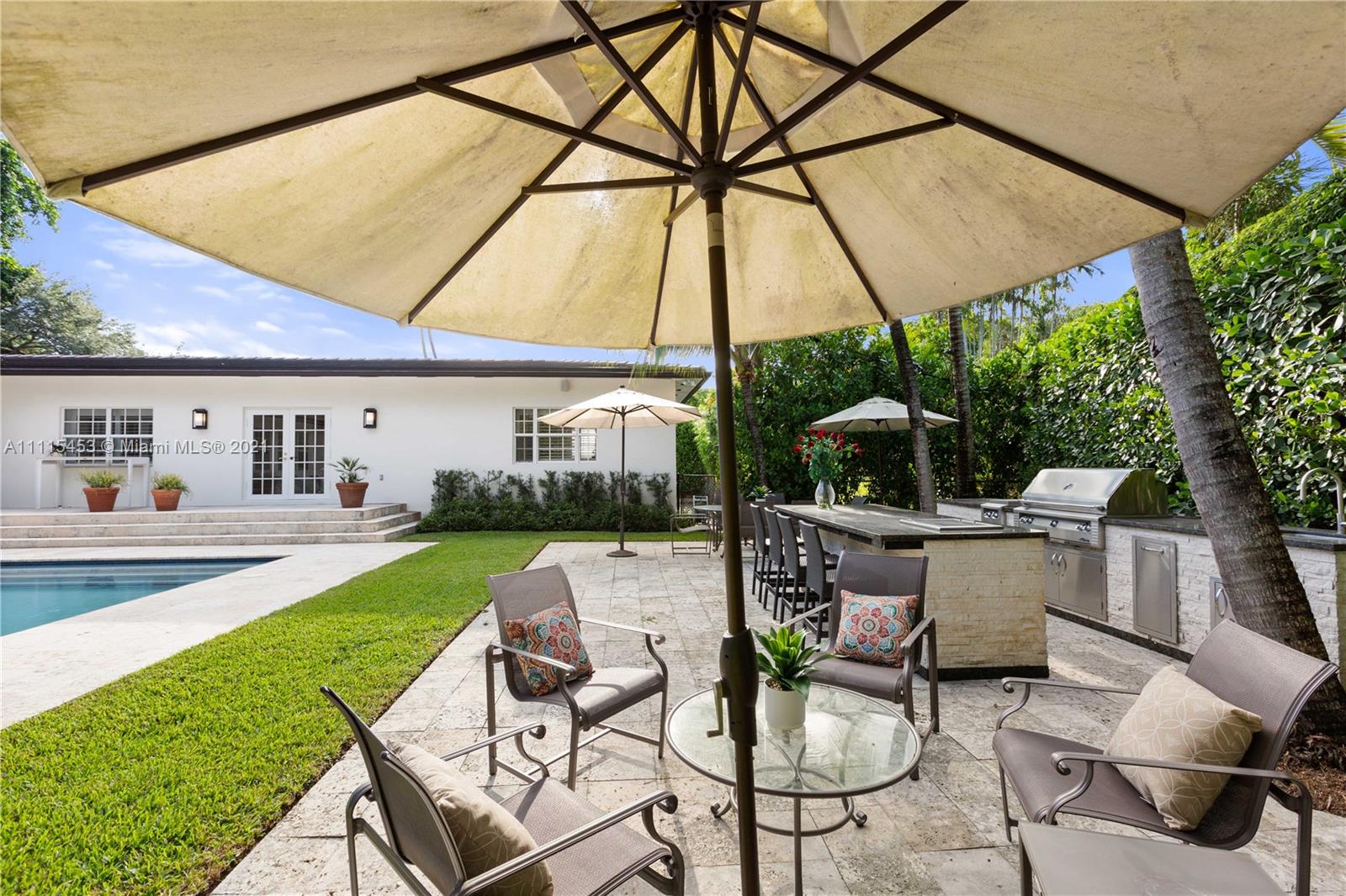 Spectacular Family home in Coral Gables Golden Triangle. Elegantly updated 4-bed 4-bath Split plan home with a large open kitchen w/french doors leading to ultra private large backyard, sprawling master suite with his and hers designer closets. Wood and marble floors, plantation shutters and impact windows and doors. Turn key with an amazing sparking pool w/grand patio area, complete with generous summer kitchen that’s perfect for entertaining. 12200 sqft lot, 2-car garage and Chicago brick circular driveway. This is the last home you’ll ever want or need!
