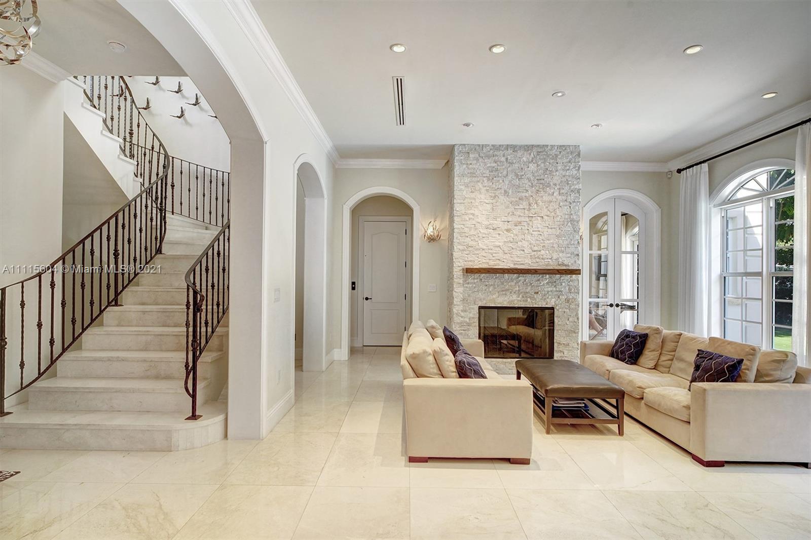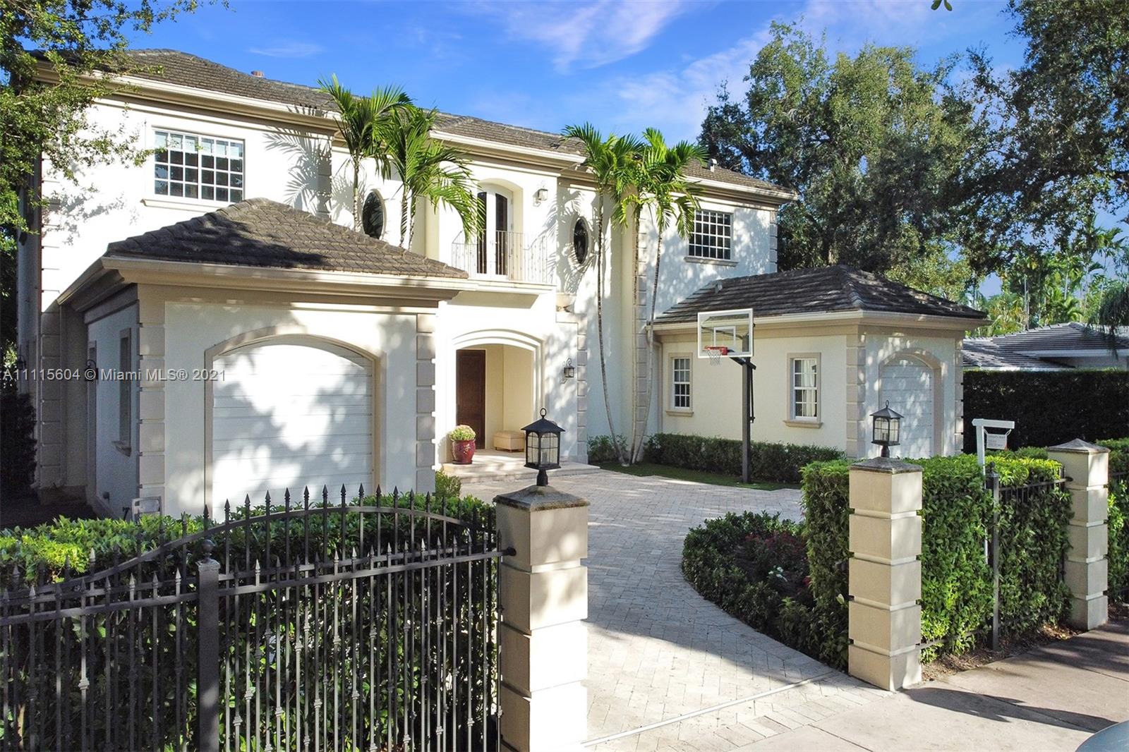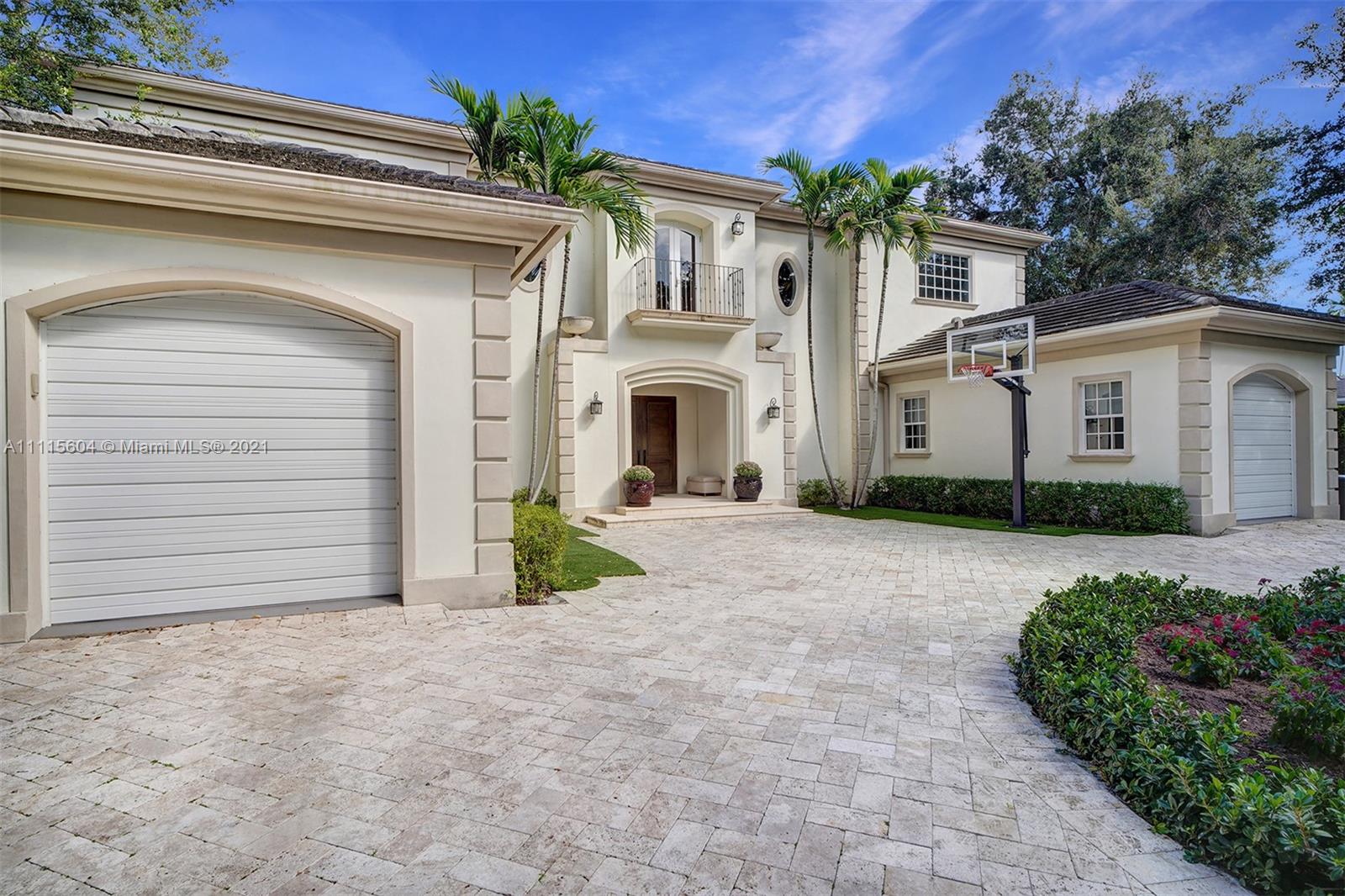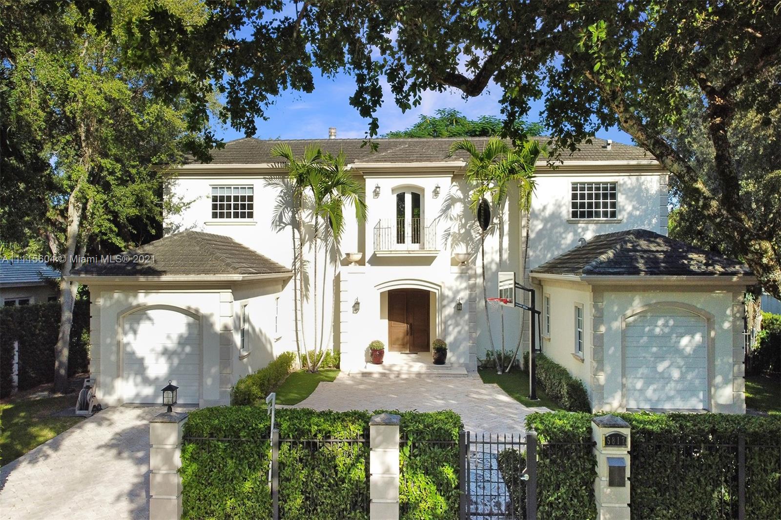 Elegant two-story gated estate located on prestigious Riviera Drive. This breathtaking French Country home was built in 2013 and is in like new condition. It offers 5 bedrooms with 5 1/2 baths on a 12,000 sf lot. Turkish marble floors, large impact doors/windows, and tall ceilings throughout the home. The open floorplan living and dining room features a wood burning fireplace and overlooks the pool. Gorgeous views out of every door and window. The custom fine wood kitchen, with Sub Zero/Wolf appliances and quartz countertops, flows into the family room. Upstairs main suite boasts a spa bath, huge walk-in closet, and private terrace. Downstairs laundry, elevator, and 2 separate attached garages. The covered outdoor kitchen, open terraces, and pool area are perfect for entertaining.