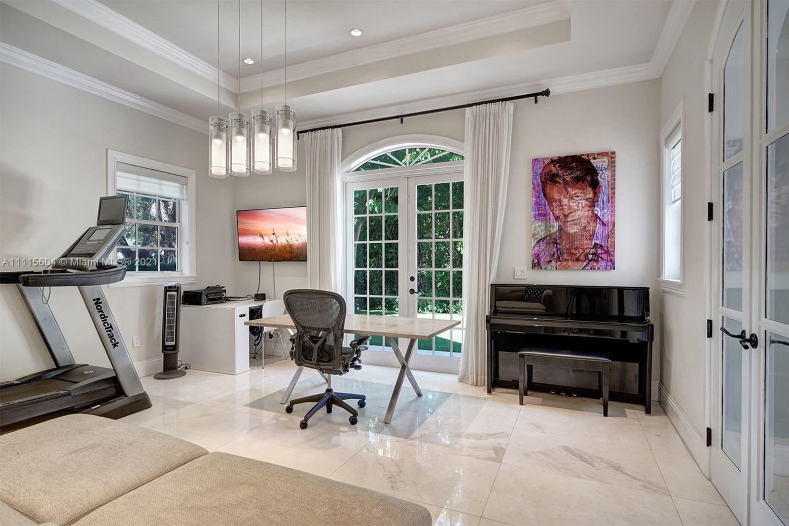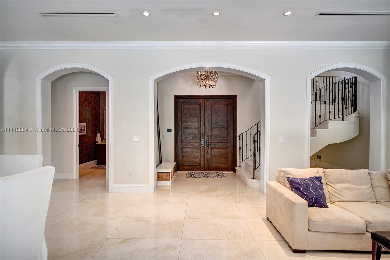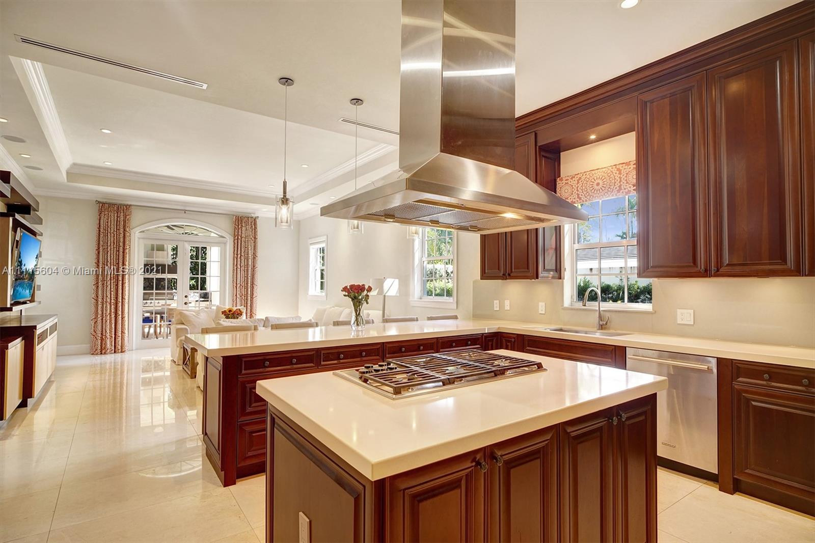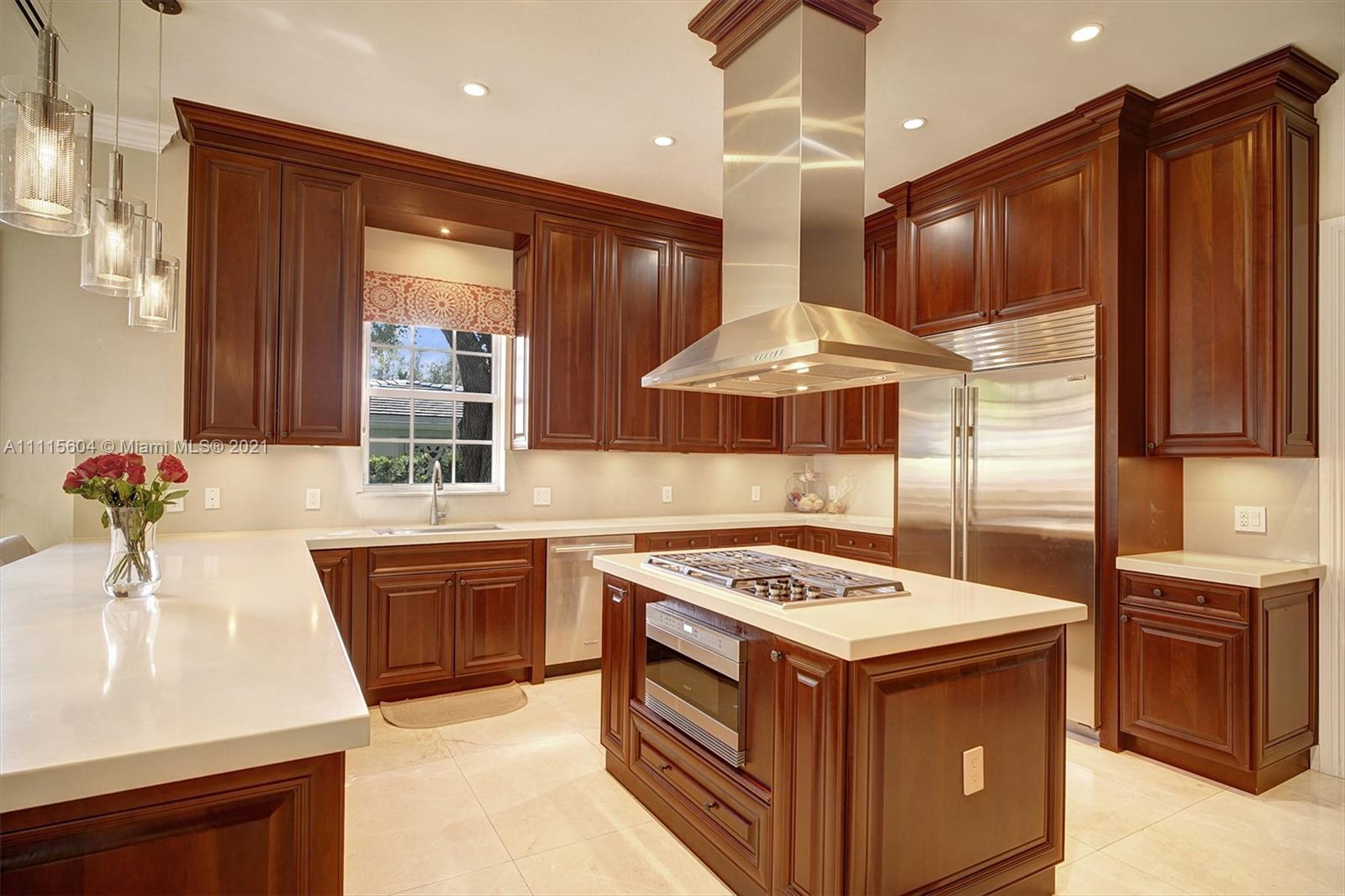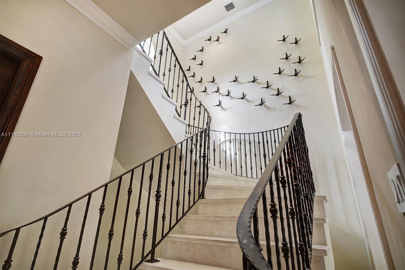 Elegant two-story gated estate located on prestigious Riviera Drive. This breathtaking French Country home was built in 2013 and is in like new condition. It offers 5 bedrooms with 5 1/2 baths on a 12,000 sf lot. Turkish marble floors, large impact doors/windows, and tall ceilings throughout the home. The open floorplan living and dining room features a wood burning fireplace and overlooks the pool. Gorgeous views out of every door and window. The custom fine wood kitchen, with Sub Zero/Wolf appliances and quartz countertops, flows into the family room. Upstairs main suite boasts a spa bath, huge walk-in closet, and private terrace. Downstairs laundry, elevator, and 2 separate attached garages. The covered outdoor kitchen, open terraces, and pool area are perfect for entertaining.