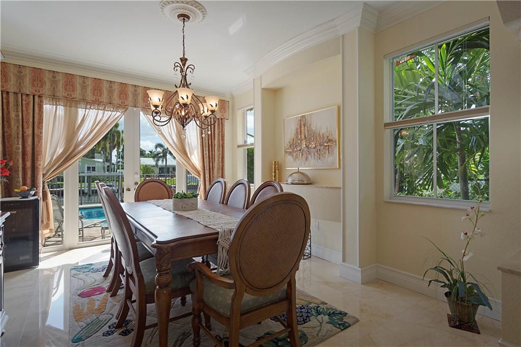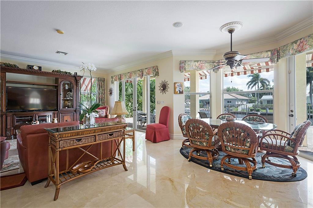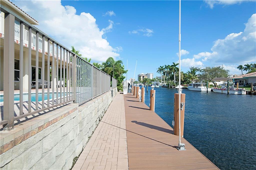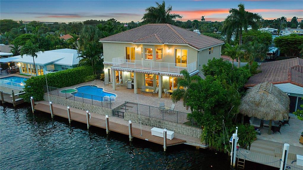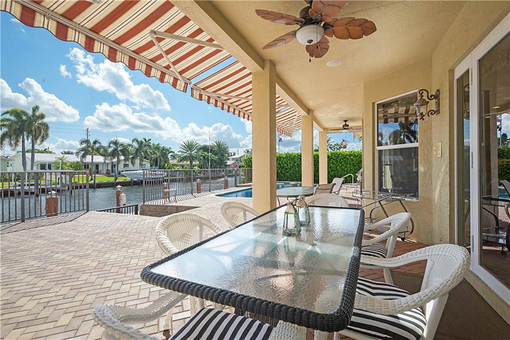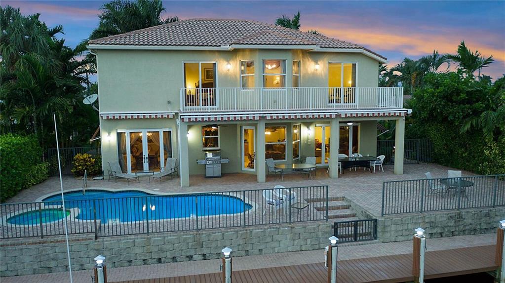 This delightful 2 story, 5 bed, 4 bath pool home was custom built in 2006, and is just off the Intracoastal Waterway in Pompano Beach. The home features high ceilings on the 1st and 2nd floors, elevator, as well as full concrete construction, full home generator with automatic transfer switch. The very large back patio has beautiful South facing wide water views. Perfect for entertaining - with 5 retractile awnings for additional shade, tranquil pool with new heater, Aqua Link control system and treks dock with LED lighting & 50-amp dock power. The central kitchen offers ample room for all kinds of entertaining and plenty of additional storage in the large pantry. Re-circulating hot water, central vac and home intercom with music are a just a few other features that make for easy living!