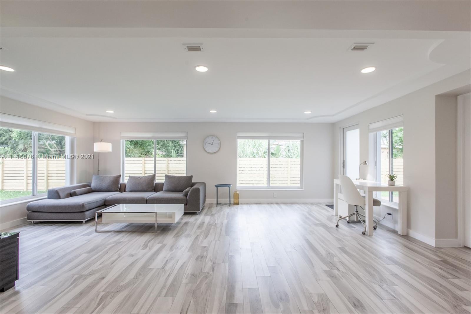 *Beautiful! Modern! Completely remodeled with wide open floor plan and bathed in natural light! All windows and doors are impact glass! True FOUR bedroom and THREE bathrooms! Split bedroom plan...and the 4th bedroom has it's own separate entrance --great as an IN-LAWS quarters and HOME OFFICE and HOME SCHOOL and MORE! Perfect for entertaining with two separate yards, patios, deck and privacy. Best kept secret is the LOW TAXES. One of a kind - and no expense spared -- updated plumbing, electric, custom lighting, HUGE OPEN kitchen with lots of cabinets and built in stainless steel appliances. Whole house water filtration system. Circular drive offers plenty of parking...ROOM FOR A BOAT behind tall fencing. No Appraisal Contingency - Buyer must prove funds for appraisal shortage..