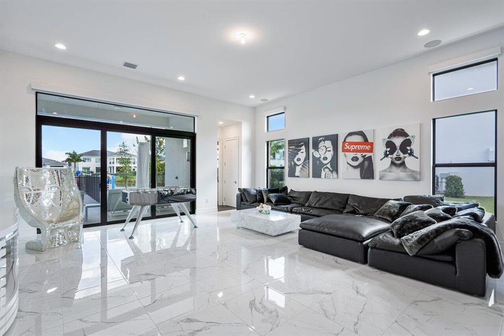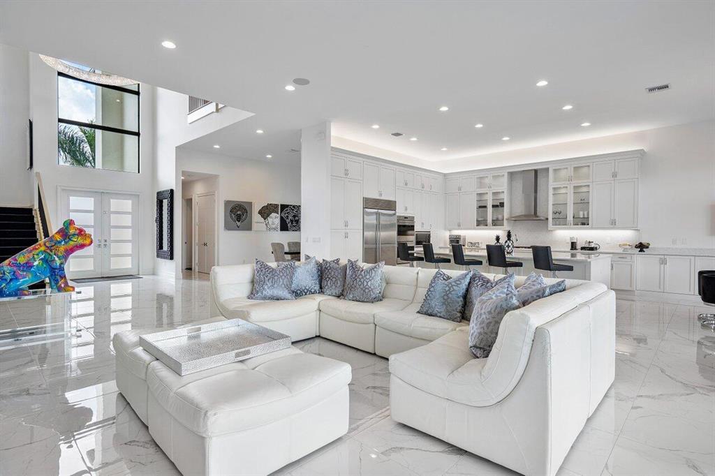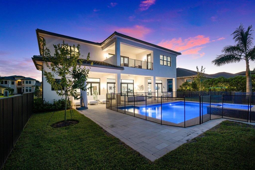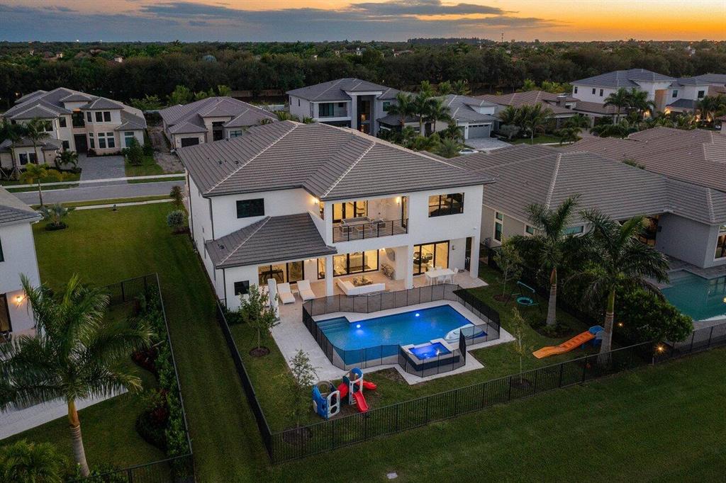 New transitional contemporary home in the community of Boca Bridges built in 2020. This gorgeous 5 bedroom home is situated on a generous lot with lake views and features a designer chef's kitchen with quartz counter tops, subzero fridge and double wolf ovens, porcelain and hardwood flooring throughout, wet bar, large pool with spa,upstairs loft, and sizable clubroom for entertaining. Other features include two 2 car garages, interior and exterior security cameras, motorized shades throughout the home, and so much more.