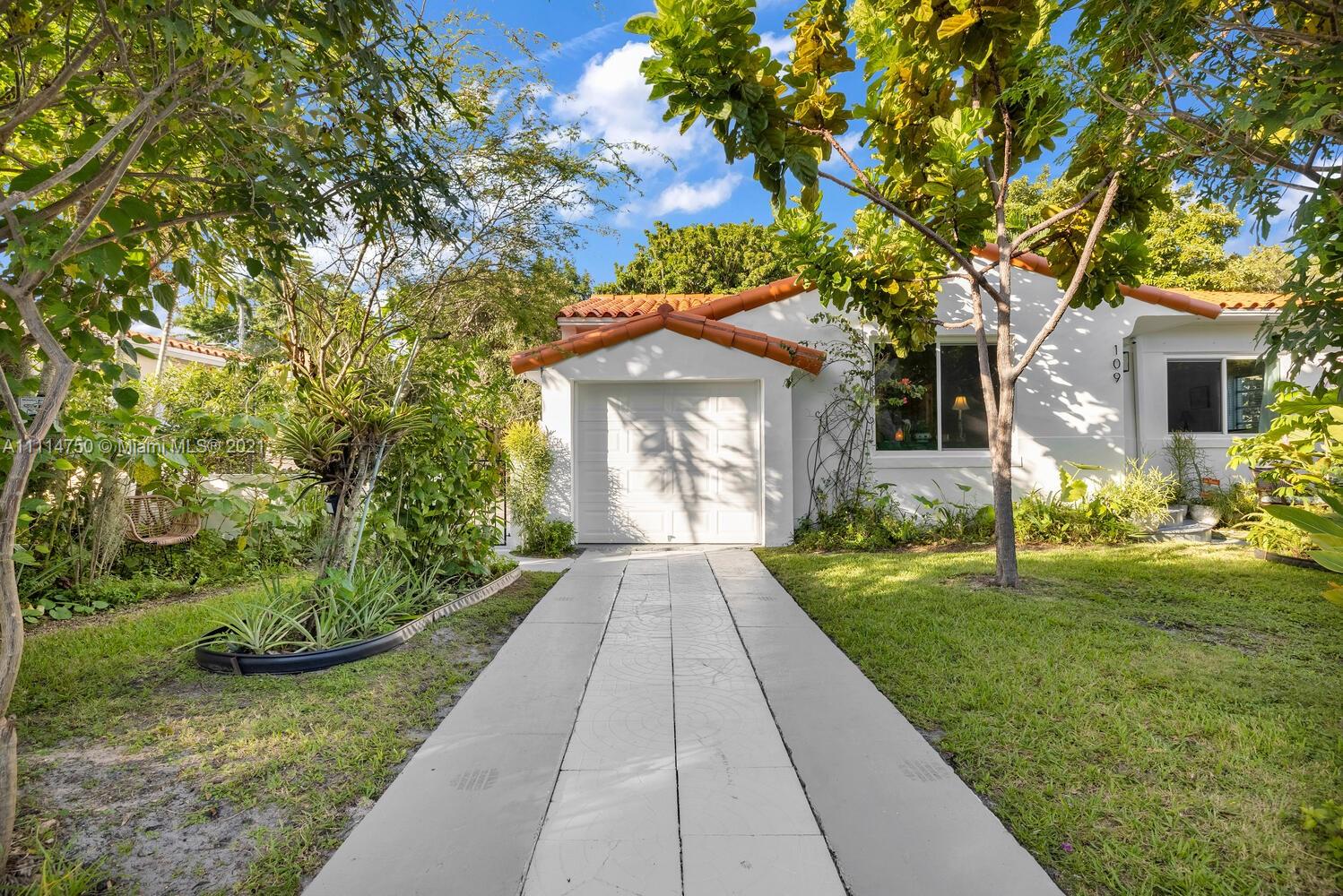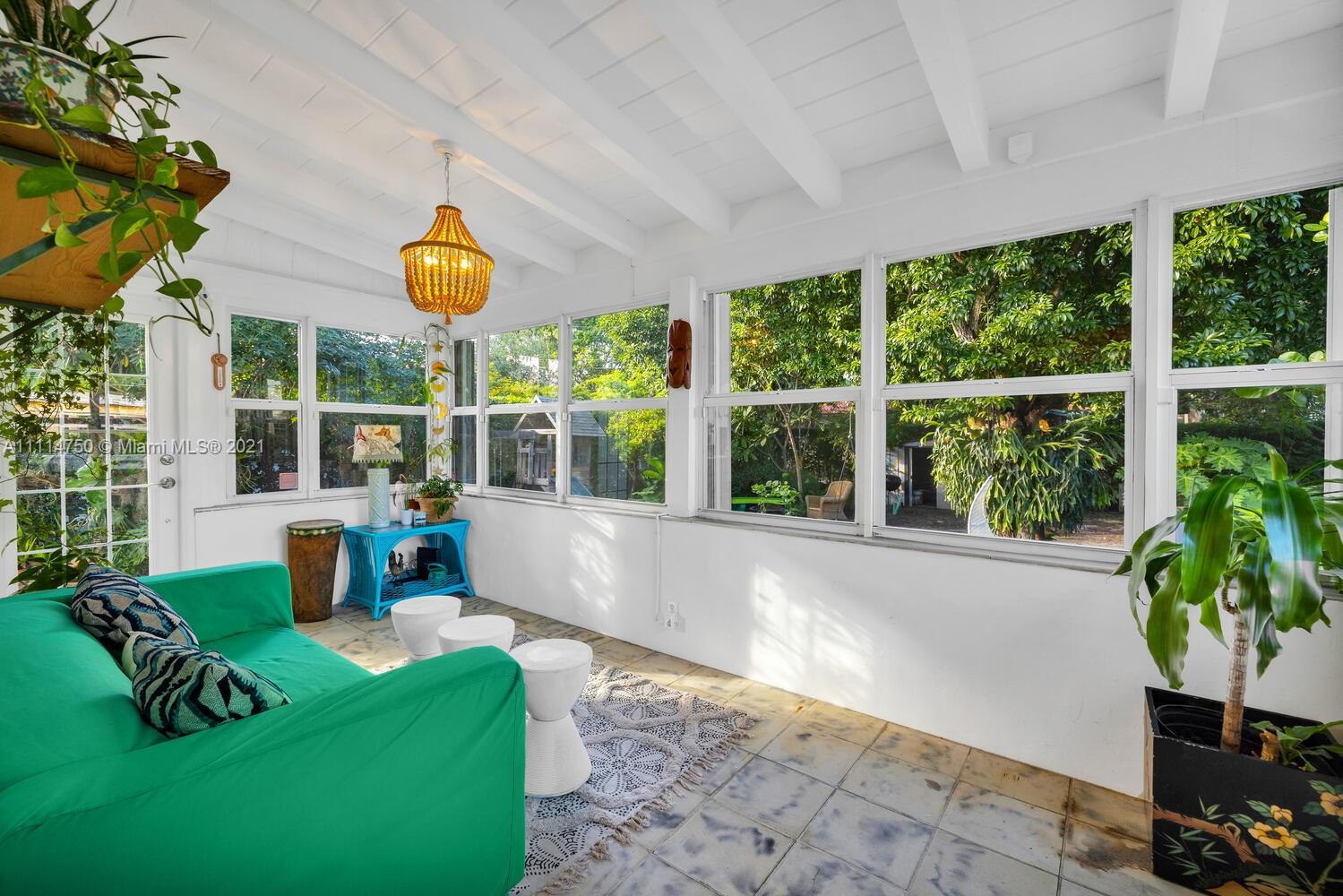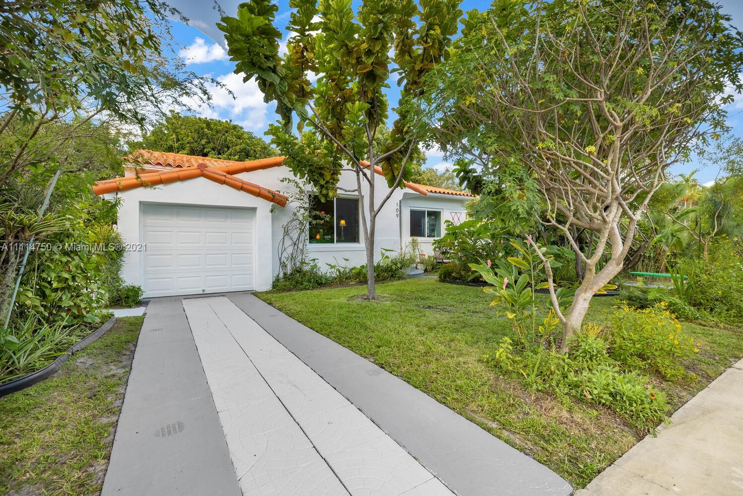 What an opportunity to call this CLASSIC 1940’s CHARMER…”HOME”!Tucked away on a quiet Miami Shores cul-de-sac!Gleaming vaulted beamed ceilings in a ‘sunny sun room’ filled --bathed in natural light,spacious backyard w/plenty of room to roam & play!Current Owner has loved living here,appreciating the certified butterfly habitat w/an abundance fruit trees &edible plants which are native Florida plants...mangos,avocados,papaya,mulberries,cashew & some medicinal.Children in the neighborhood appreciate the quiet cul-de-sac & minutes from Miami Shores recreational center & community pool at the Country Club.Vws of the garden from all rooms,light,bright & happy! NOTE-Garage under central A/C adding approx 200 sq.ft of additional space. Showings postponed until 11/29/2021