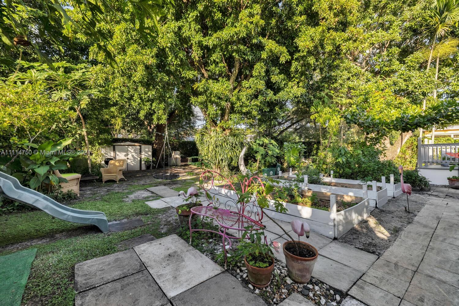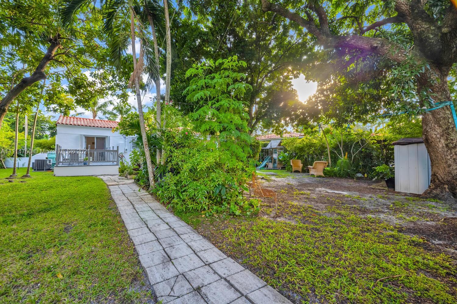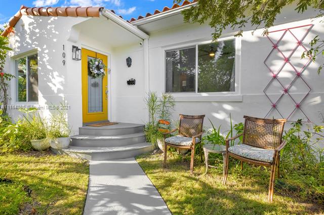 What an opportunity to call this CLASSIC 1940’s CHARMER…”HOME”!Tucked away on a quiet Miami Shores cul-de-sac!Gleaming vaulted beamed ceilings in a ‘sunny sun room’ filled --bathed in natural light,spacious backyard w/plenty of room to roam & play!Current Owner has loved living here,appreciating the certified butterfly habitat w/an abundance fruit trees &edible plants which are native Florida plants...mangos,avocados,papaya,mulberries,cashew & some medicinal.Children in the neighborhood appreciate the quiet cul-de-sac & minutes from Miami Shores recreational center & community pool at the Country Club.Vws of the garden from all rooms,light,bright & happy! NOTE-Garage under central A/C adding approx 200 sq.ft of additional space. Showings postponed until 11/29/2021