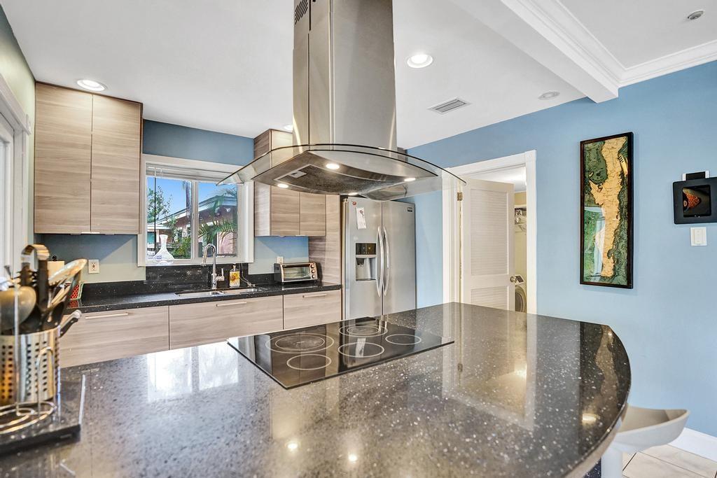 Absolutely stunning waterfront pool home in Flamingo Park! This property offers 70' of waterfront ocean access with no fixed bridges. The seawall and dock were redone in 2016. Enjoy tropical living at its finest with incredible indoor/outdoor living. The very private and fully fenced back yard boasts a large travertine deck, heated pool, covered sitting & dining area with incredible canal views. The interior features an updated open kitchen with s.s. appliances, contemporary laminate lacquer cabinetry & waterfall island top, neutral tile flooring throughout, high-end full home Marantz Sound System, smart home LED lighting, updated bathrooms, 2016 A/C and much more! Lots of large windows throughout flood the interior with natural light. This is the ideal home for the boating enthusiast!