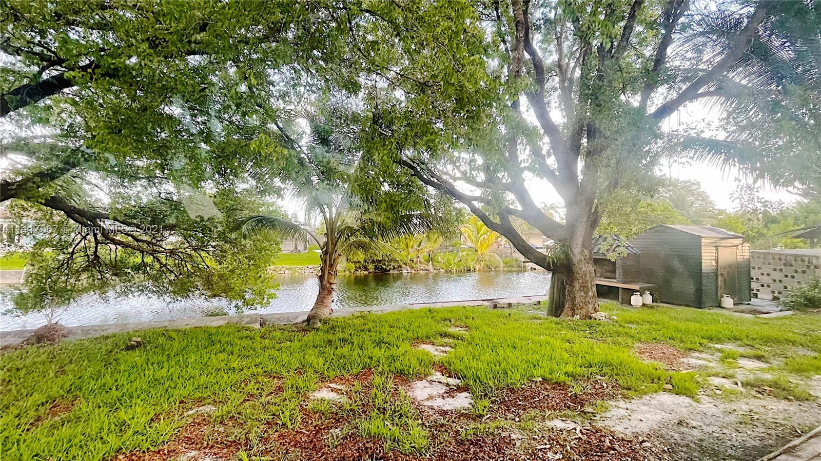 Waterfront home on a lot and half quiet Cul-de-sac in Sterling Lake.This home features an open layout, Updated modern bathroom, freshly painted walls and has tile throughout. Oversized covered patio with view of canal and beautiful mature trees. Lot is over 10,000 SqFt with room for expansion or plenty of space for boat & RV Parking. Rear room was converted to covered porch. All Permits have been closed. Property features a built-in brick oven, a storage shed and a paved circular driveway. Convenient location just west of Hard Rock Hotel. Easy Access to Turnpike and 595.