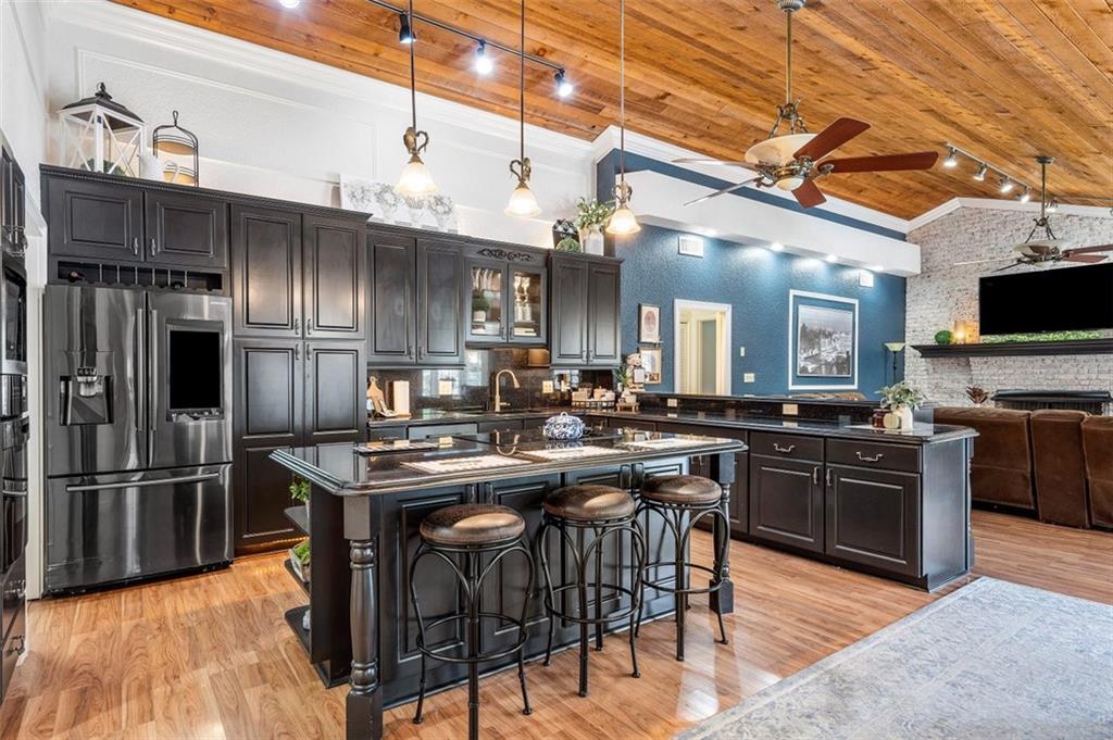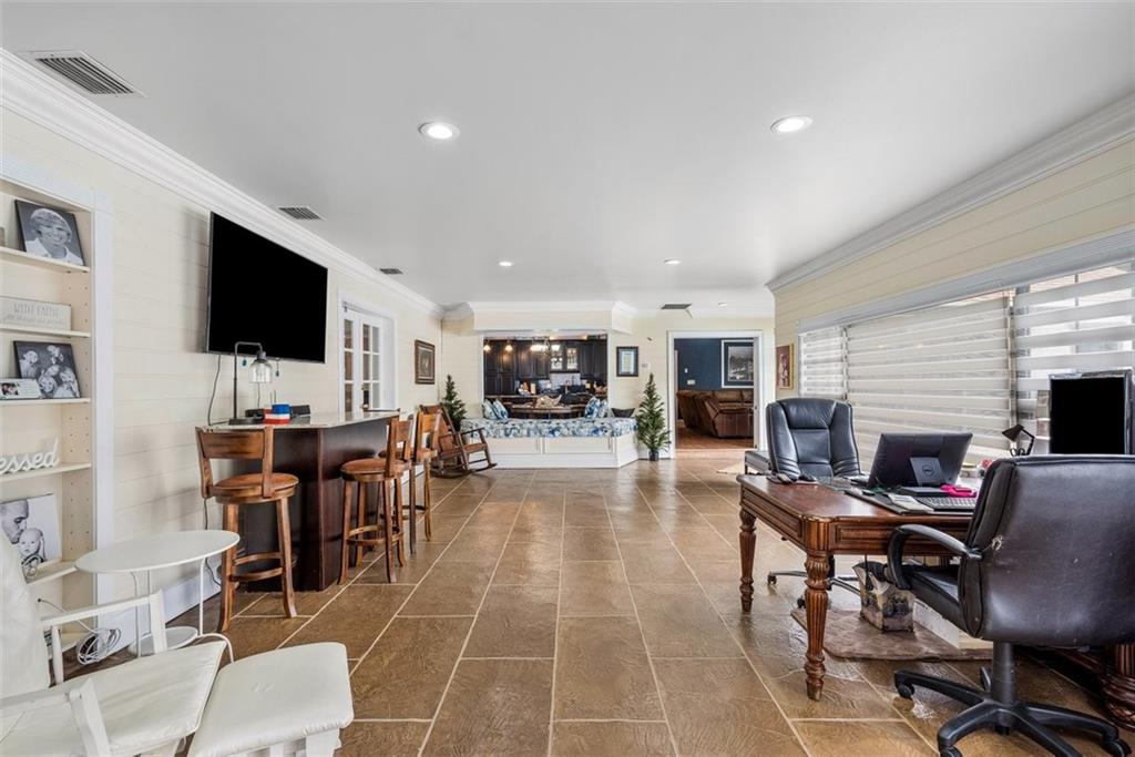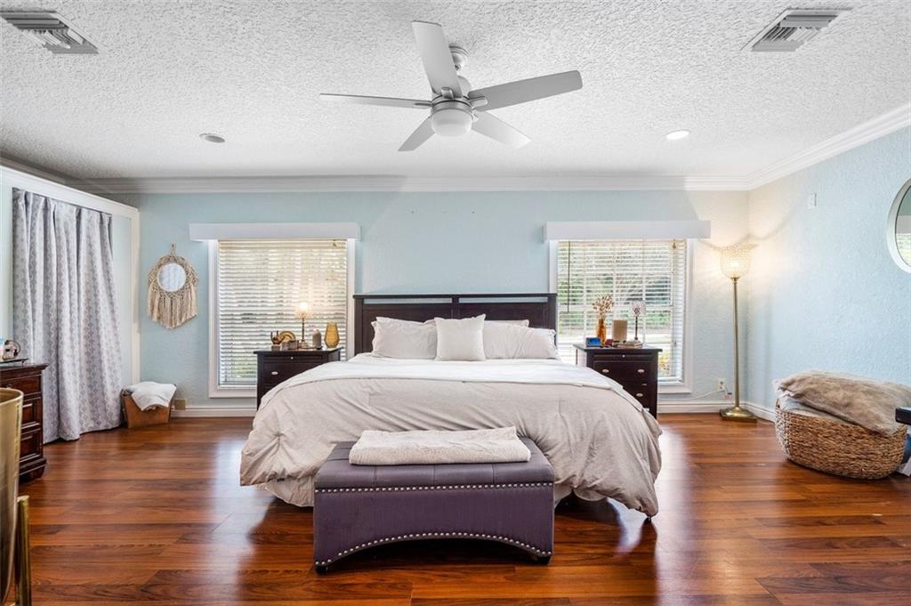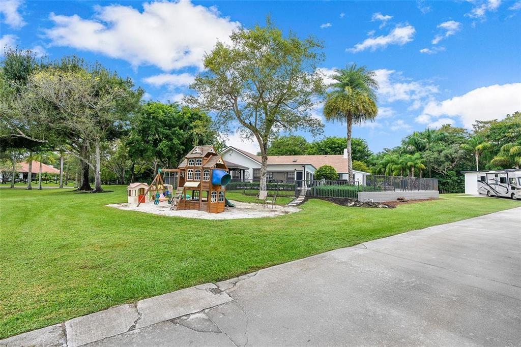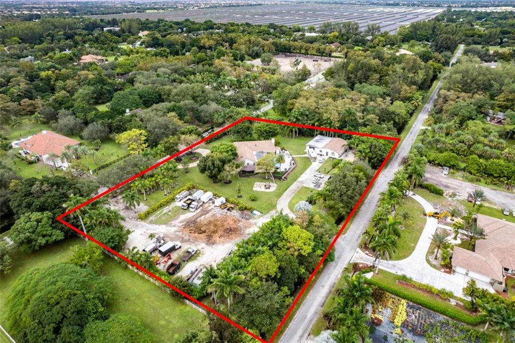 Live/work opportunity. Perfect for horse lovers, some businesses &/or those who want tranquility & privacy. Beautiful main house with farmhouse influences offers 4 bedrooms/4 full bathrooms/an oversize pool. A whitewashed brick wall with a fireplace/soaring wood ceilings/a stunning island kitchen take center stage in the large family room/kitchen area. Guesthouse can be used as offices & has 3 bedrooms, 1 bathroom, full kitchen, living room, & 2 additional rooms. Frontage & access with driveways from 2 separate streets. Back entry is great for trailers, trucks & equipment without altering the curb appeal of the home. Other offerings: large bonus room with a full-service bar, 50 x 20 garage with 12 ft entry, full house generator, gazebo, sauna & palm tree farm. Has agriculture exemption.