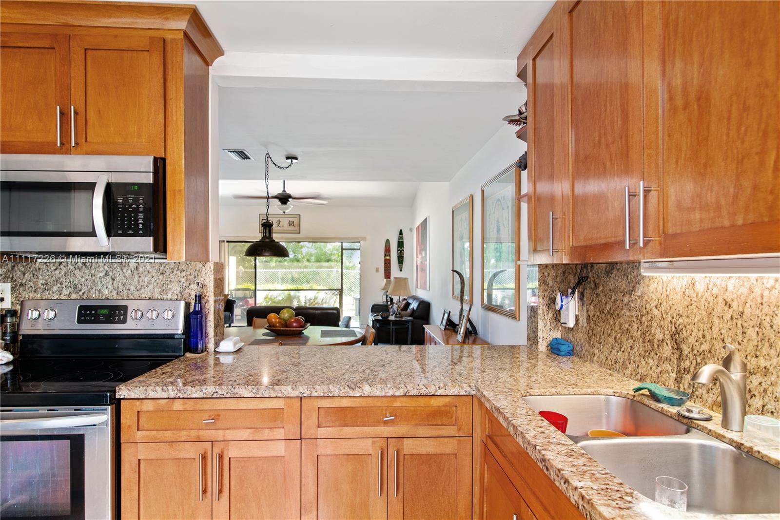 This beautiful waterfront 3/2 Corner Villa can be yours! It is updated including new kitchen appliances, laundry, bathroom facilities, a/c and roof. New 24 inch tile and hardwood laminate floors. Bright and open floor plan with vaulted ceilings. Large eat in kitchen with personal garden courtyard view. Large bedrooms with plenty of closet space. The home has hurricane shutters and ample parking for 2 vehicles outside.
