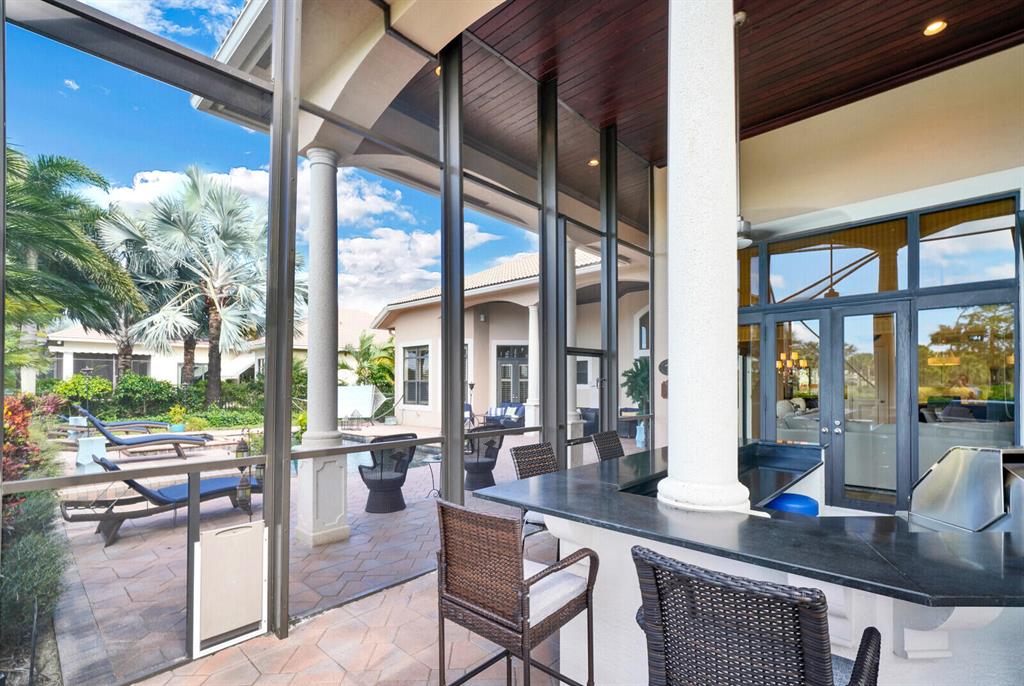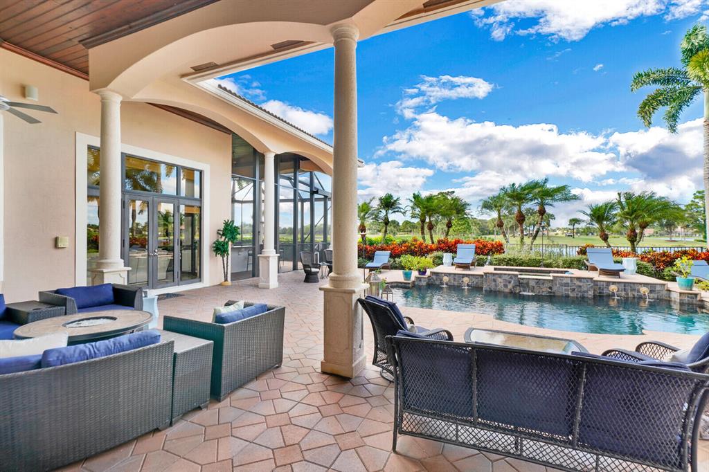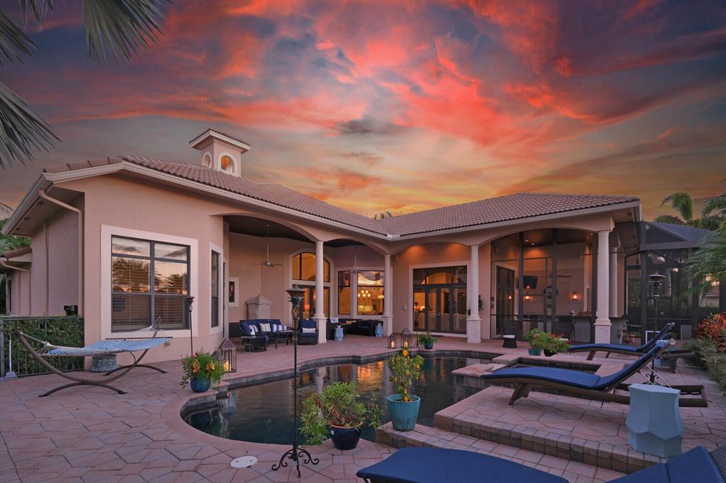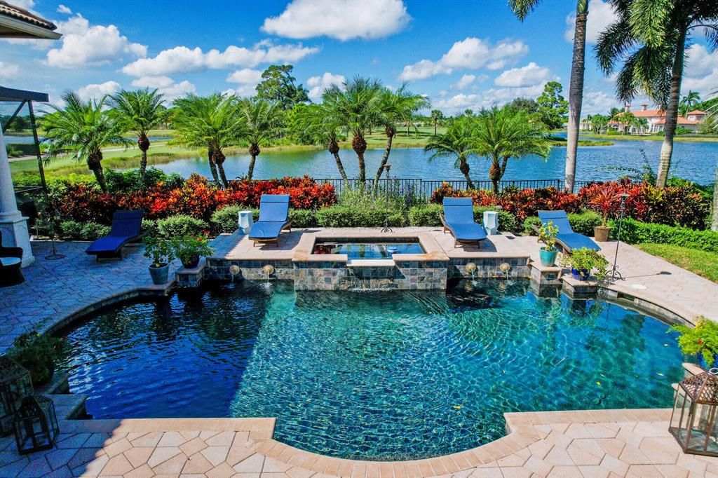 Premium WATERFRONT lot and top-tier upgrades in this ONE-OF-A-KIND, DESIGNER-DONE, CUSTOM estate in highly desirable Bay Pointe. This 4BR + Office + Bonus Room / 5.1 BA / 3-Car Garage Dreamstar custom home overlooks wide water views with four holes of Nicklaus golf in the distance. Enjoy magnificent sunsets from the resort-like backyard. The over-sized, screened-in outdoor dining space features a large outdoor kitchen and cedar ceilings. With a Western exposure and 100 feet of premium water frontage, the dramatic pool and spa area boasts one of the most dramatic views in Ibis.
