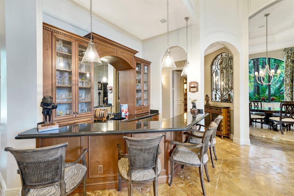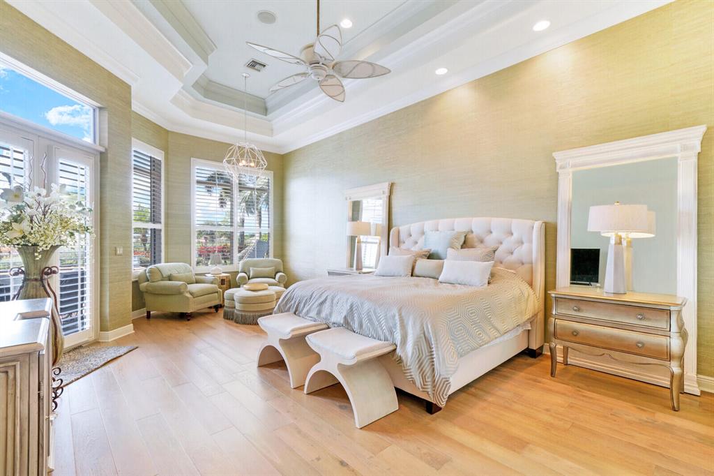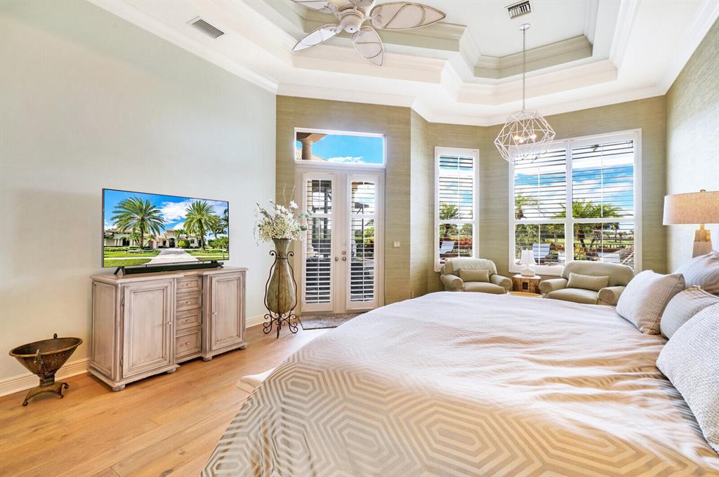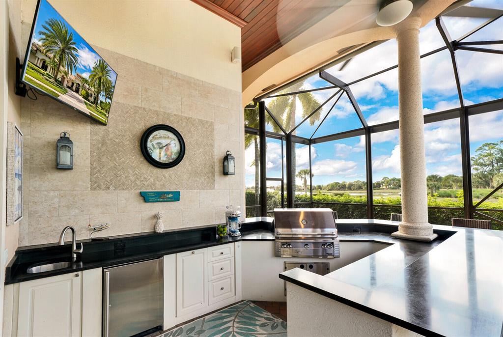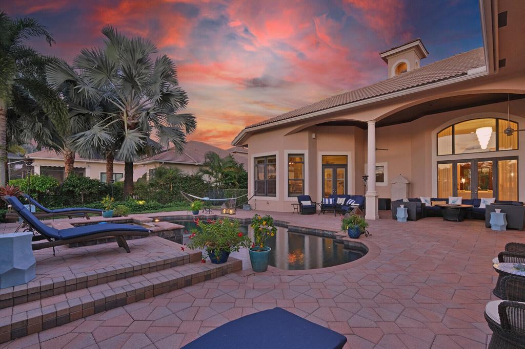 Premium WATERFRONT lot and top-tier upgrades in this ONE-OF-A-KIND, DESIGNER-DONE, CUSTOM estate in highly desirable Bay Pointe. This 4BR + Office + Bonus Room / 5.1 BA / 3-Car Garage Dreamstar custom home overlooks wide water views with four holes of Nicklaus golf in the distance. Enjoy magnificent sunsets from the resort-like backyard. The over-sized, screened-in outdoor dining space features a large outdoor kitchen and cedar ceilings. With a Western exposure and 100 feet of premium water frontage, the dramatic pool and spa area boasts one of the most dramatic views in Ibis.
