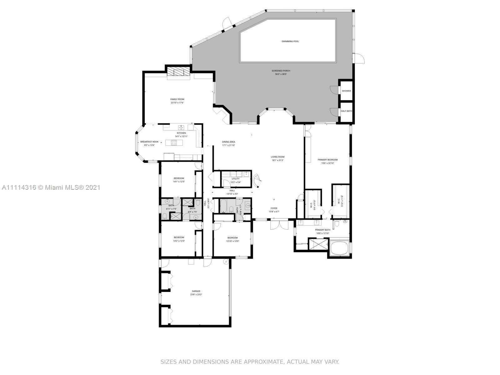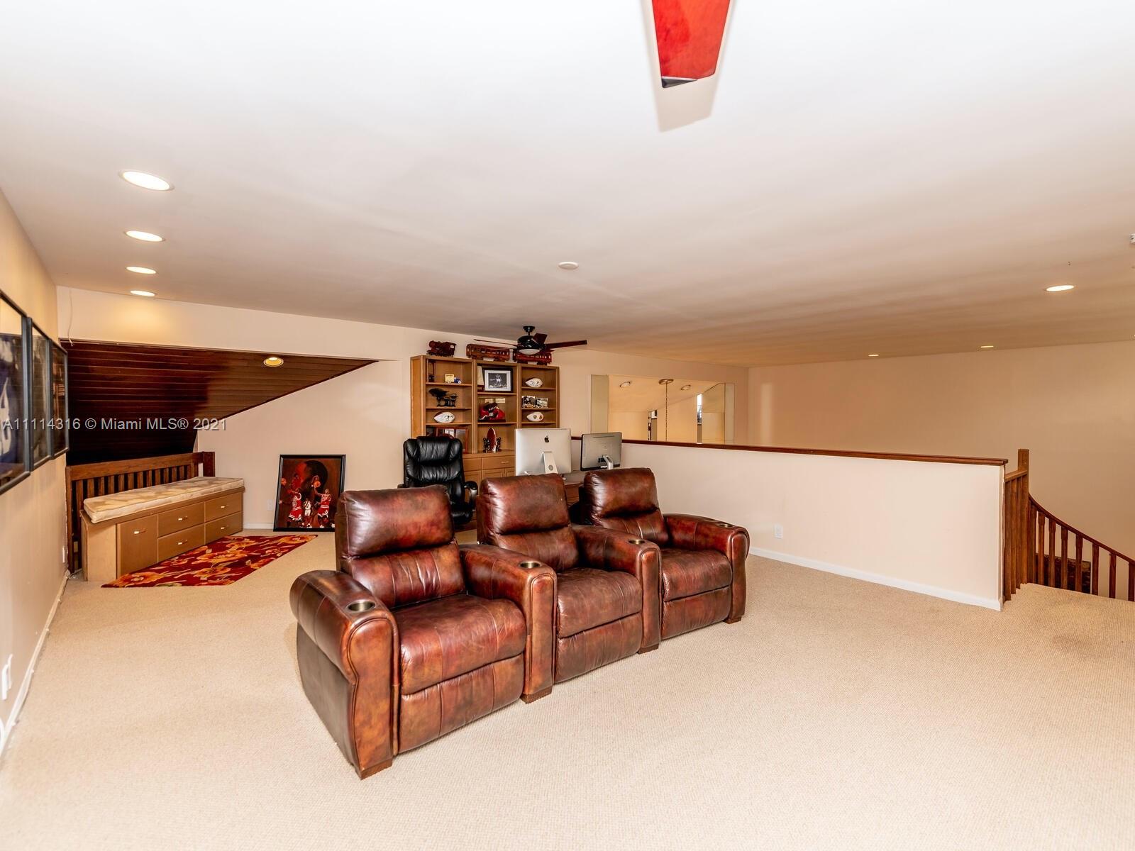 Unique & Spacious split-floor plan home nestled among the tree-lined streets of beautiful Maplewood Isle, a quite & private community of only 104 custom-built homes with 24/7 guard present at the gate. All 4 BD are downstairs, & each with en-suite BA. 2nd Floor is a loft with a walk-in closet. Primary BD has walk-in closets & a BA with dual sinks & separate shower/jetted tub. Remodeled kitchen with breakfast nook, SS appliances & wine cooler. Freezer & additional refrigerator are included. Family room features a real wood-burning fireplace. Front entrance leads to an open area with volume ceilings. This area includes a modern wet bar, living room and formal dining with a view of the patio/pool area that has a cabana BA & separate shower/dressing room. Washer & Dryer do not convey.