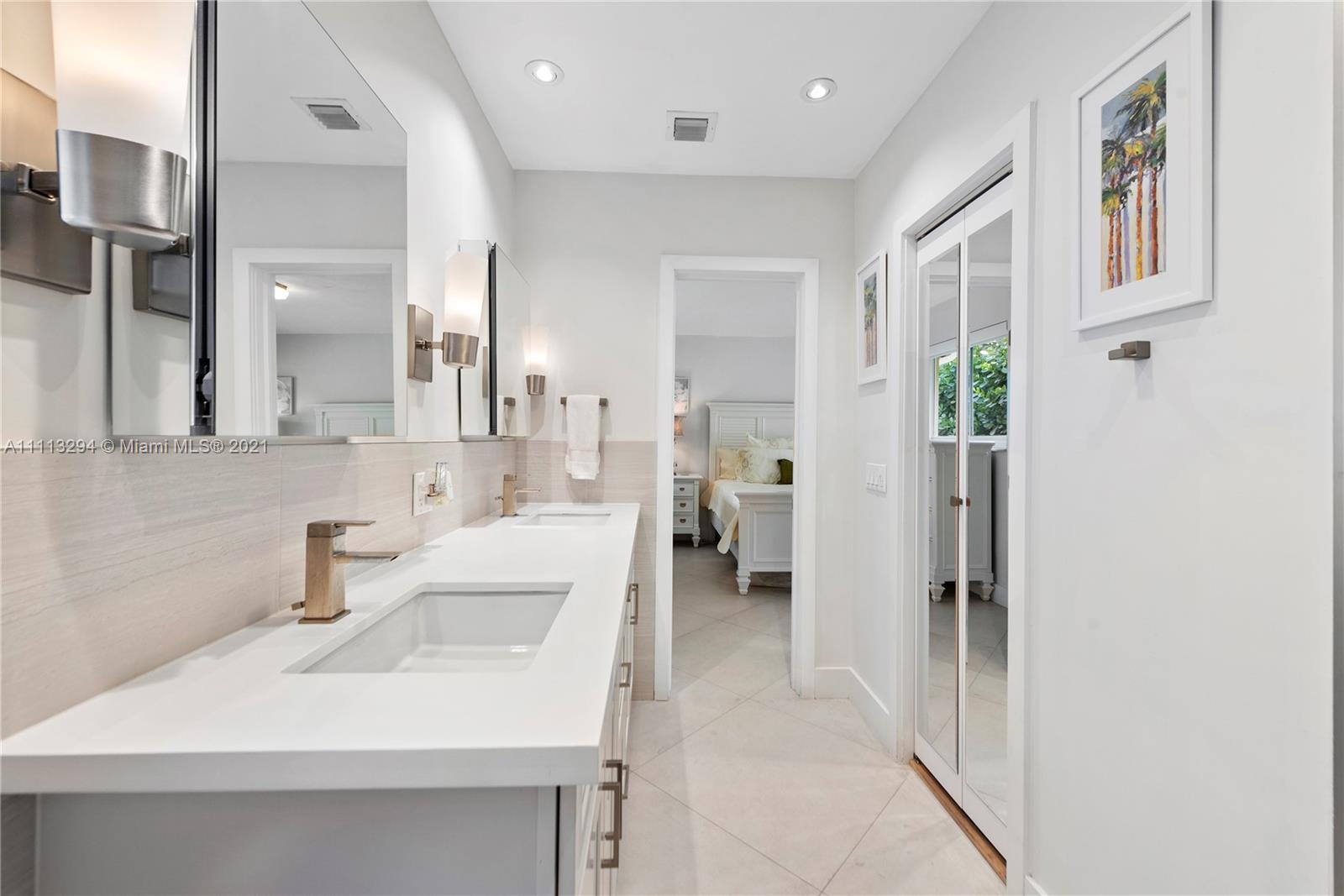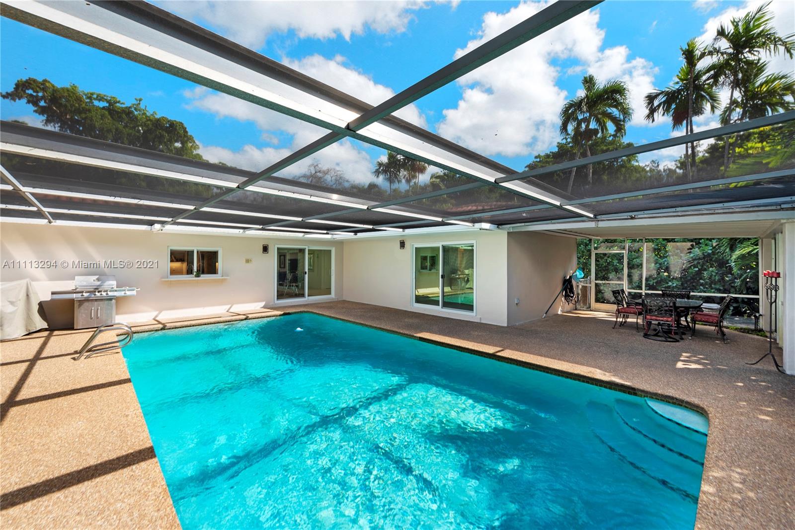 Located on picturesque tree-lined Coral Gables street, this 3 bedroom, 2 bathroom pool home sits on a 9,000 sqft lot. As you enter, you will encounter an open floor plan lit with all new modern high hat LED lighting. The split floor plan offers the Master bedroom with sliding doors overlooking the pool, double vanity bathroom with shower and walk-in closet. The 2 other bedrooms share an updated crisp white bathroom with jacuzzi tub. The recently updated modern kitchen offers quartz countertops, solid wood cabinets and stainless steel appliances. Other features include: Impact windows/doors, 30x30 contemporary tile floors, indoor laundry room, covered patio great for entertaining, new paved driveway leading to a 2 car garage, newer AC system with all new air ducts and much more.