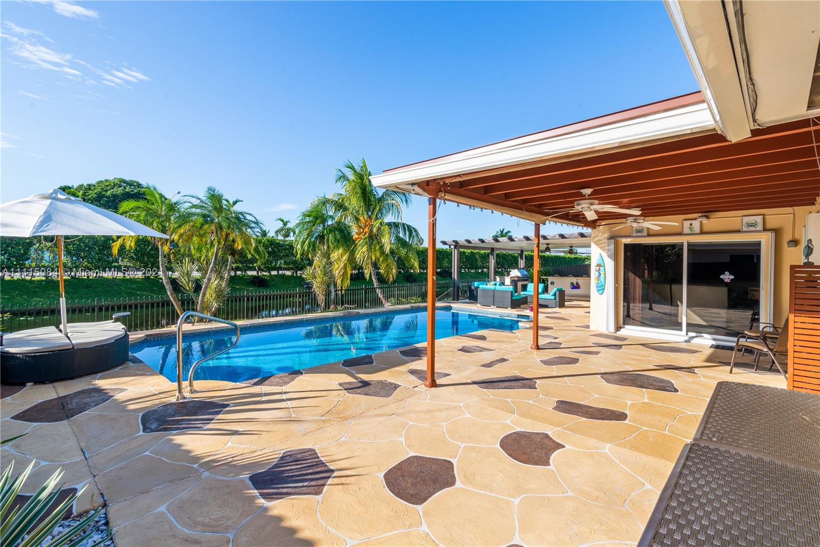 Back to the market!! The buyer had issues with his financing....Pembroke Pines Amazing and Immaculate 3 bedrooms & 2 bath home with pool on the water. Gourmet kitchen, upgraded stainless appliances, farmhouse sink, quartz counters, recessed lighting. Upgraded bathrooms with designer tile & vanities. Sliding Barn door, new hardwood door throughout the house. New wood window blinds. Custom built-in closets. Beautiful wood grain tile flooring. You'll enjoy the outdoor space with sparkling pool, New pool salt system. Hurricane impact front door and cabana bathroom door. Accordion shutters. New electrical panel. New outdoor patio Pergola with insulation system. New Aluminum Fence. New patio stamped concrete floor. No neighbors in the back. Large backyard with relaxing water and pool view.